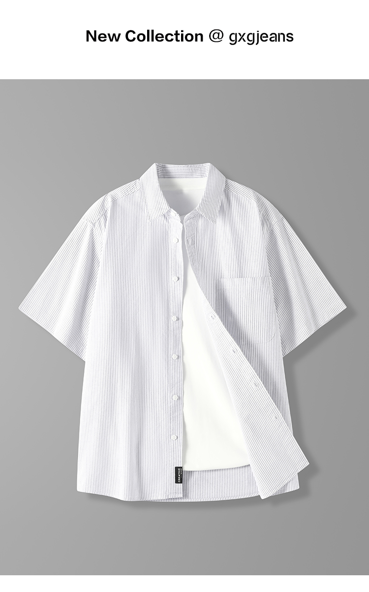 gxgjeans男装【棉100%】26夏款男士短袖条纹衬衫舒适柔然时尚百搭男上衣K&C