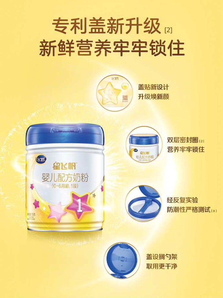 飞鹤星飞帆婴儿配方奶粉1段700g一箱6桶