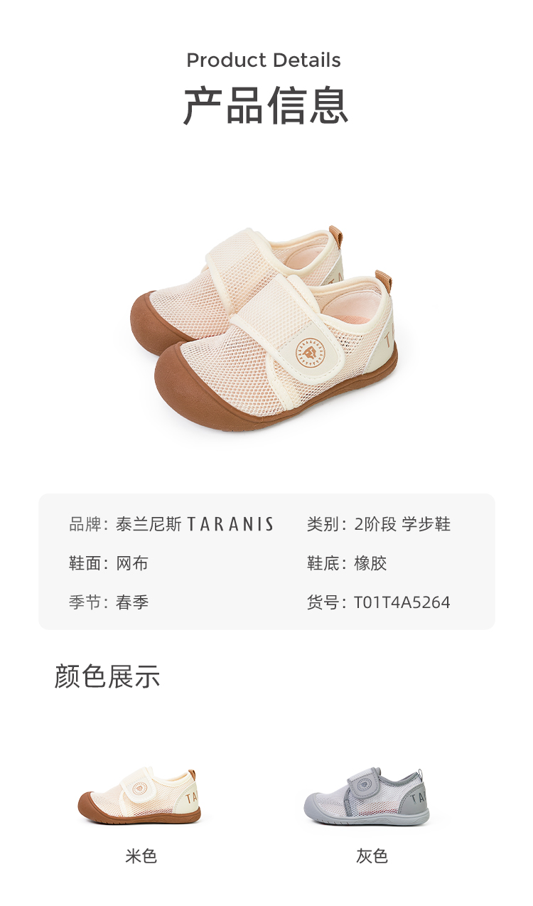 泰兰尼斯夏季婴童段简约舒适网布学步鞋T01T4A5264