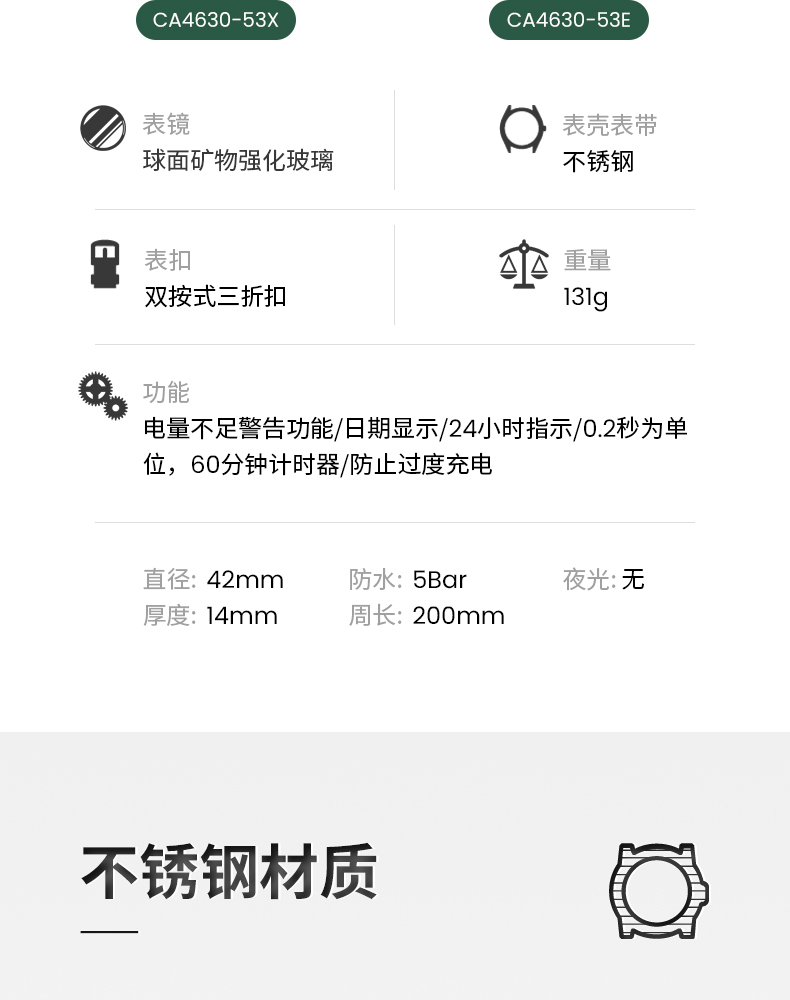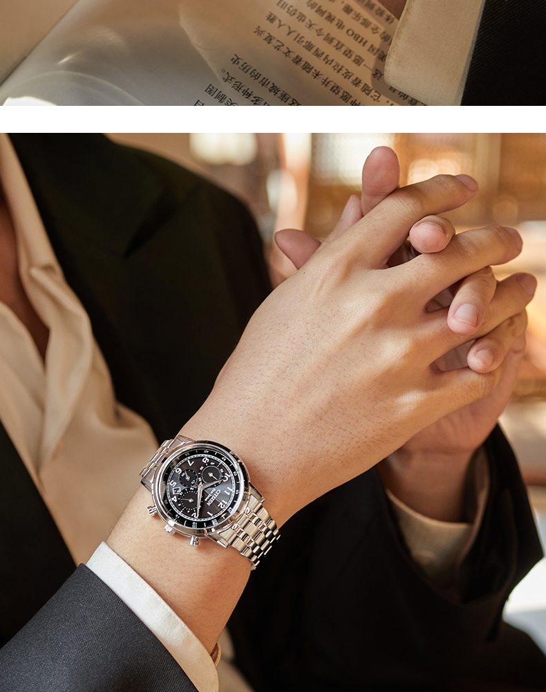 西铁城/CITIZEN光动能系列多功能不锈钢商务男表CA4630-53X