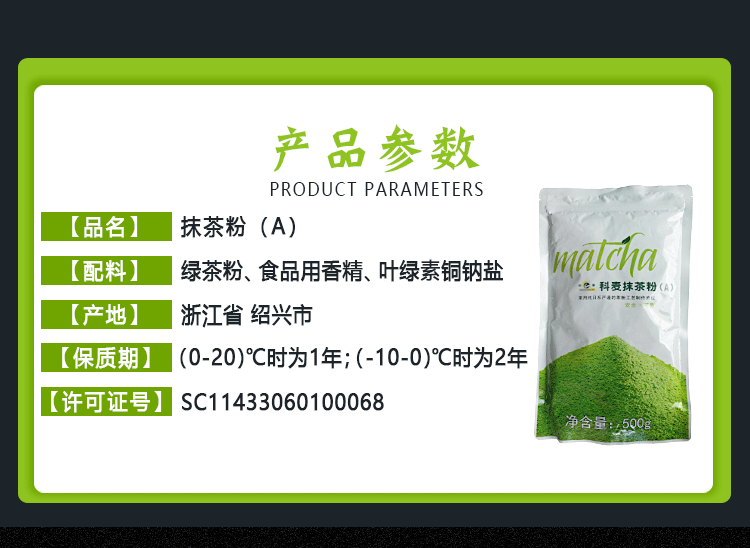 科麦抹茶粉A级500g原装正品 面包蛋糕烘焙绿茶粉 包装随机发