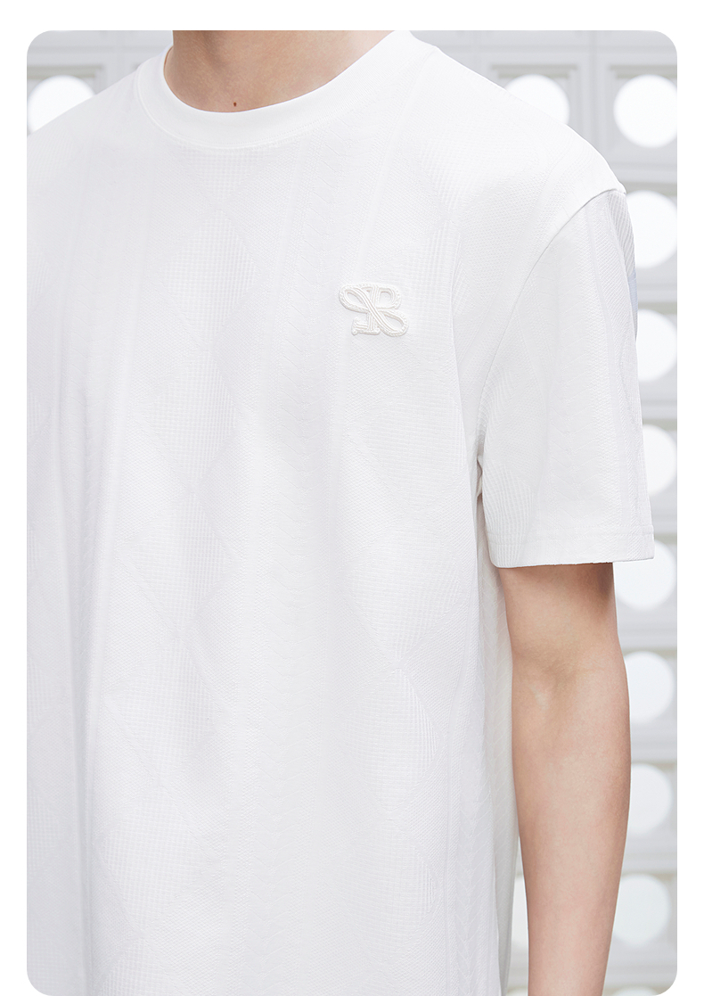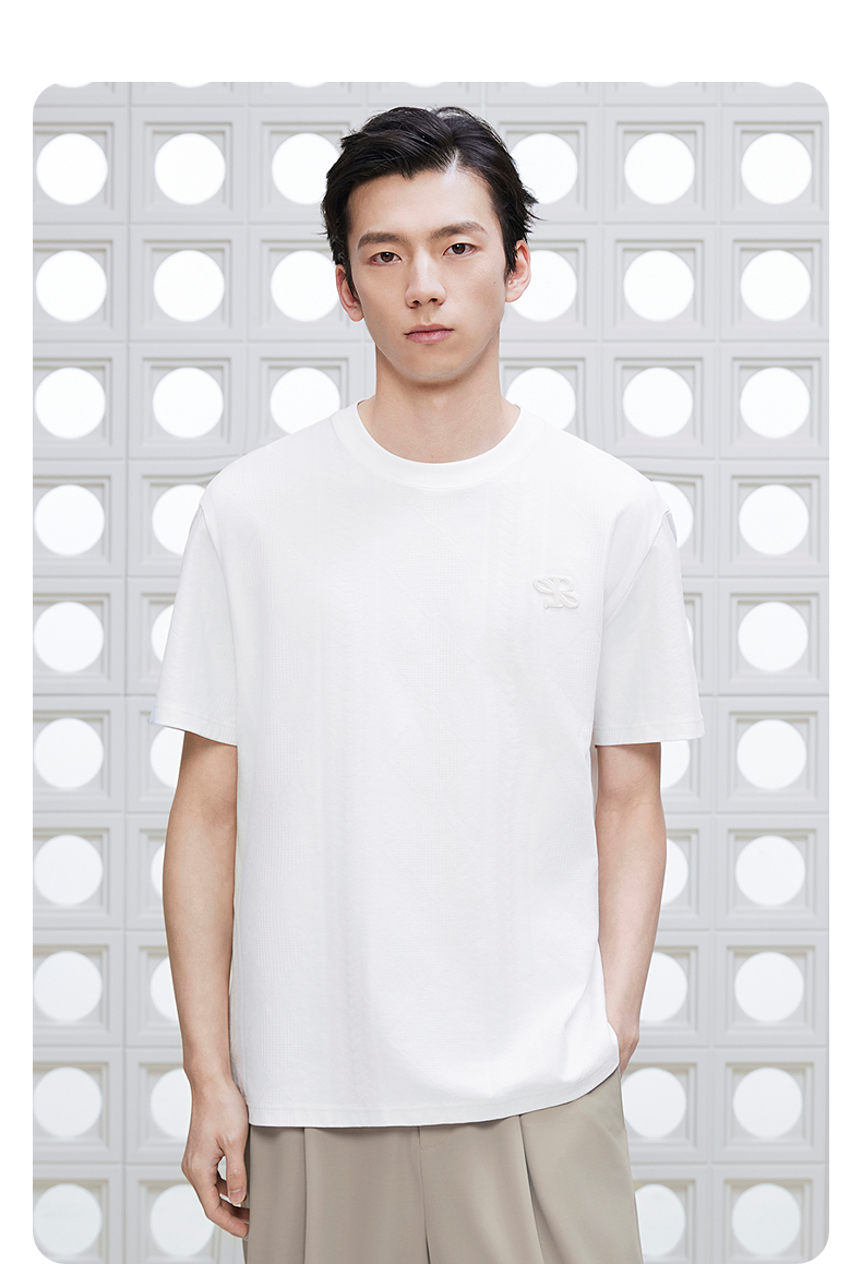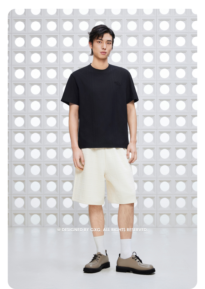 GXG男装 圆领T恤双色绞花肌理上衣短袖针织 2025夏季新品