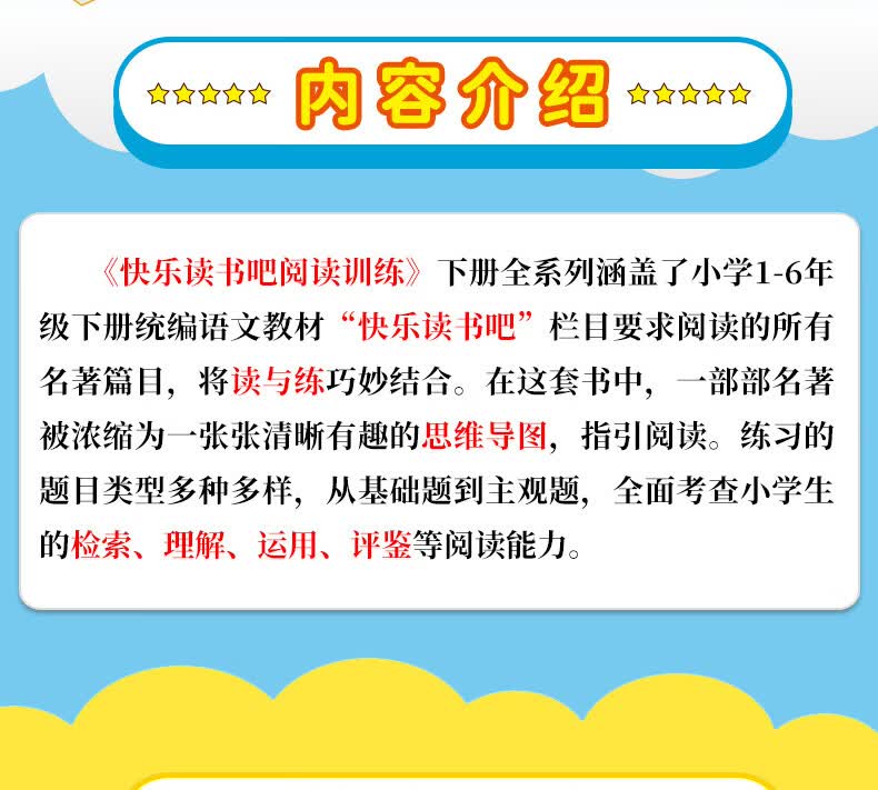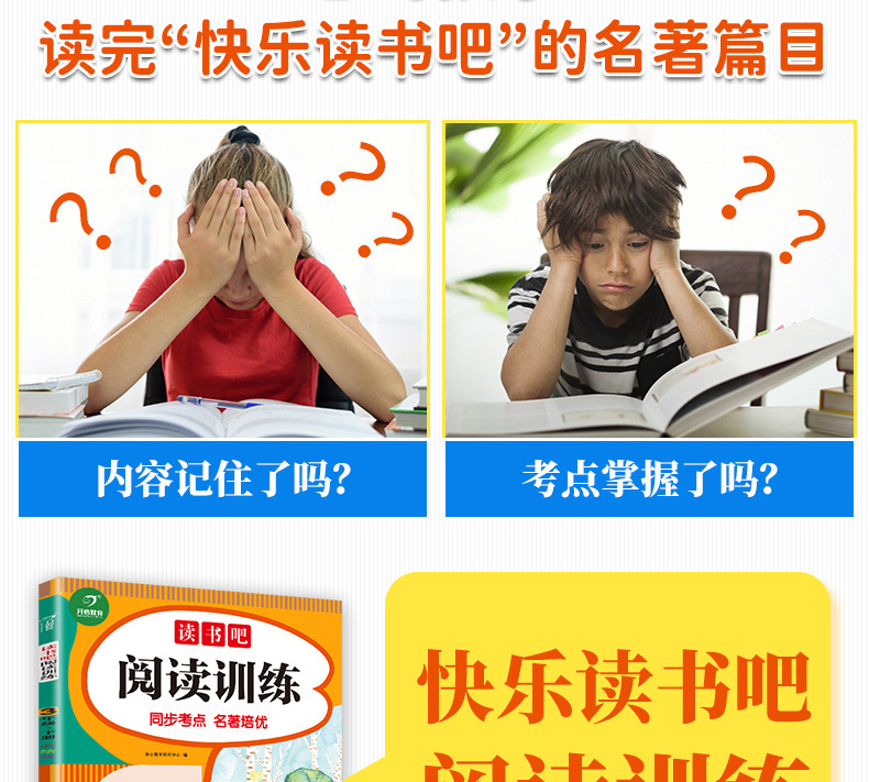 为了解决这个问题,“读 书吧阅读训练”系列应运而生。该系列囊括“快乐读书吧”所有阅读书目,用四大法宝帮助孩子打开阅读的大门,从泛读入手,融合精读的方式,引导孩子一手把