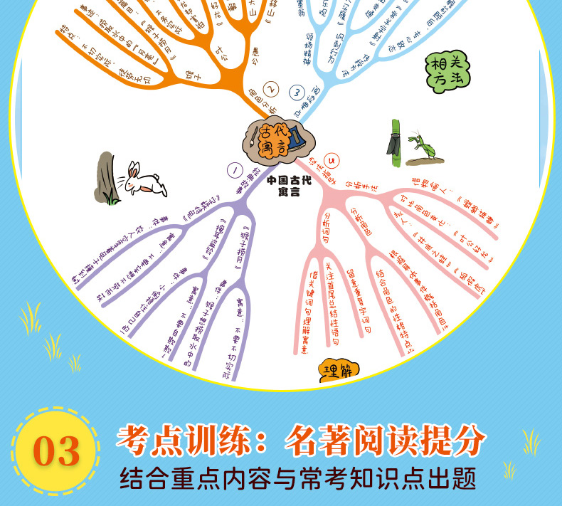 思维导图抓住整本书的主要内容名著整本阅读,首先要求以泛读、速读为主。本套书将一部部 名著浓缩为-张张有趣的思维导图,帮助孩子从整体上快速抓住名著中的主体内容。-图囊括关键信息,其中包括主要内容、经典情节、人物角...用有趣的图画形象排列,帮助孩子建立专属的阅读记忆宫殿,为整体阅读提供事半功倍的小妙招。