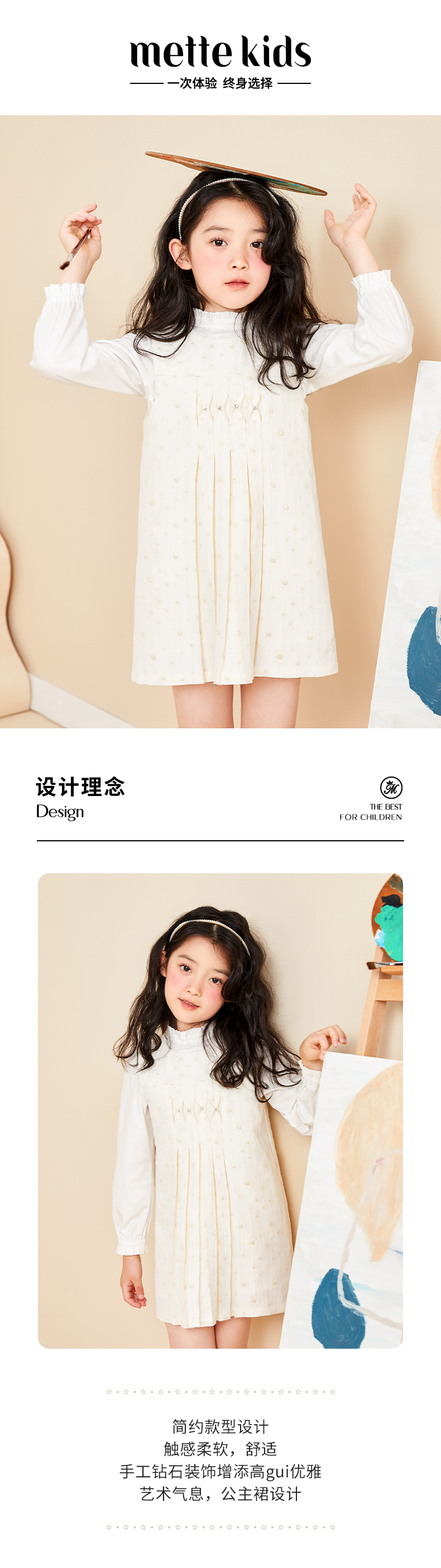 mettekids儿童连衣裙2022春秋新款女童裙子洋气时髦无袖公主裙