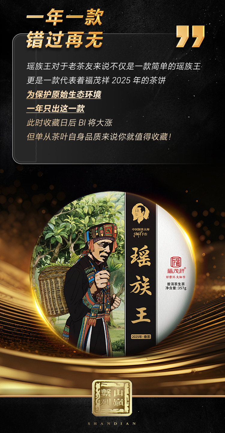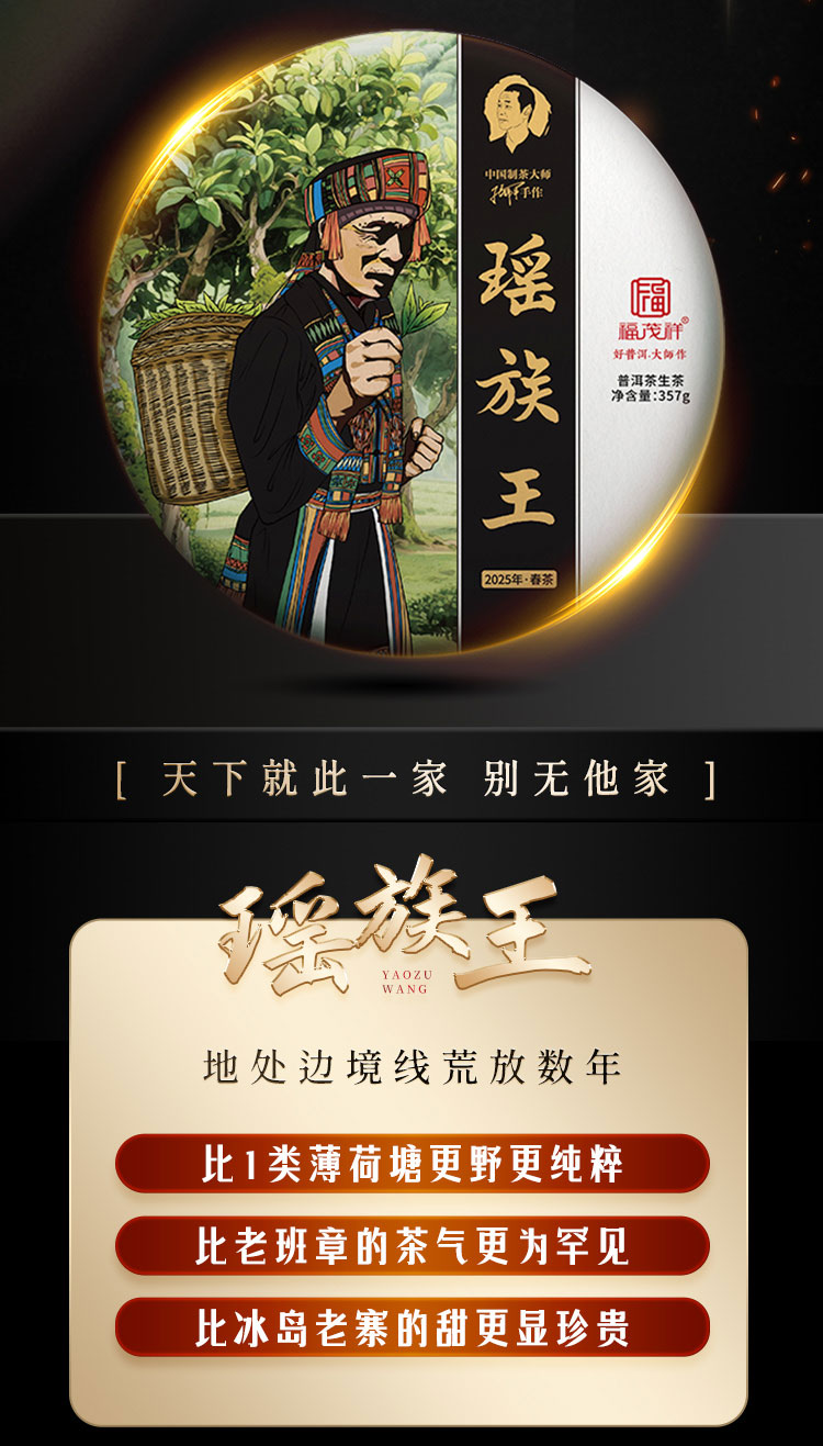 易武边境线荒放数十年【高杆古树茶】2025年头春瑶族王357克/饼