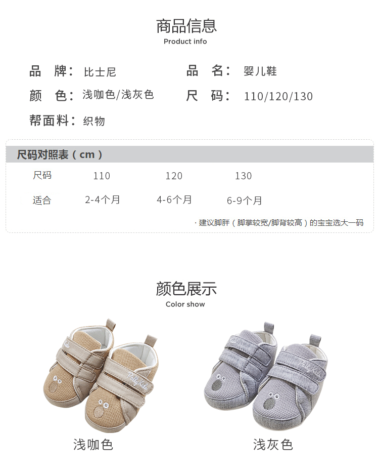 比士尼童鞋 婴幼儿宝宝婴儿鞋步前鞋男宝女宝软底鞋底 春秋款