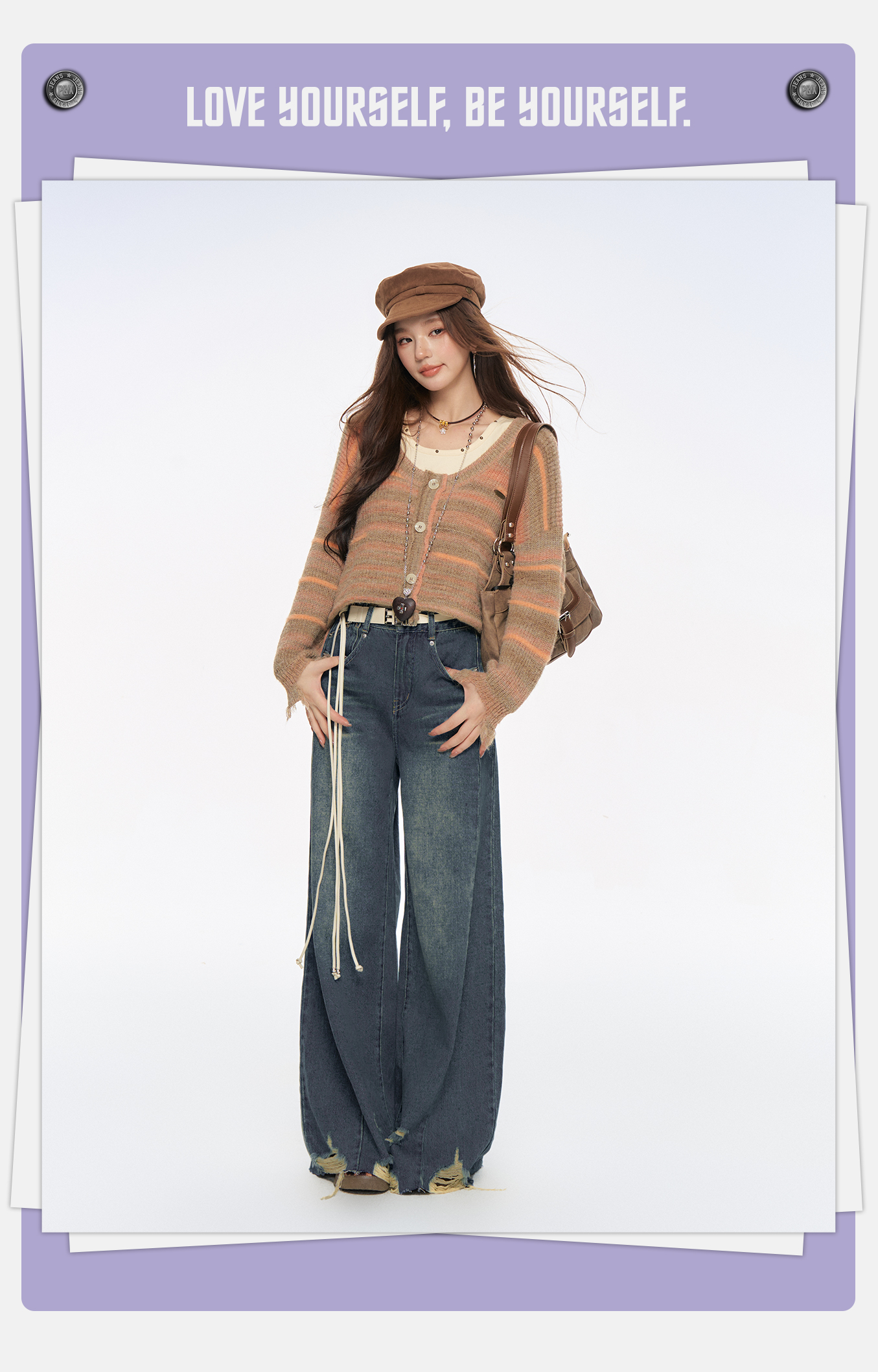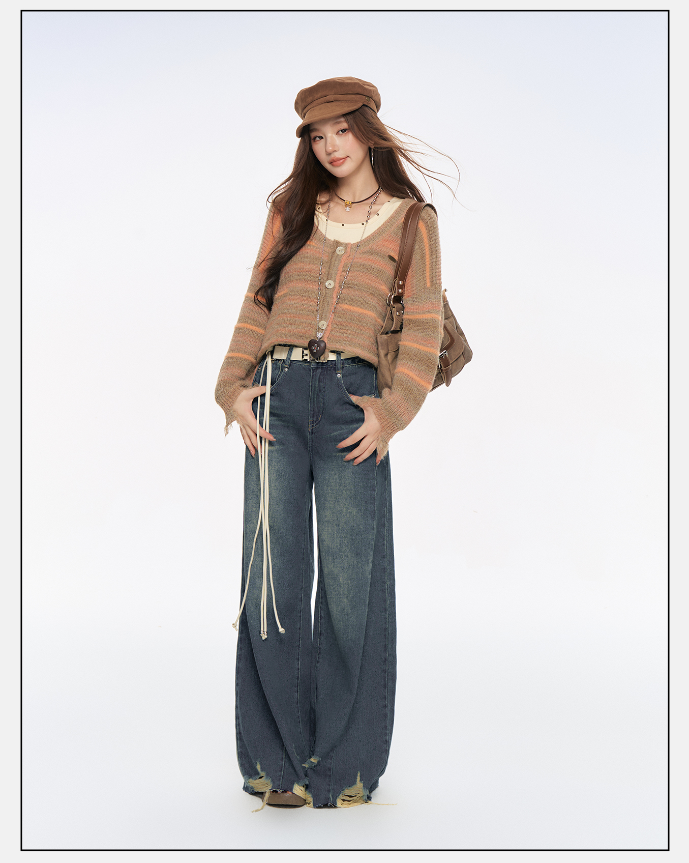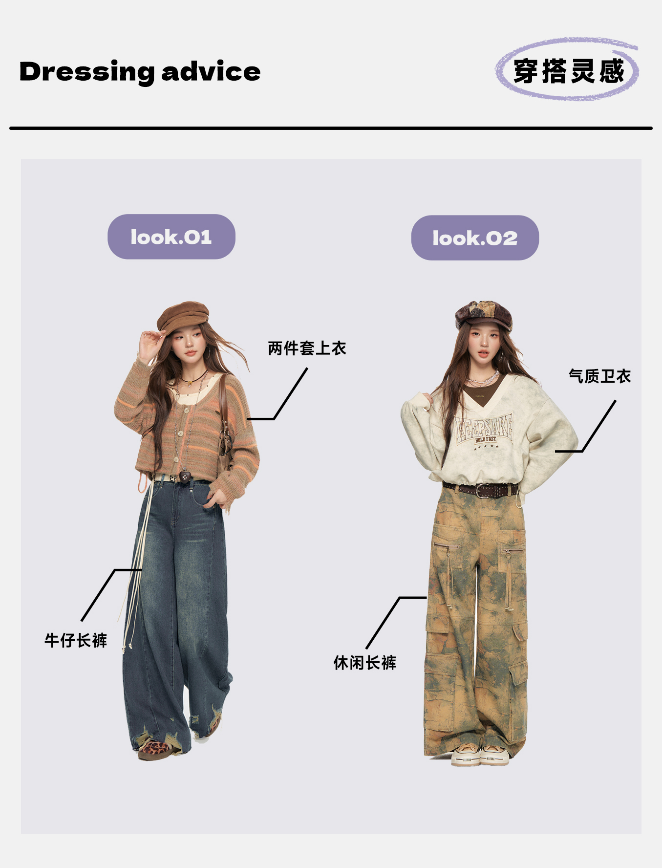 P&X设计师女装2025秋新款丹宁风街头阔腿牛仔长裤 825310244 蓝色