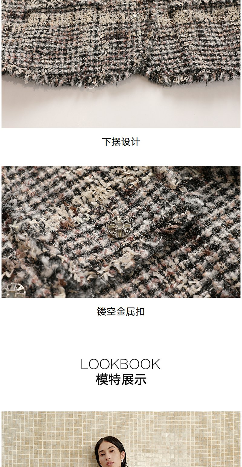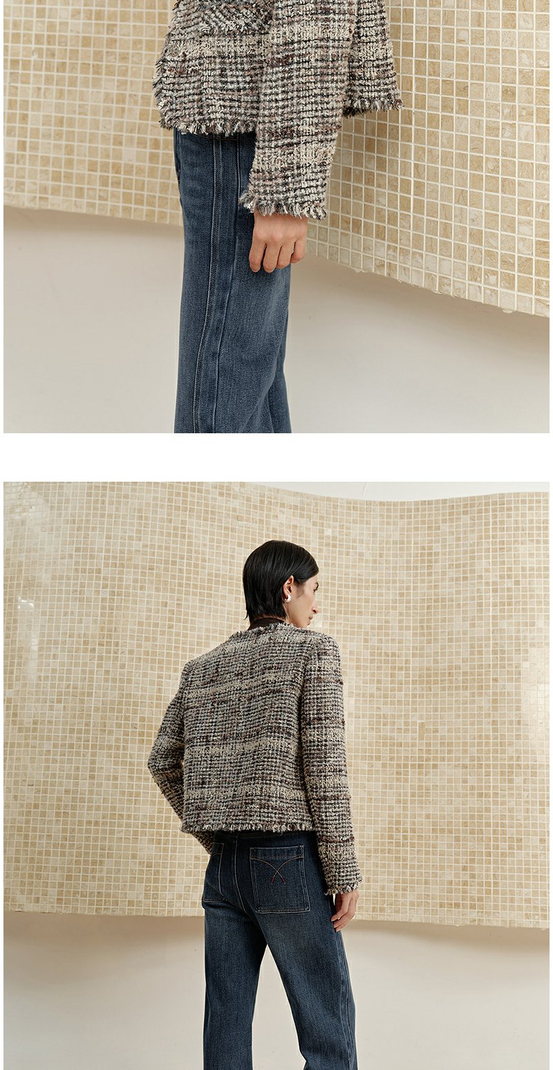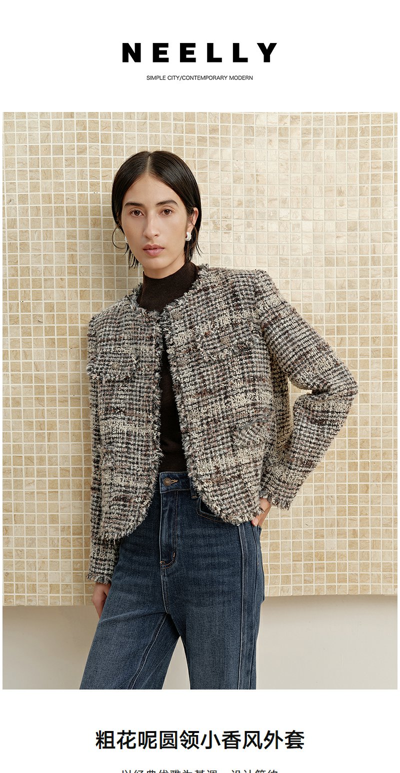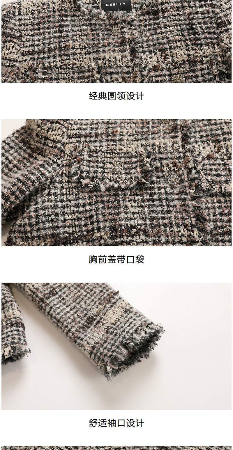 NEELLY纳俪商场同款冬季新款粗花呢圆领小香风外套女复古通勤上衣N25102C01038