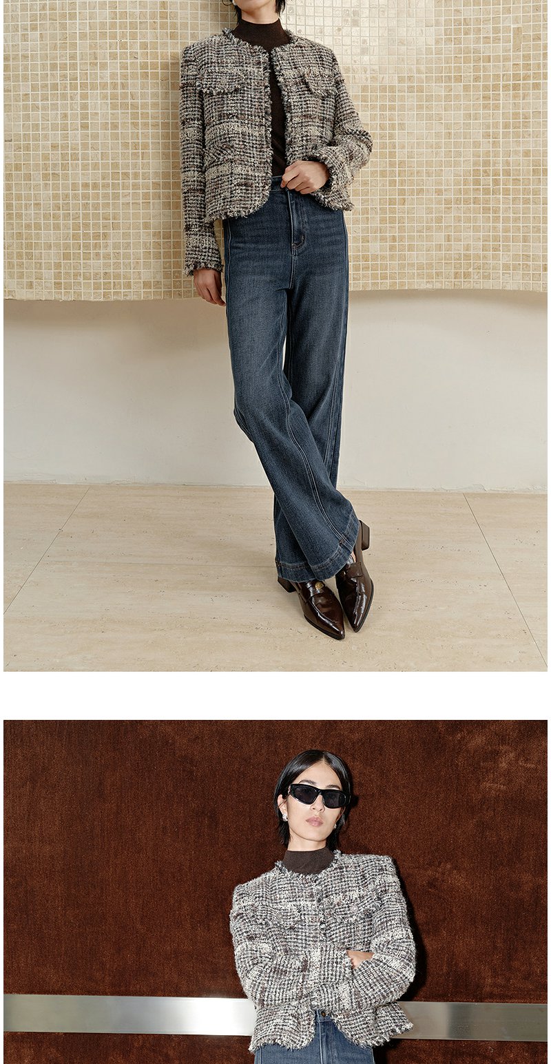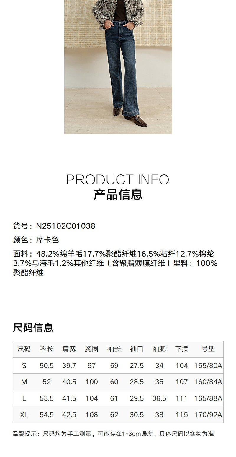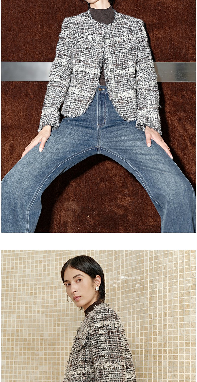 NEELLY纳俪商场同款冬季新款粗花呢圆领小香风外套女复古通勤上衣N25102C01038