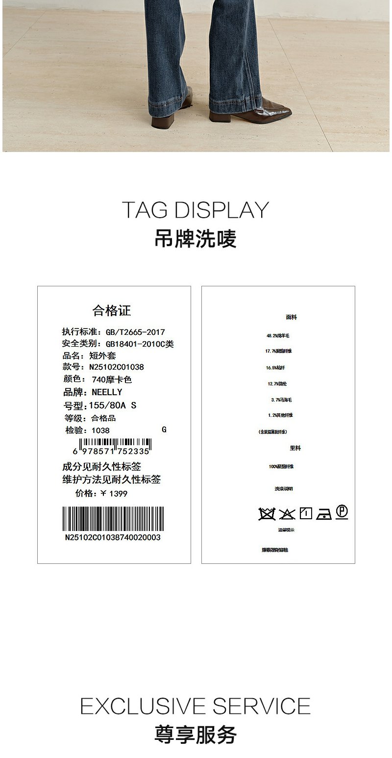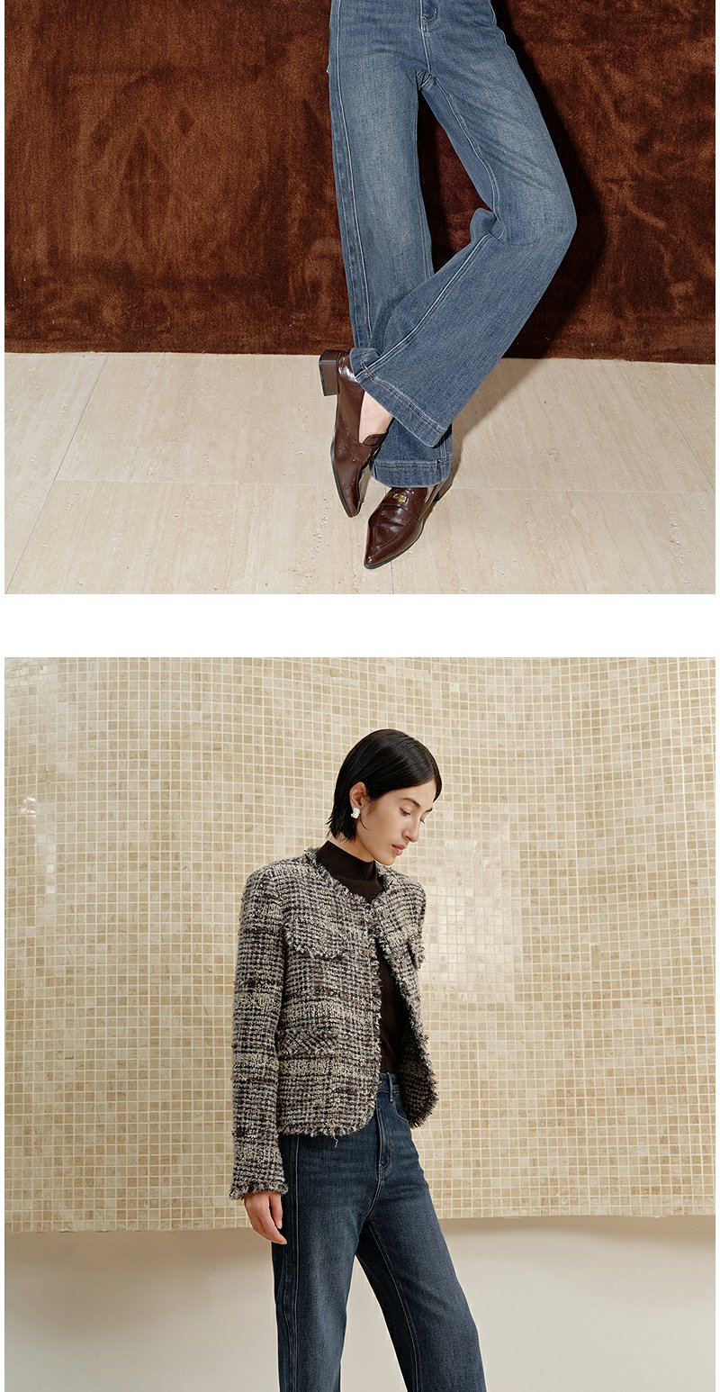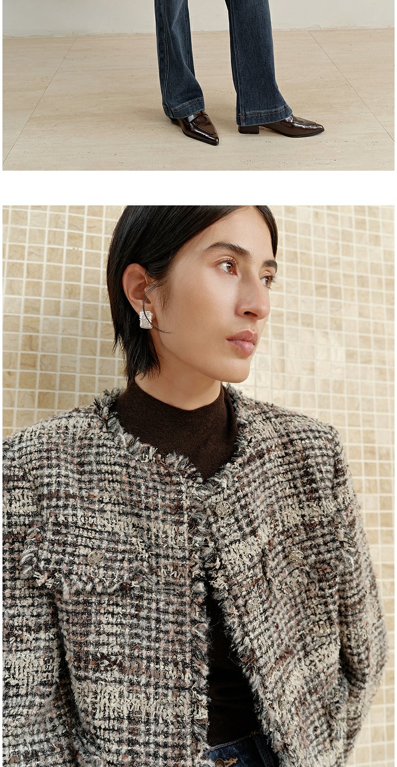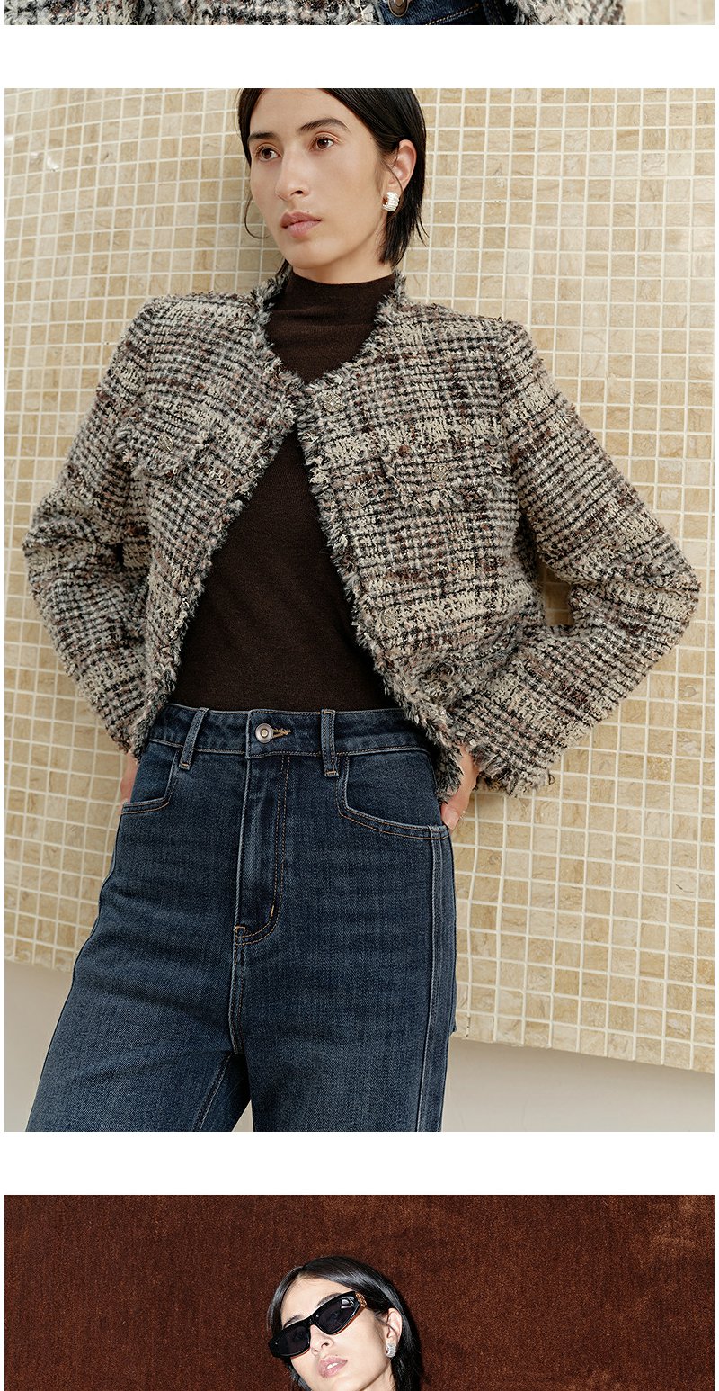 NEELLY纳俪商场同款冬季新款粗花呢圆领小香风外套女复古通勤上衣N25102C01038