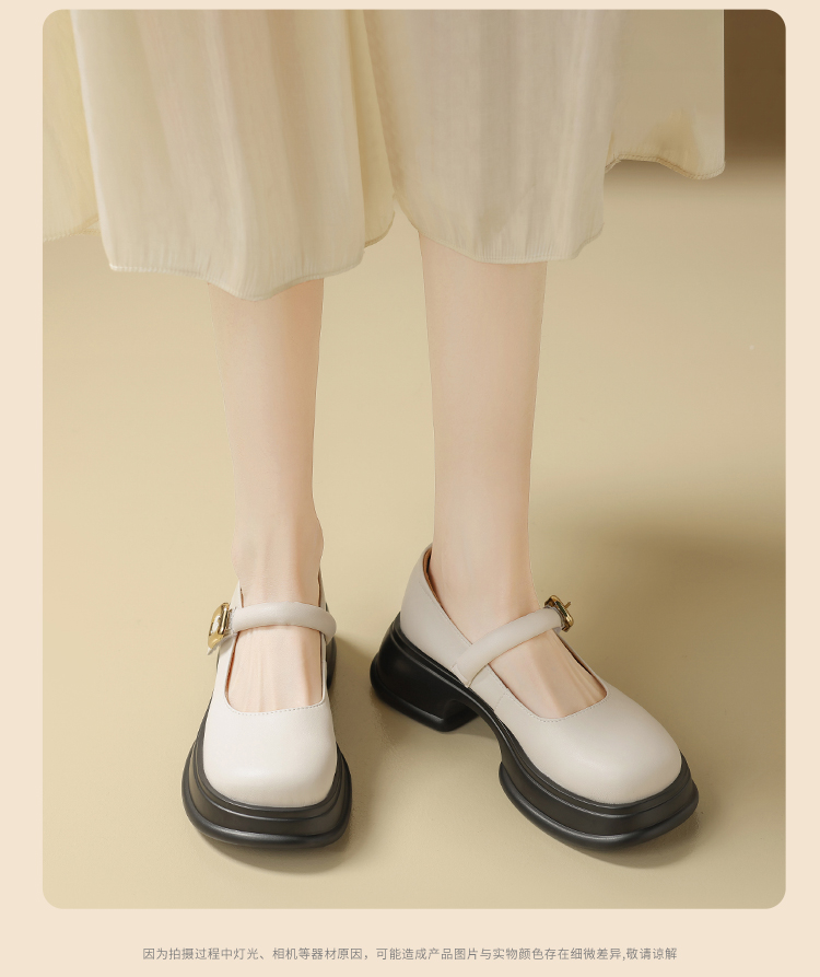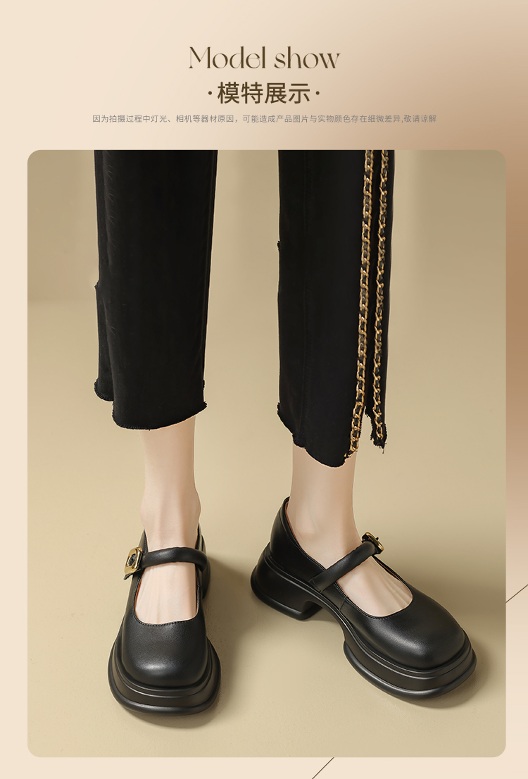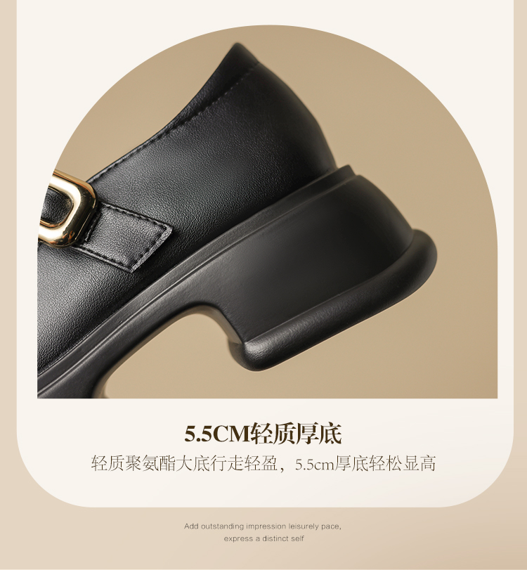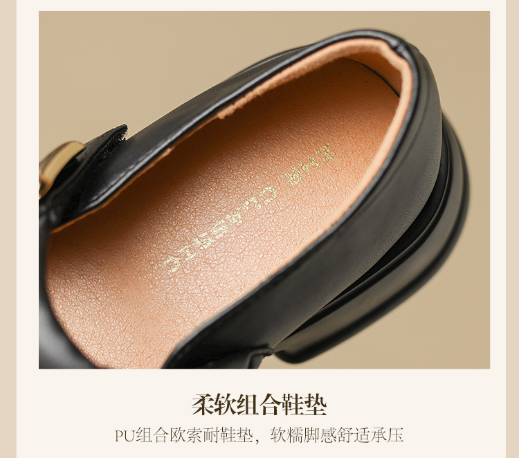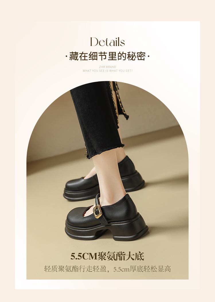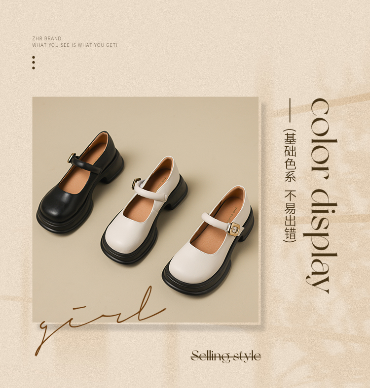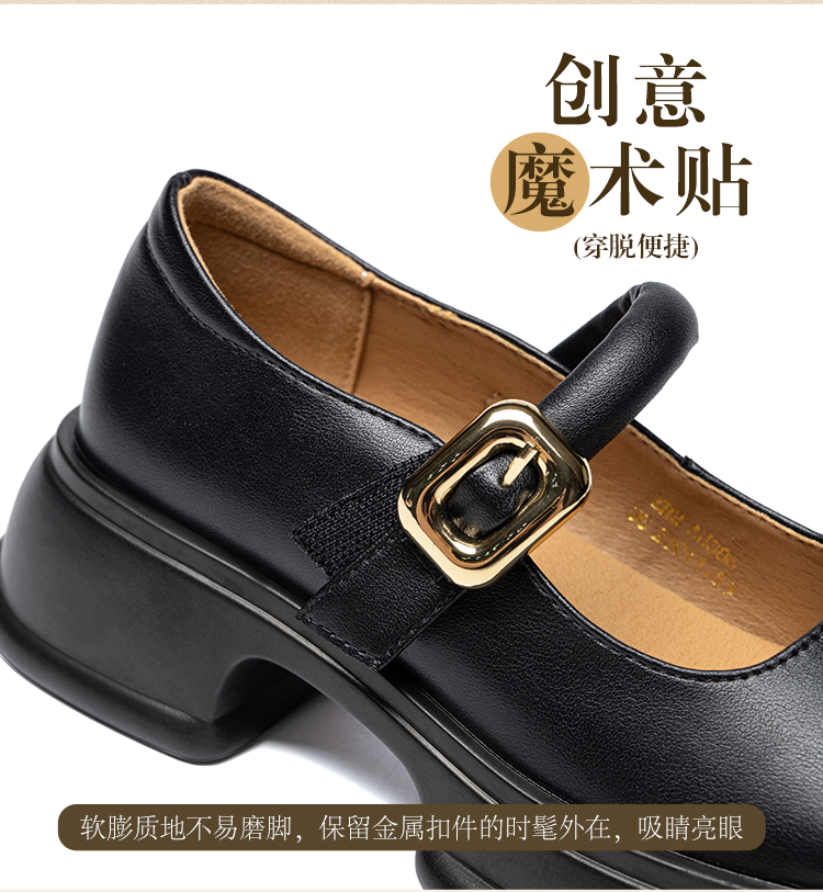 ZHR乐福鞋女2024春季新款百搭厚底休闲时尚学院风魔术贴粗跟浅口玛丽珍