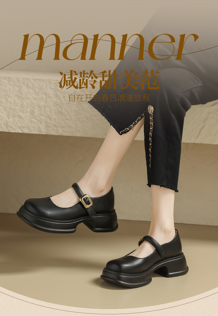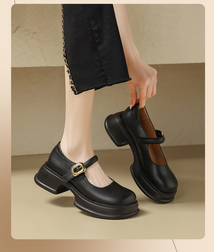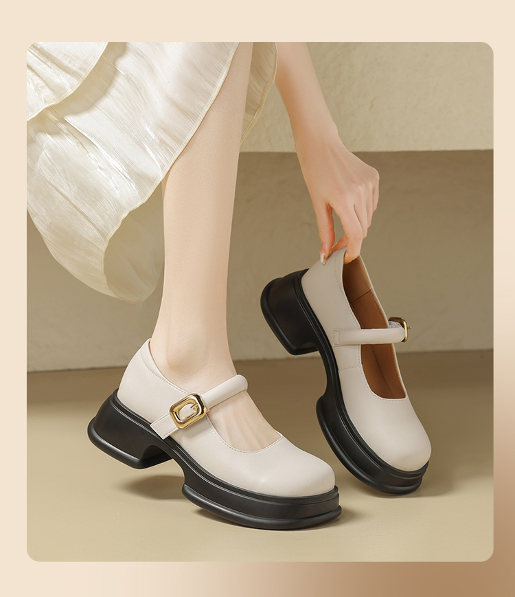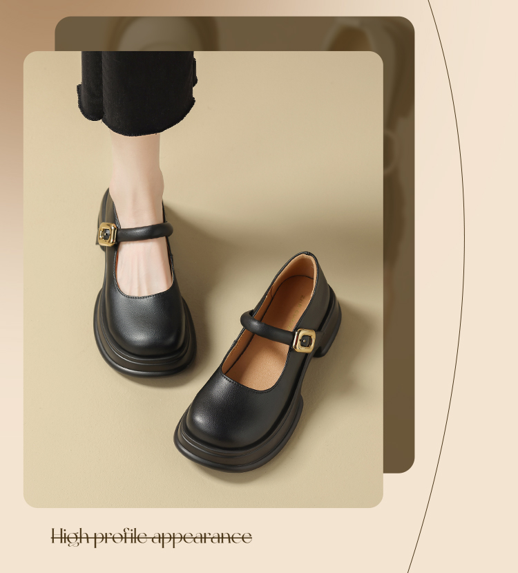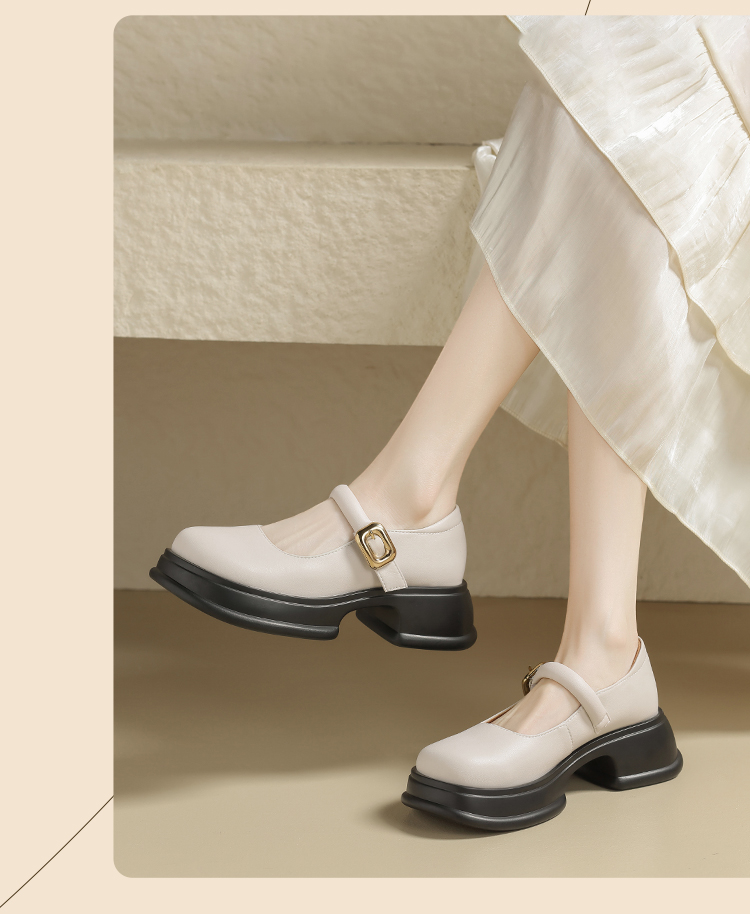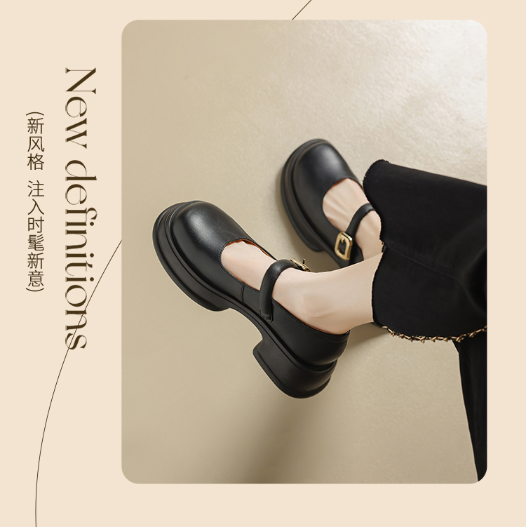 ZHR乐福鞋女2024春季新款百搭厚底休闲时尚学院风魔术贴粗跟浅口玛丽珍