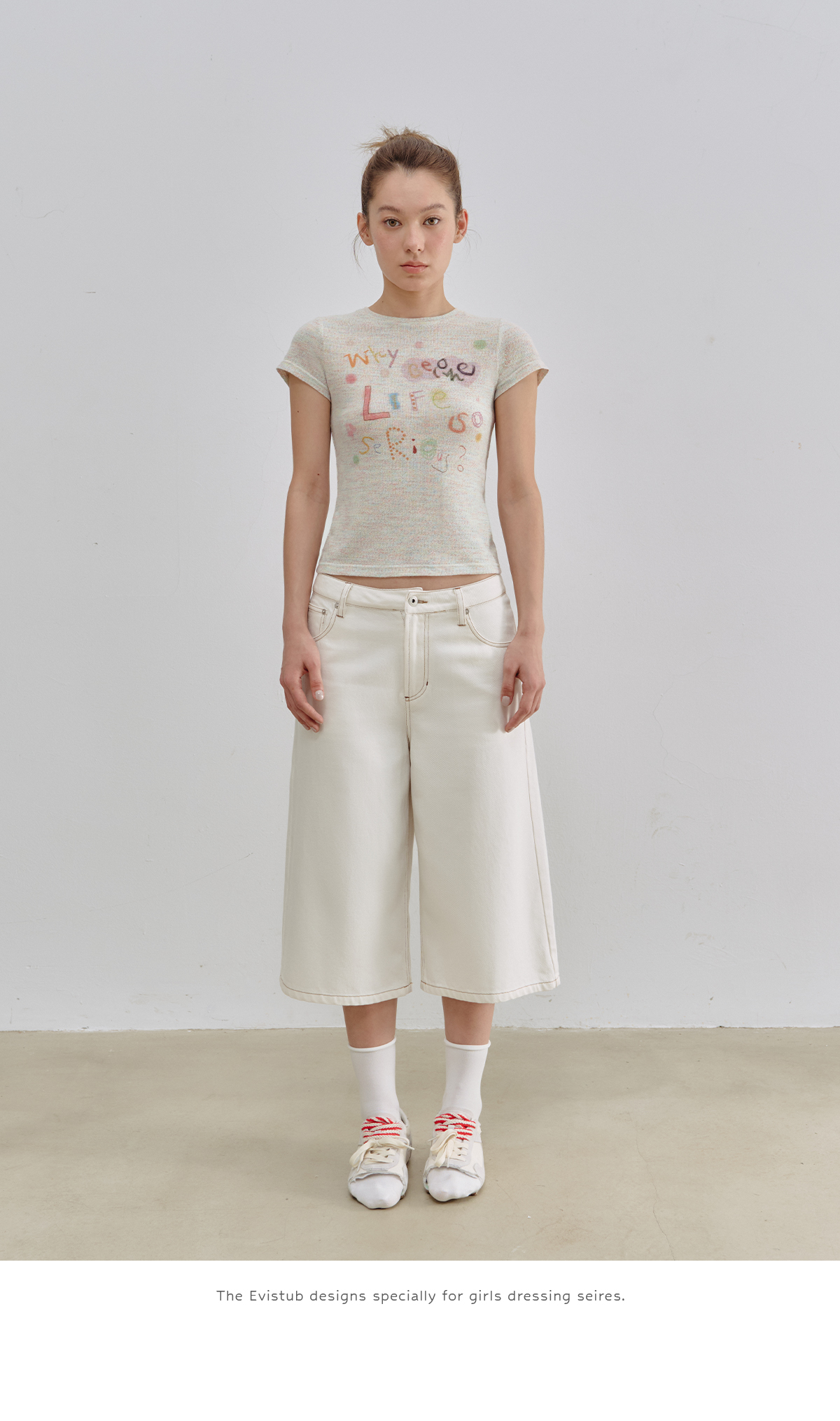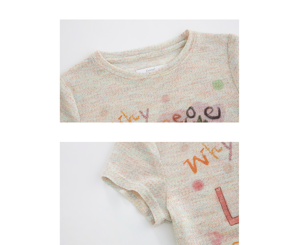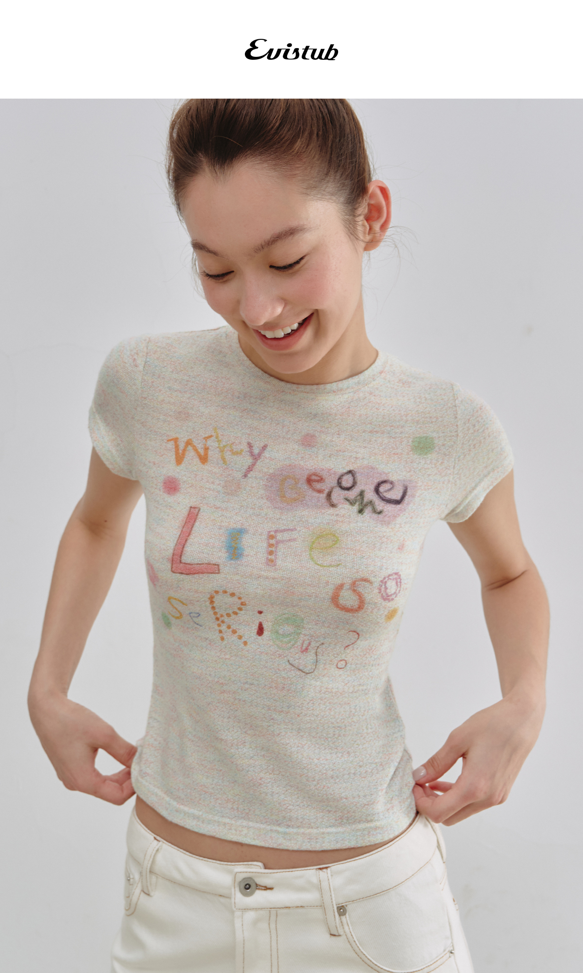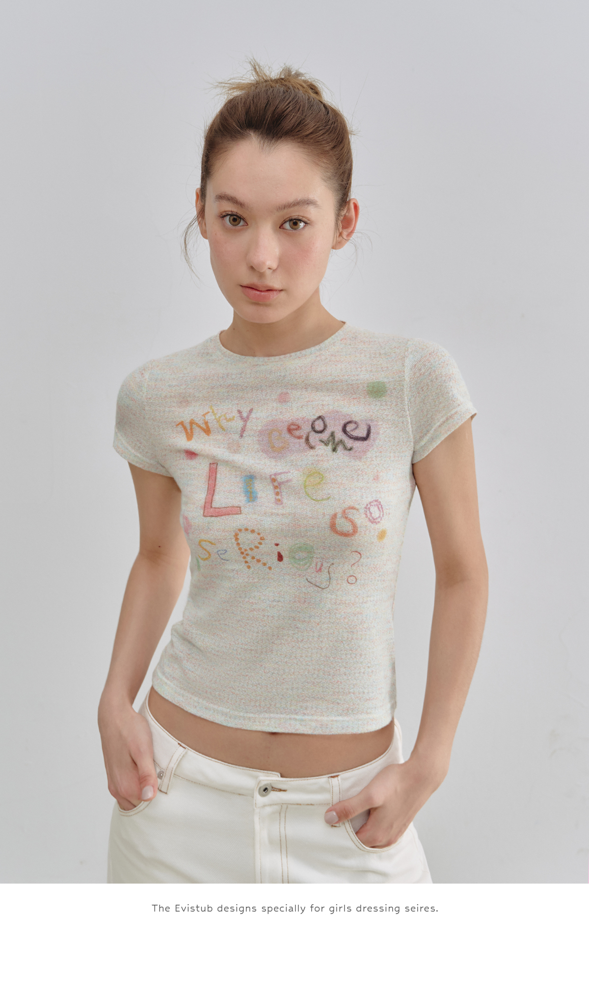 Evistub/E-5XDX458/花纱彩绘印花正肩T恤女夏