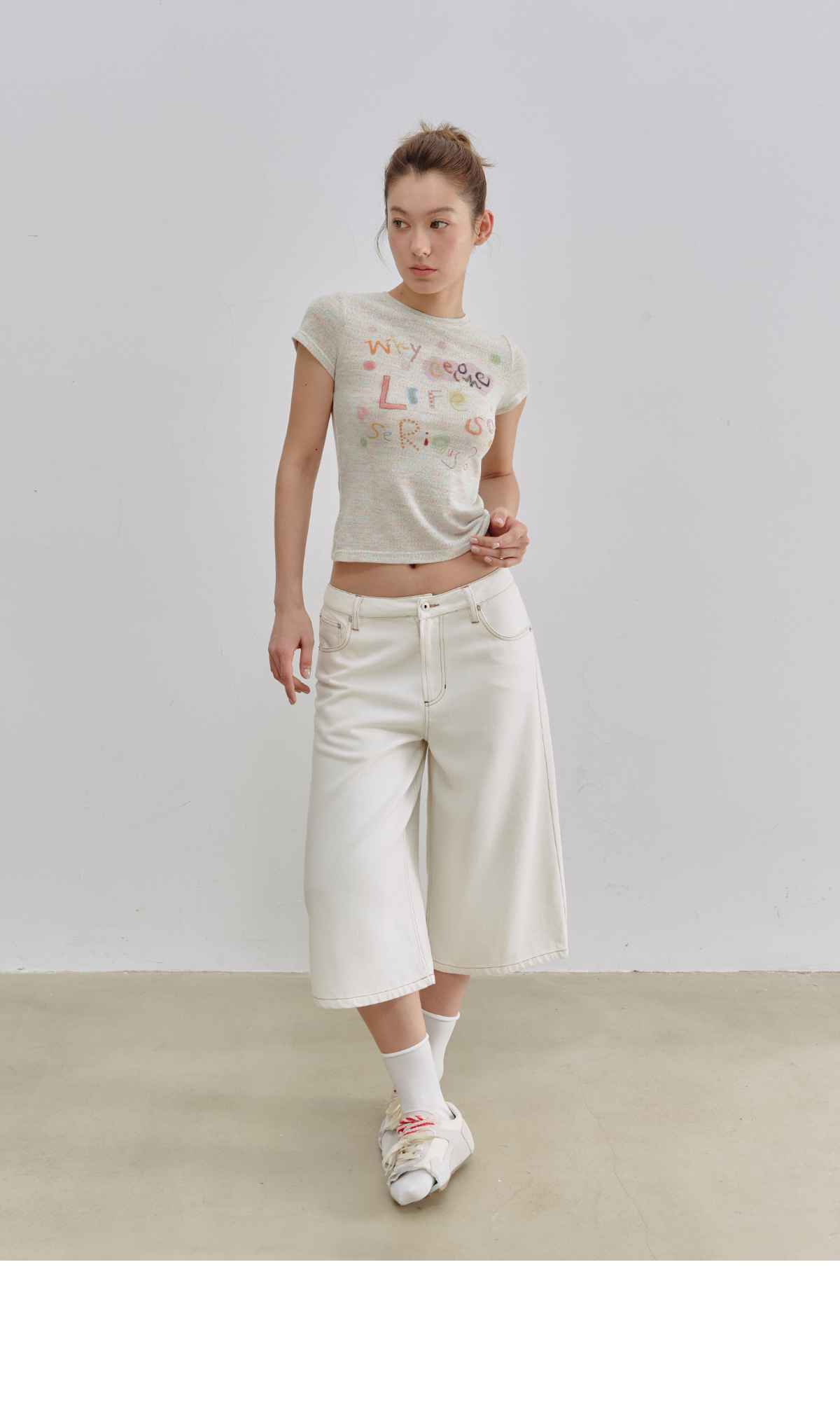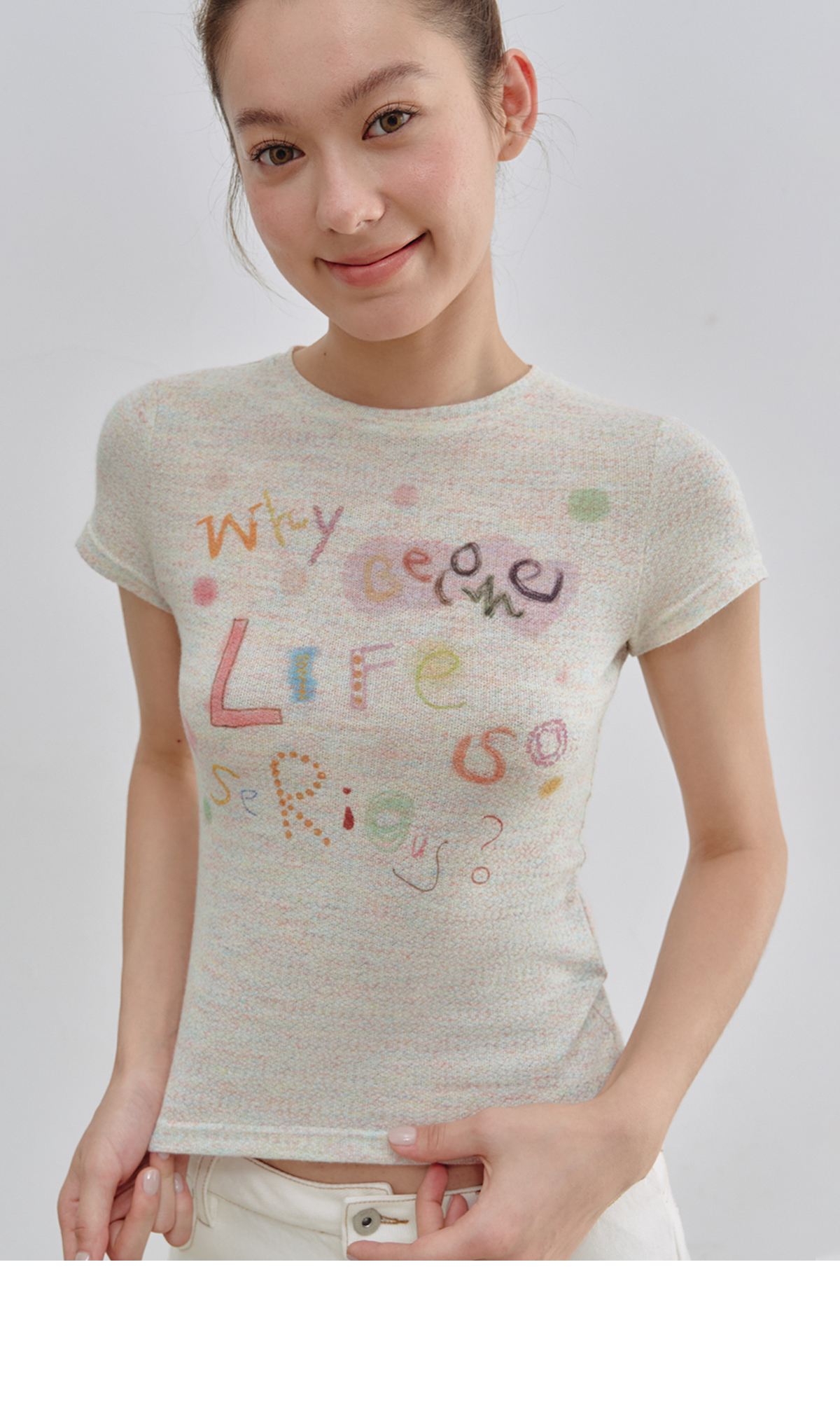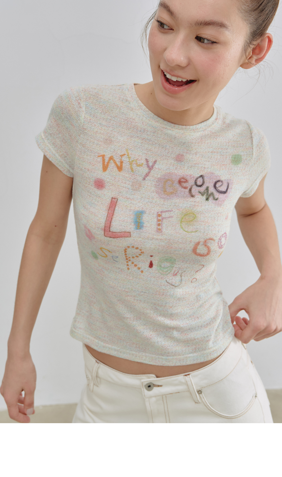 Evistub/E-5XDX458/花纱彩绘印花正肩T恤女夏