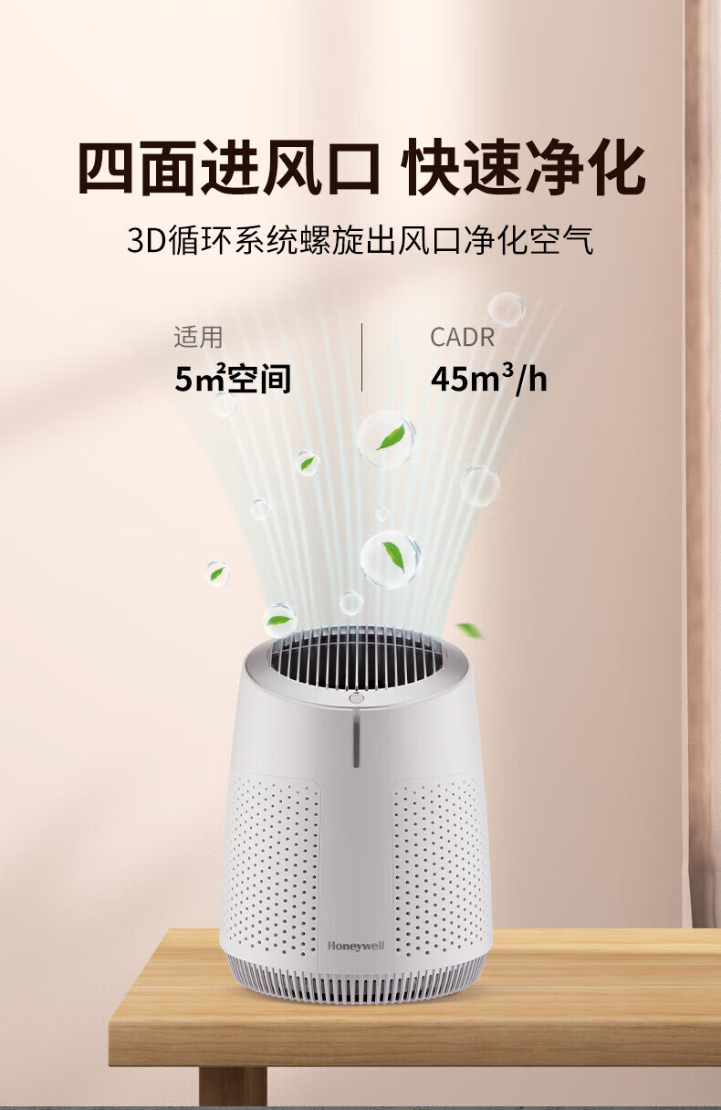 霍尼韦尔空气净化器 桌面台式家用办公室 除菌粉尘轻音 小型净化器KJ45F-X02 净化器