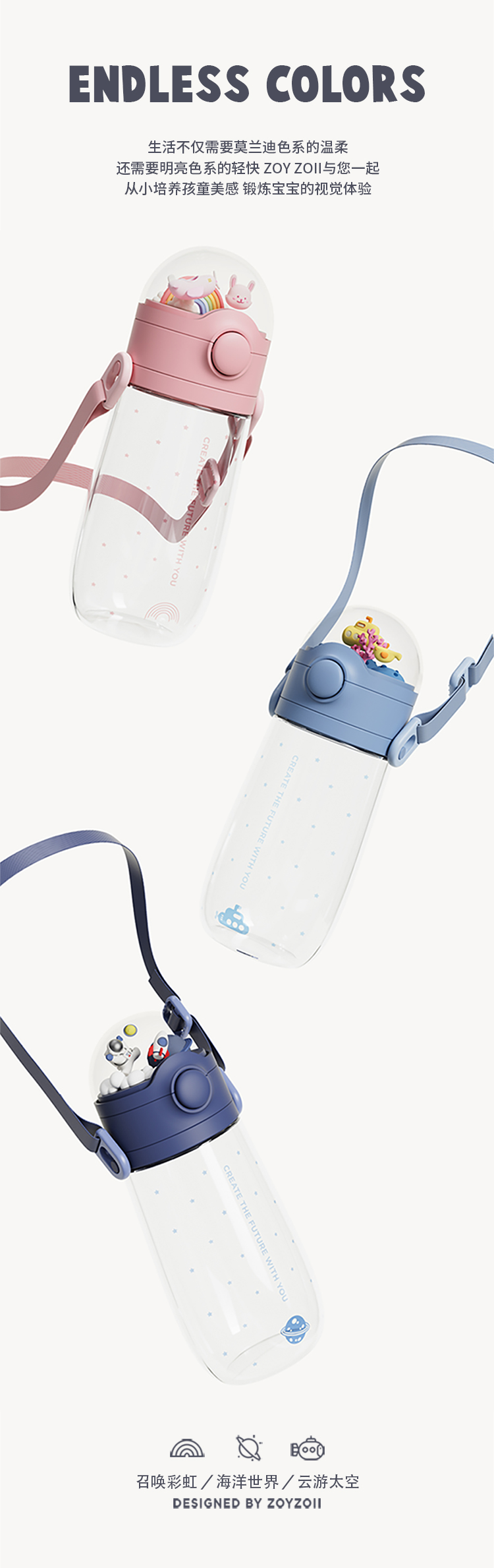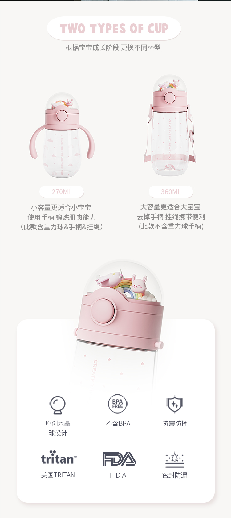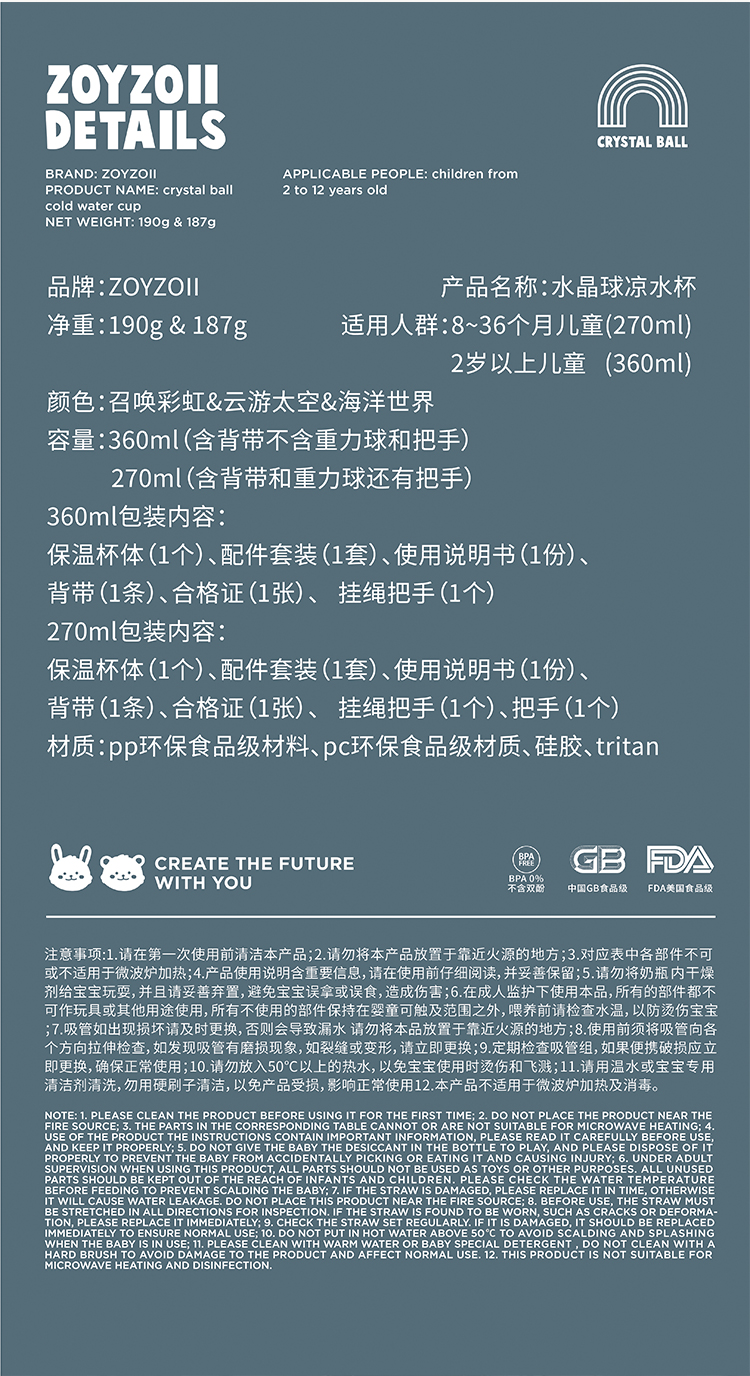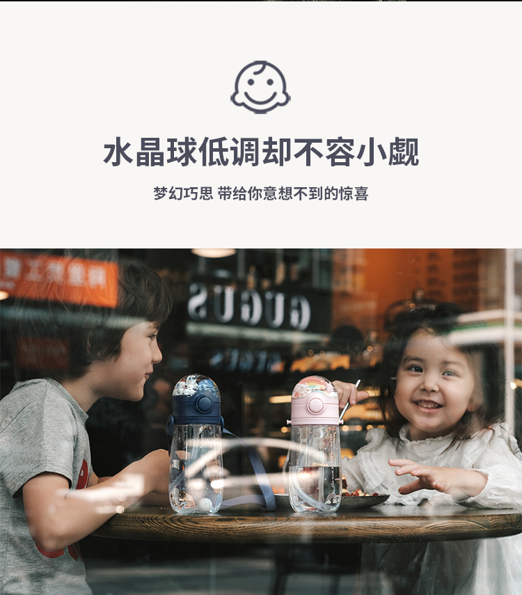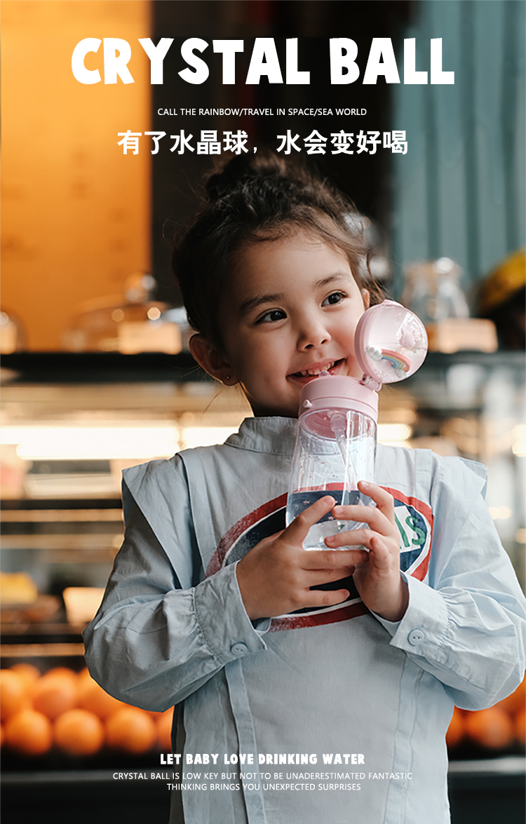 ZOYZOII儿童水杯 水晶球吸管杯宝宝爱喝水~~学生防摔便携水壶可爱