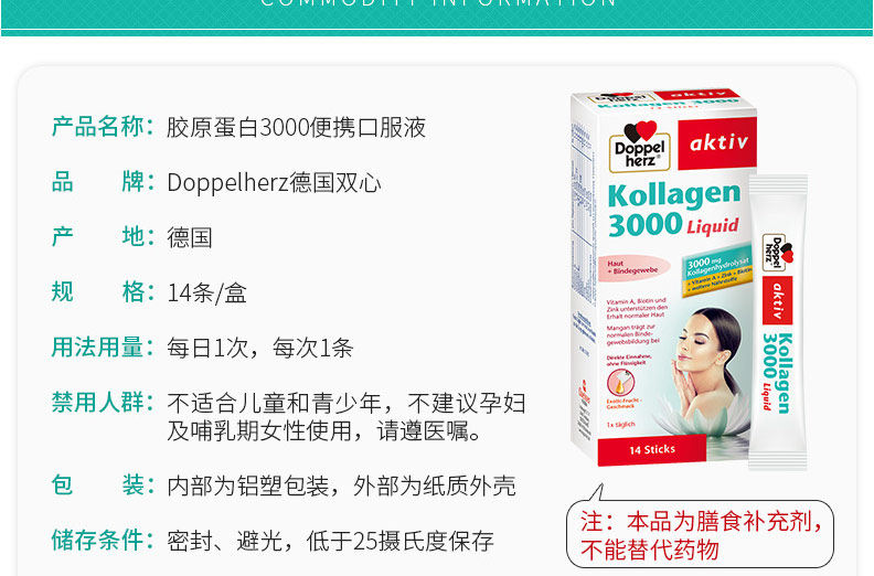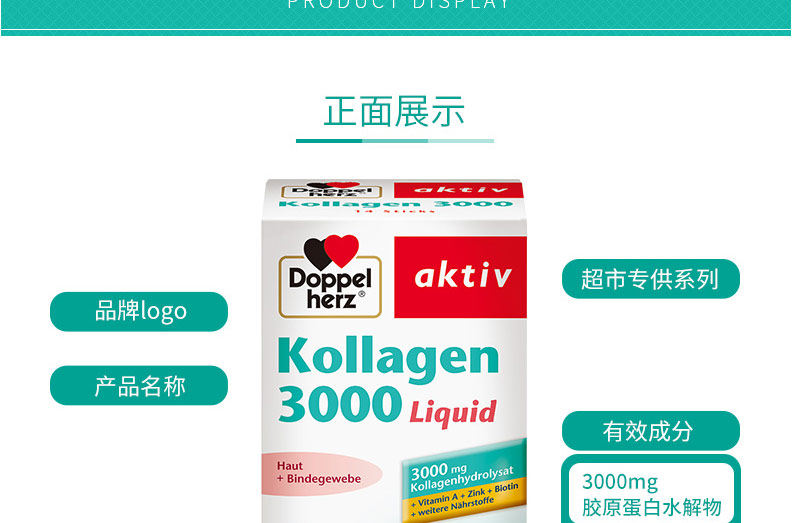 【保税】德国Doppelherz双心胶原蛋白3000口服液14条