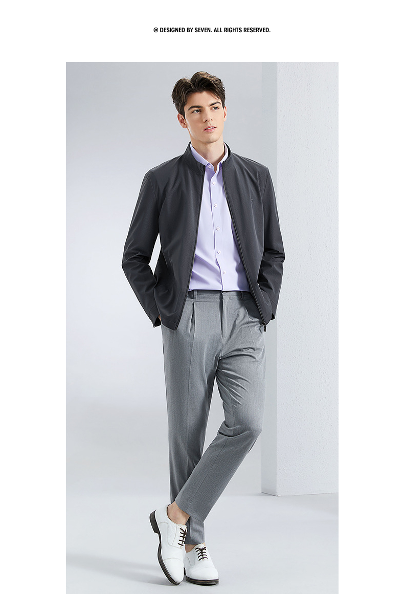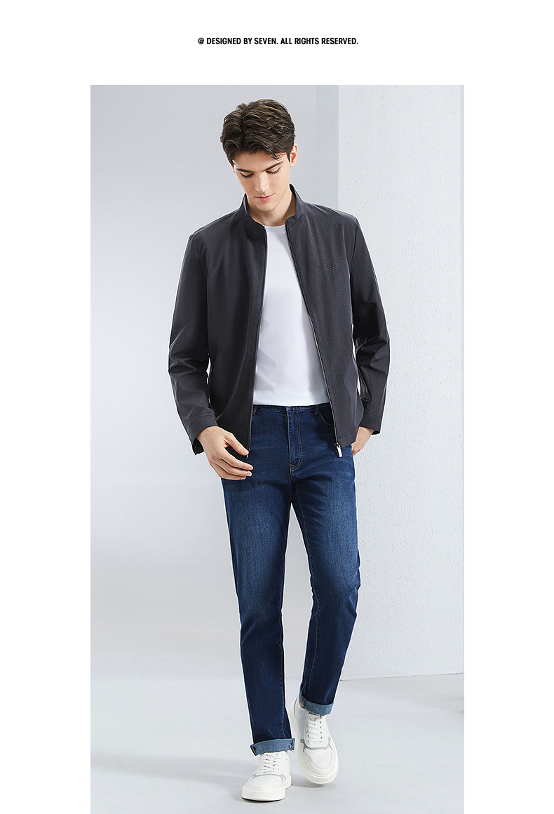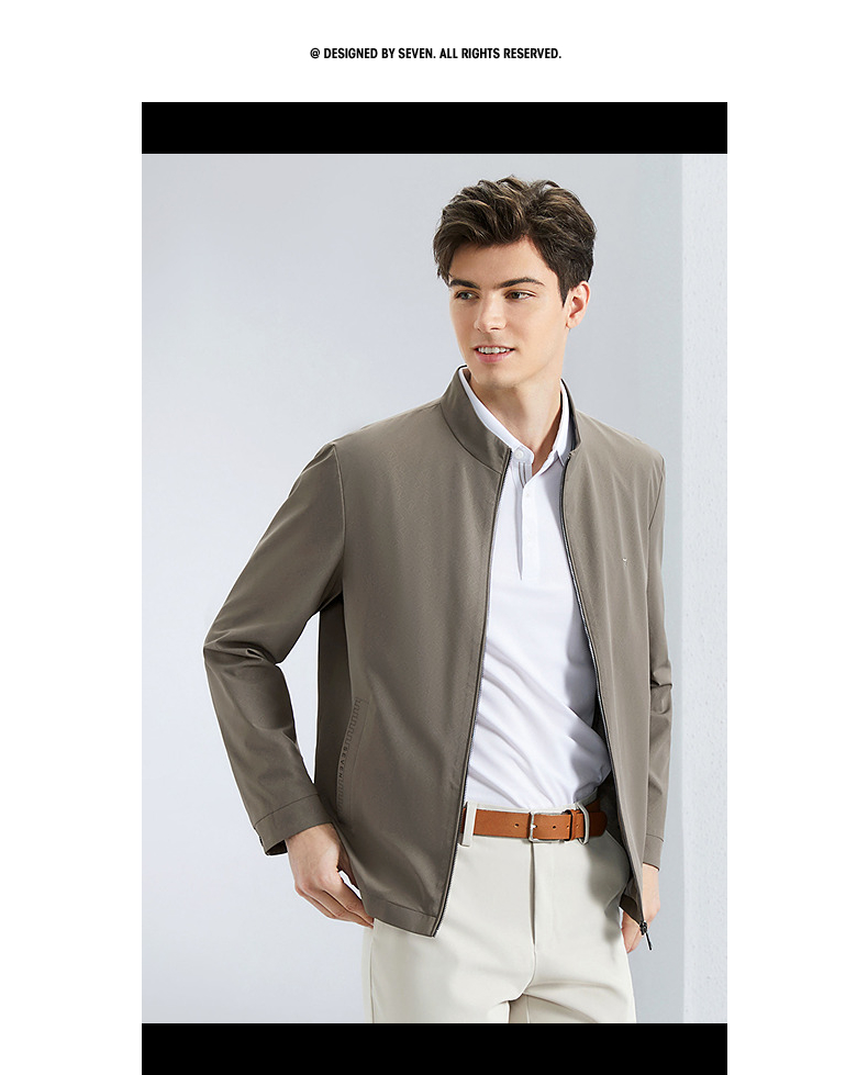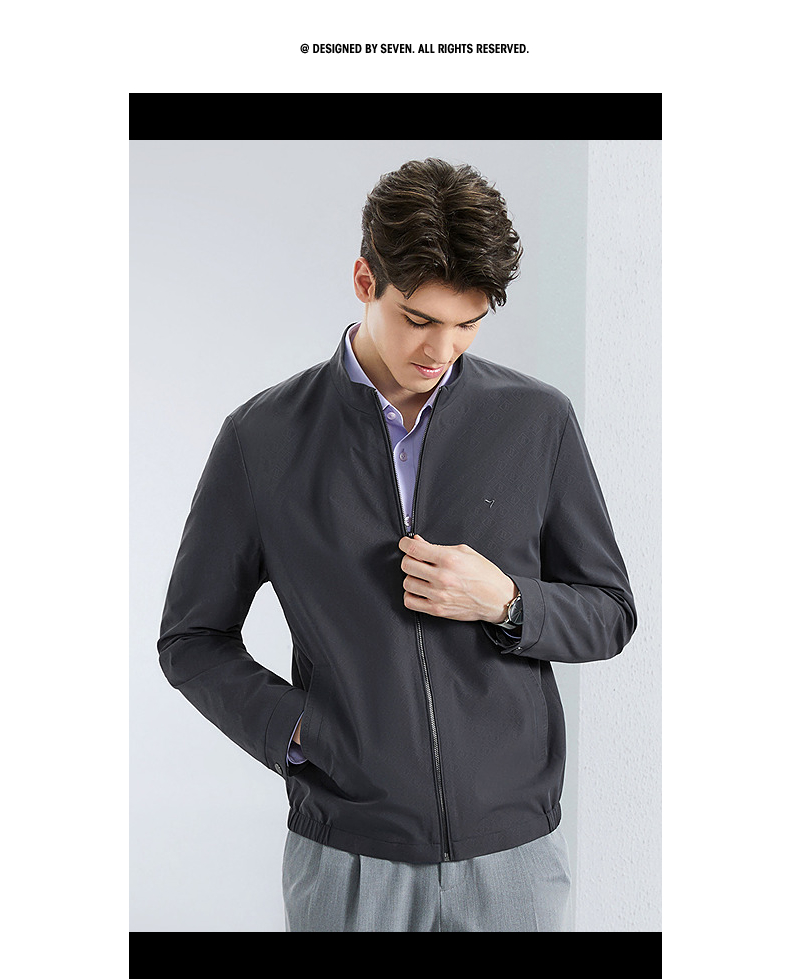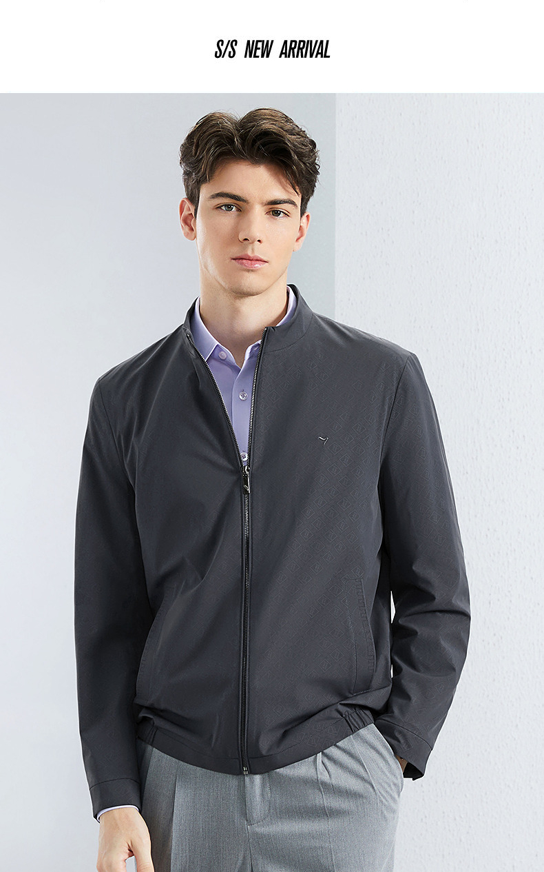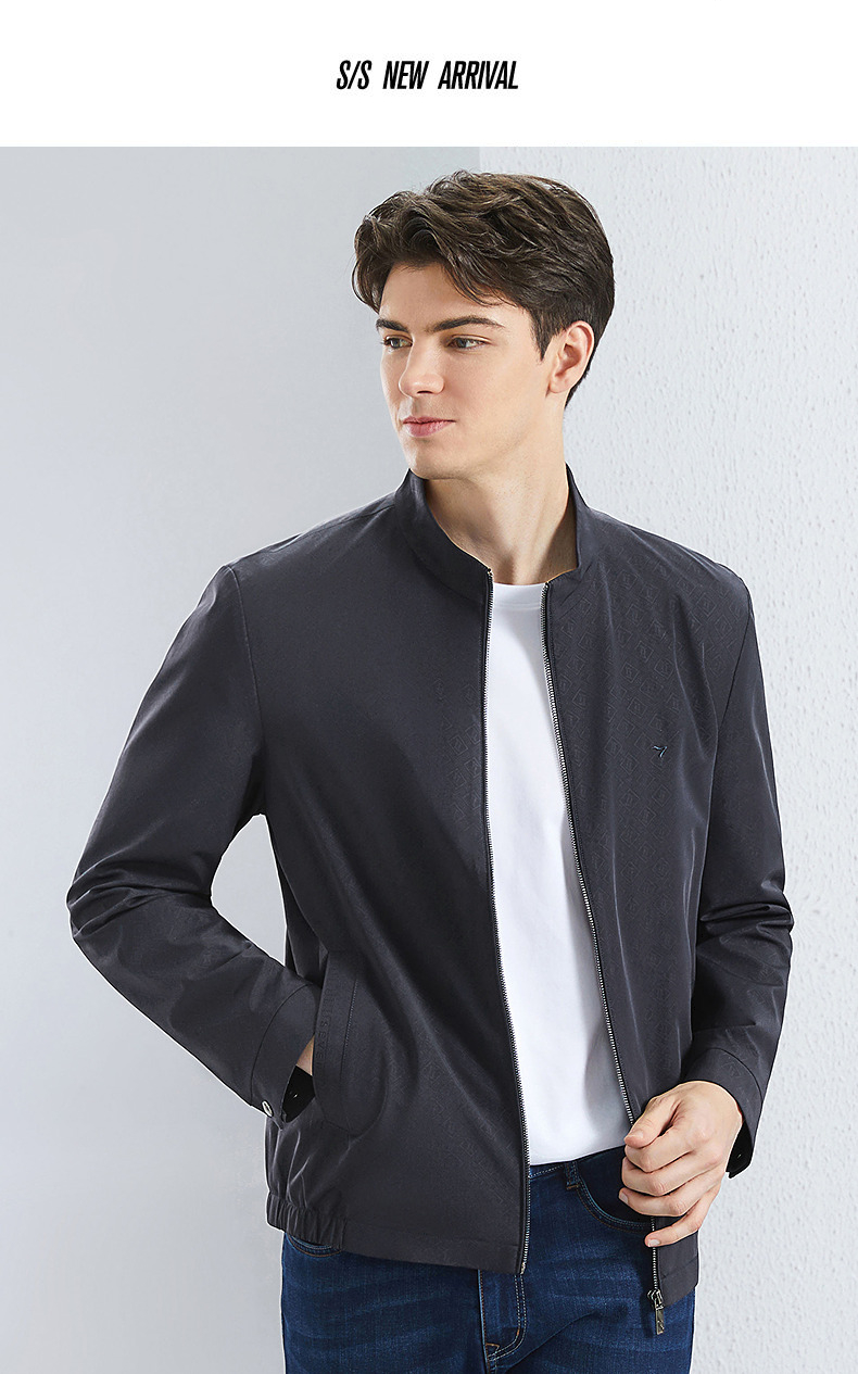 柒牌男士立领夹克2024春季新款商务休闲中青年满身印花外套茄克衫 126K70490