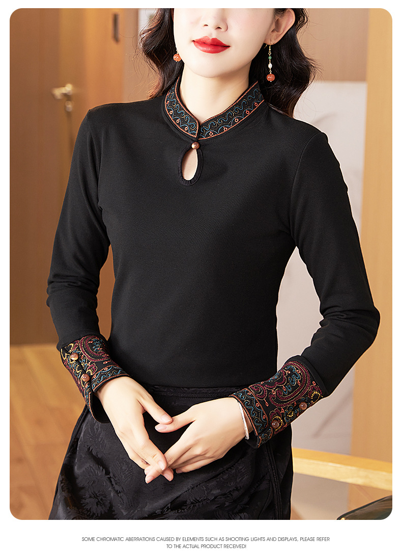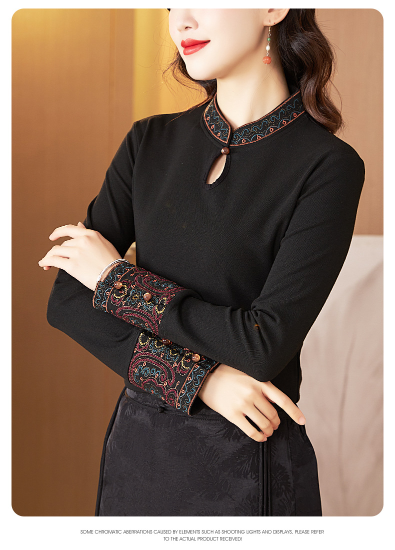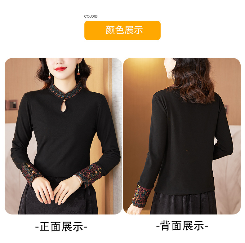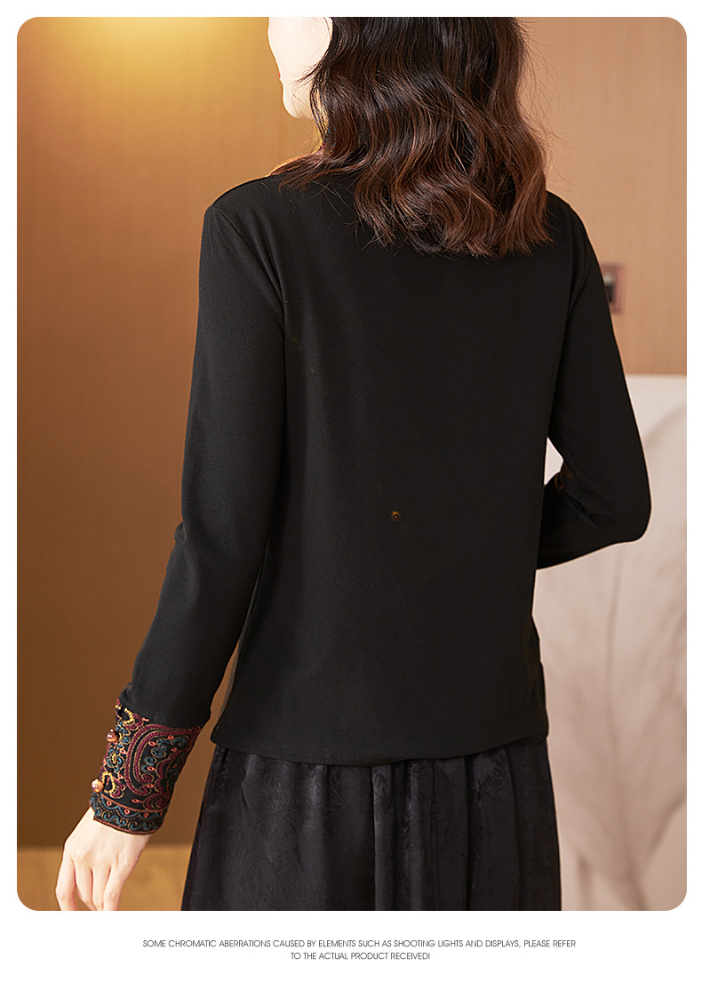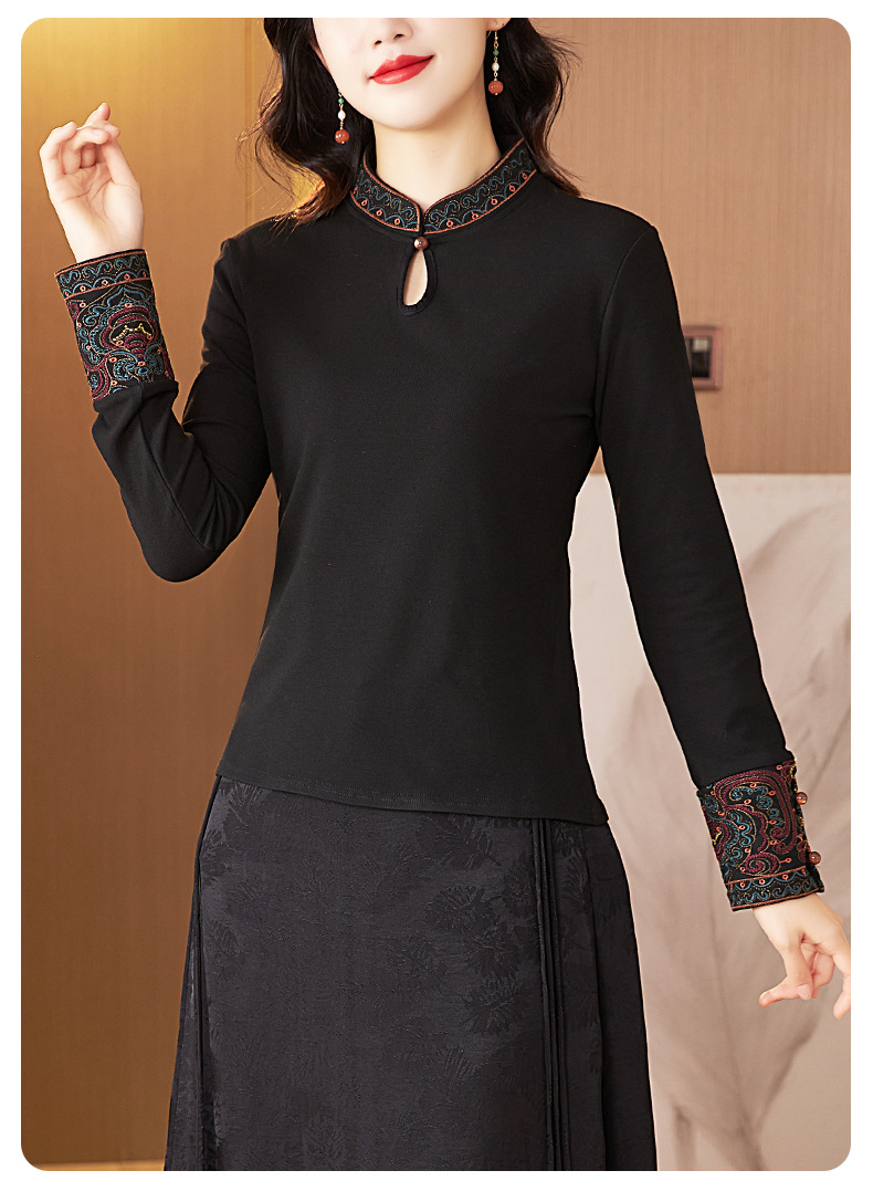 冬新中式国风袖口上衣,女秋冬高级感简约修身禅意T恤打底衫KQL-422H2283
