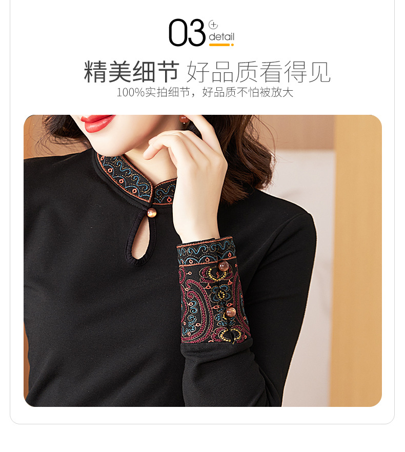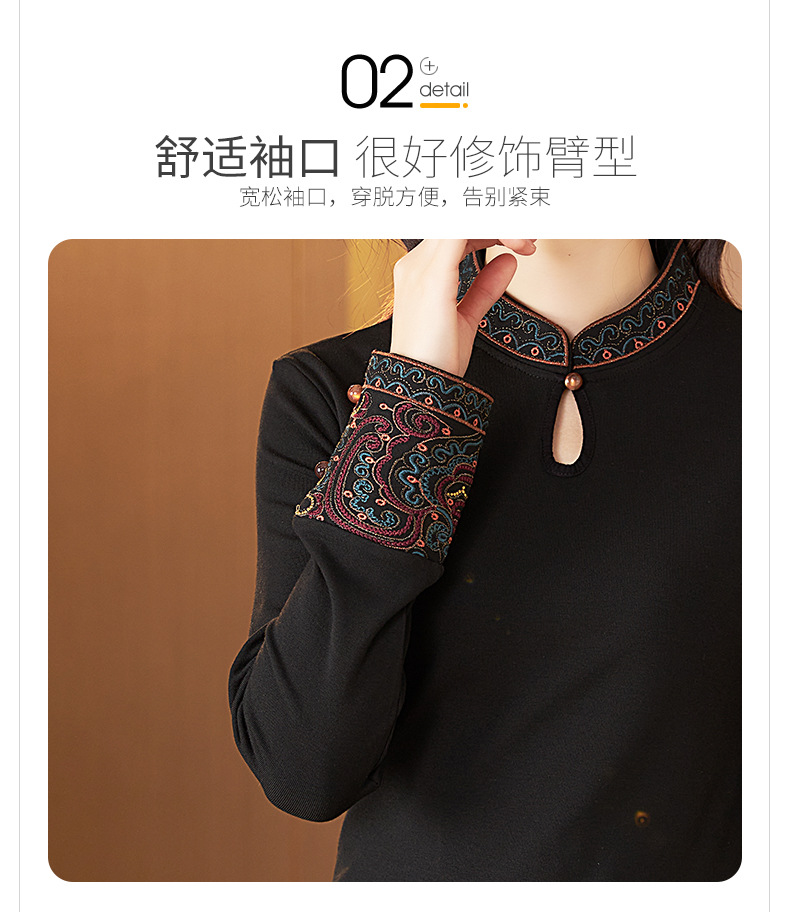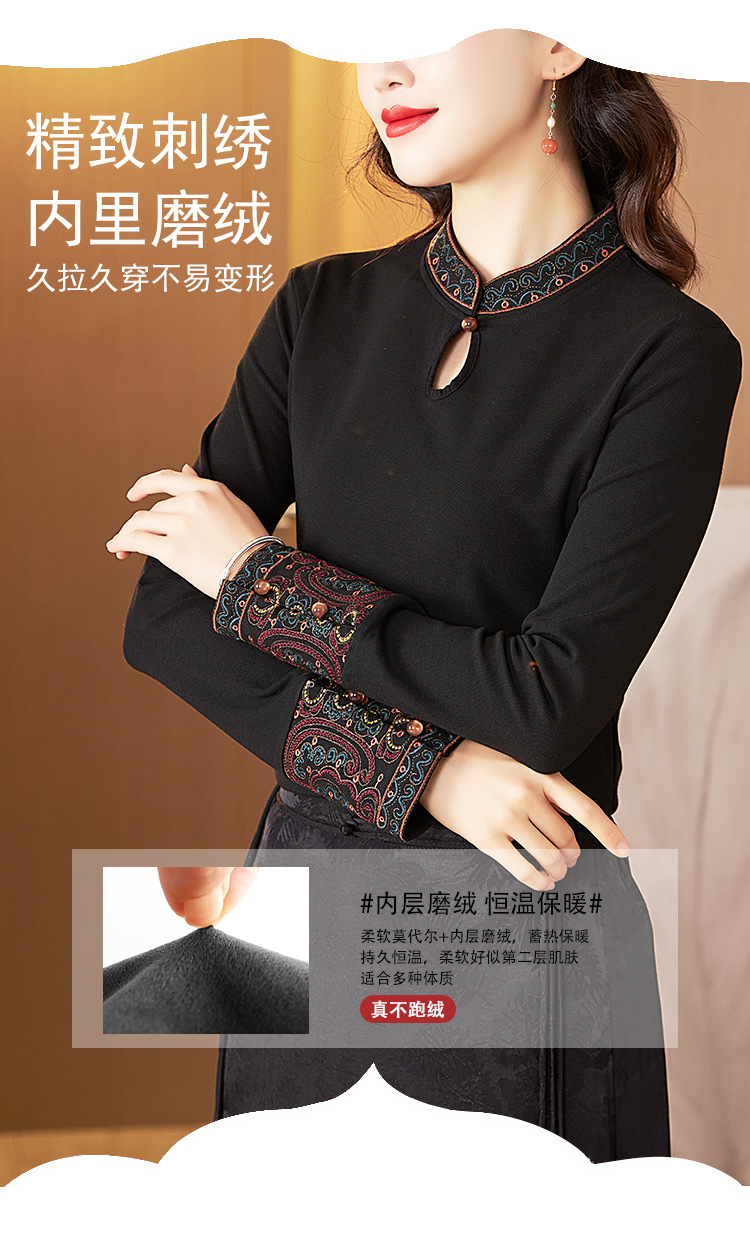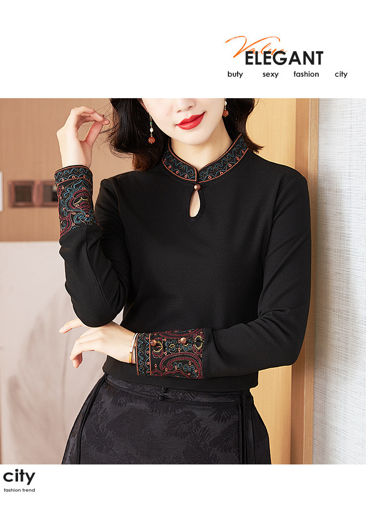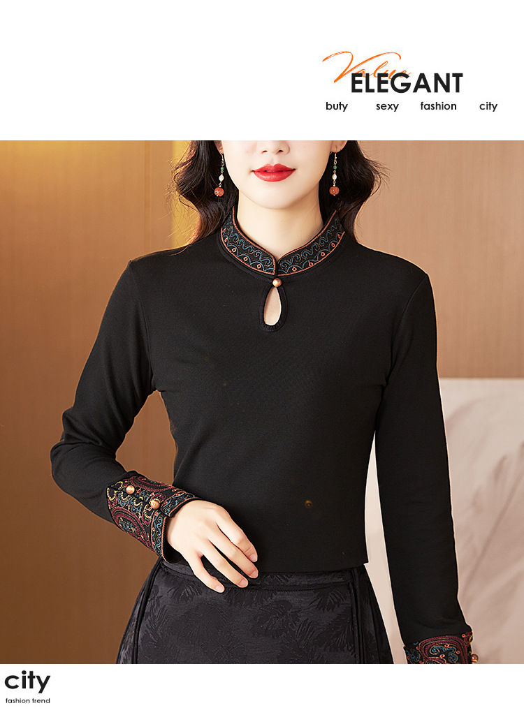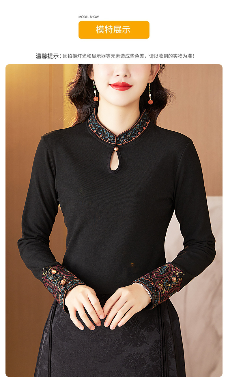 冬新中式国风袖口上衣,女秋冬高级感简约修身禅意T恤打底衫KQL-422H2283