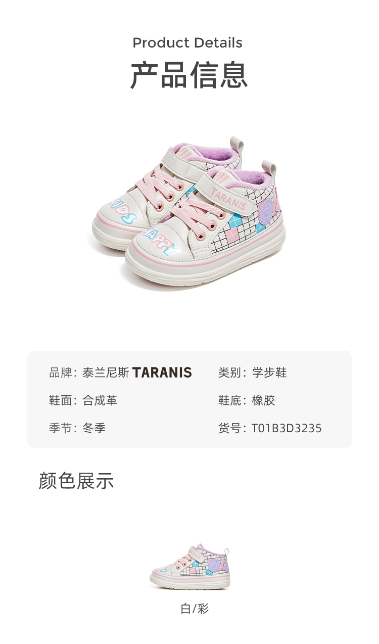 泰兰尼斯婴童段冬款柔软加绒保暖211学步鞋T01B3D3235