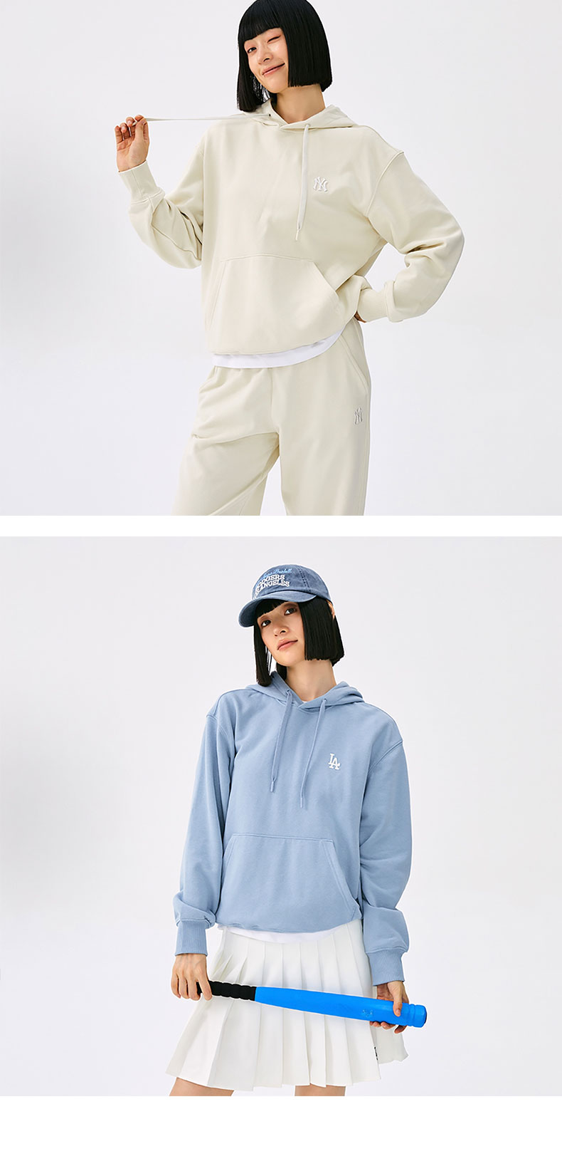 【MLB经典小标连帽卫衣HDB01】MLB男女同款纯色小标百搭休闲连帽卫衣25秋季新款