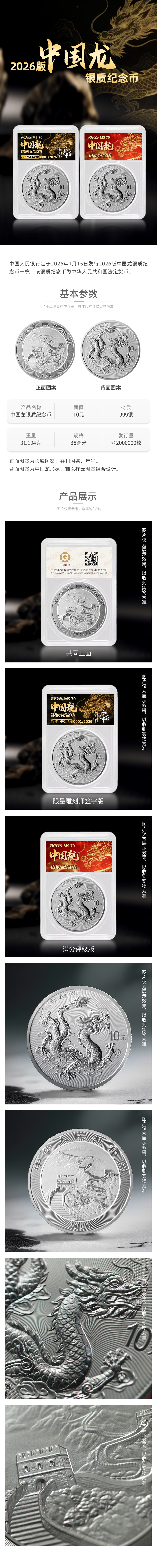 【订金预订 非全款】2026年中国龙银币限量封装版 后期需补尾款