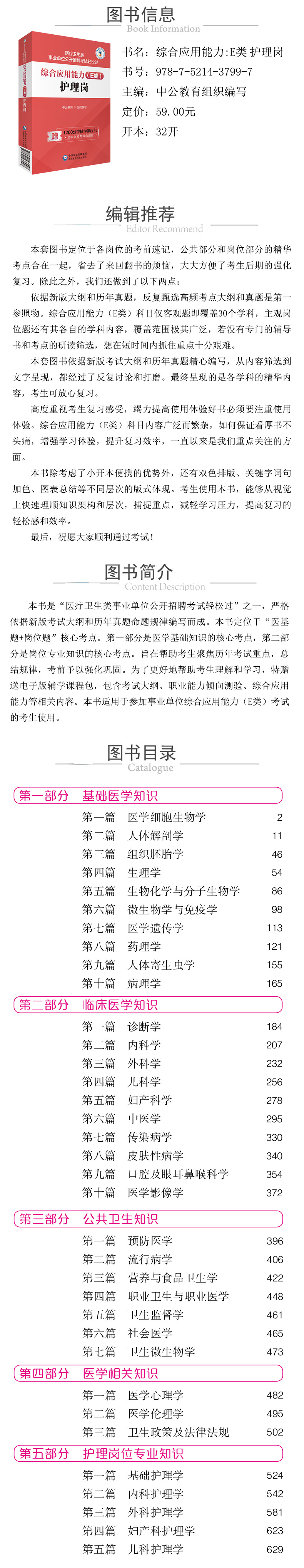 本书是"医疗卫生类事业单位公开招聘考试轻松过"之一,严格依据新版考试大纲和历年真题命题规律编写而成。本书定位于"医基题+岗位题"核心考点。第一部分是医学基础知识的核心考点,第二部分是岗位专业知识的核心考点。旨在帮助考生聚焦历年考试重点,总结规律,考前予以强化巩固。为了更好地帮助考生理解和学习,特赠送电子版辅学课程包,包含考试大纲、职业能力倾向测验、综合应用能力等相关内容。本书适用于参加事业单位综合应用能力(E类)考试的考生使用。