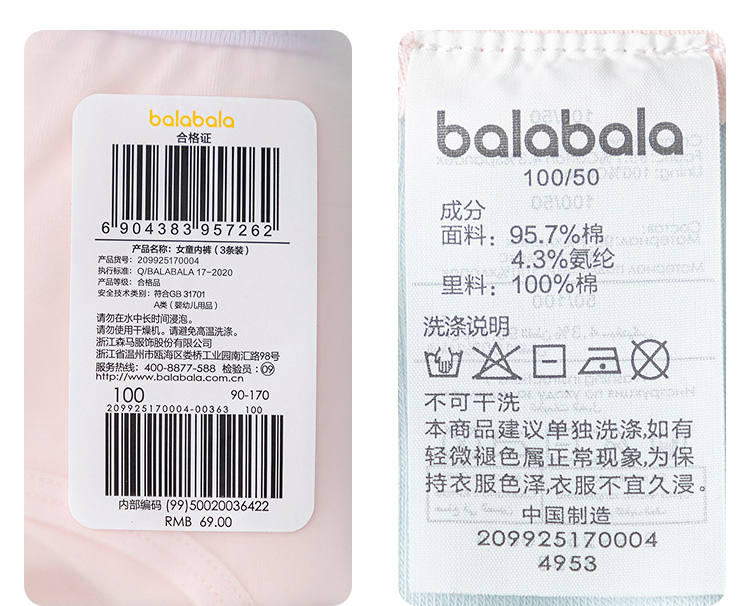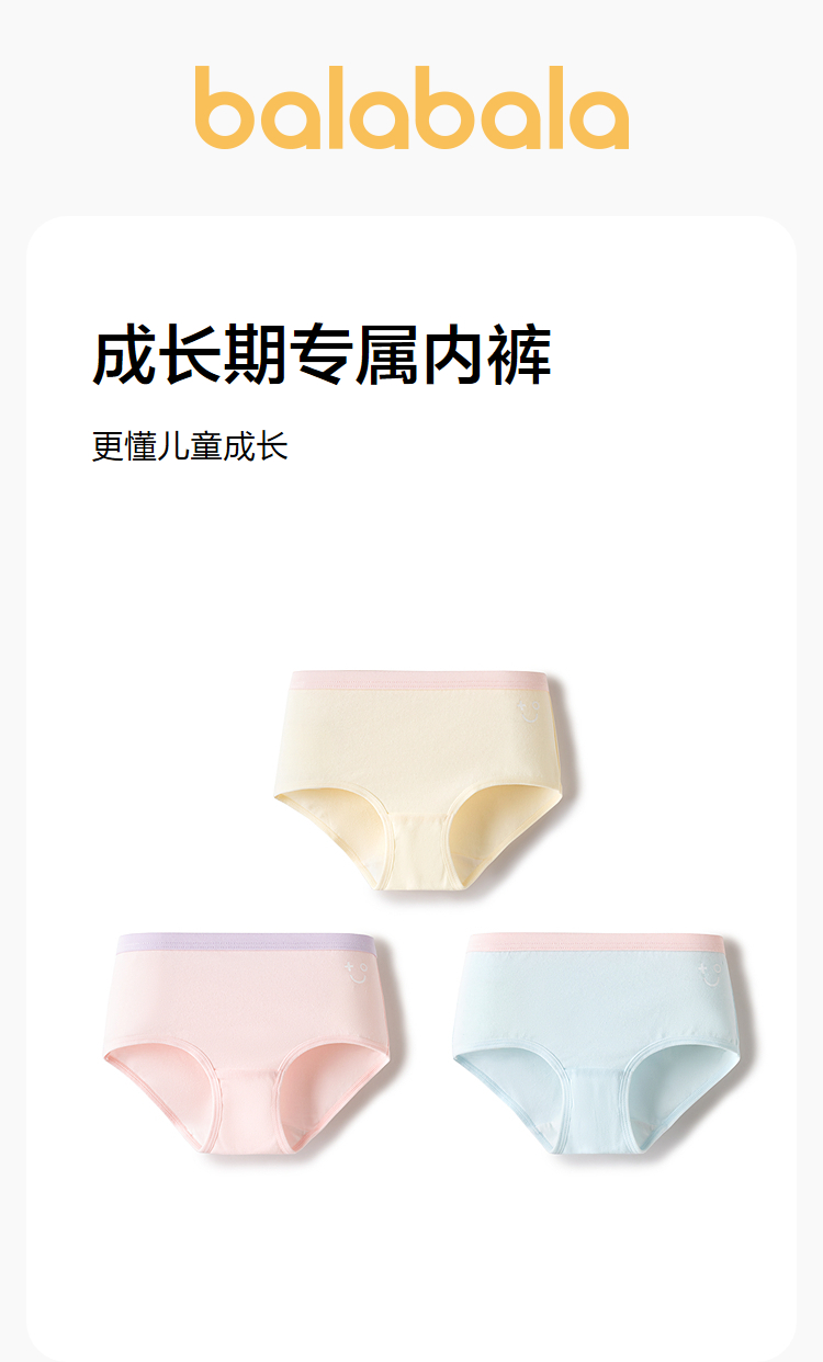 巴拉巴拉女童内裤棉小中大童三角短裤纯棉裆不夹P亲肤舒适三条装