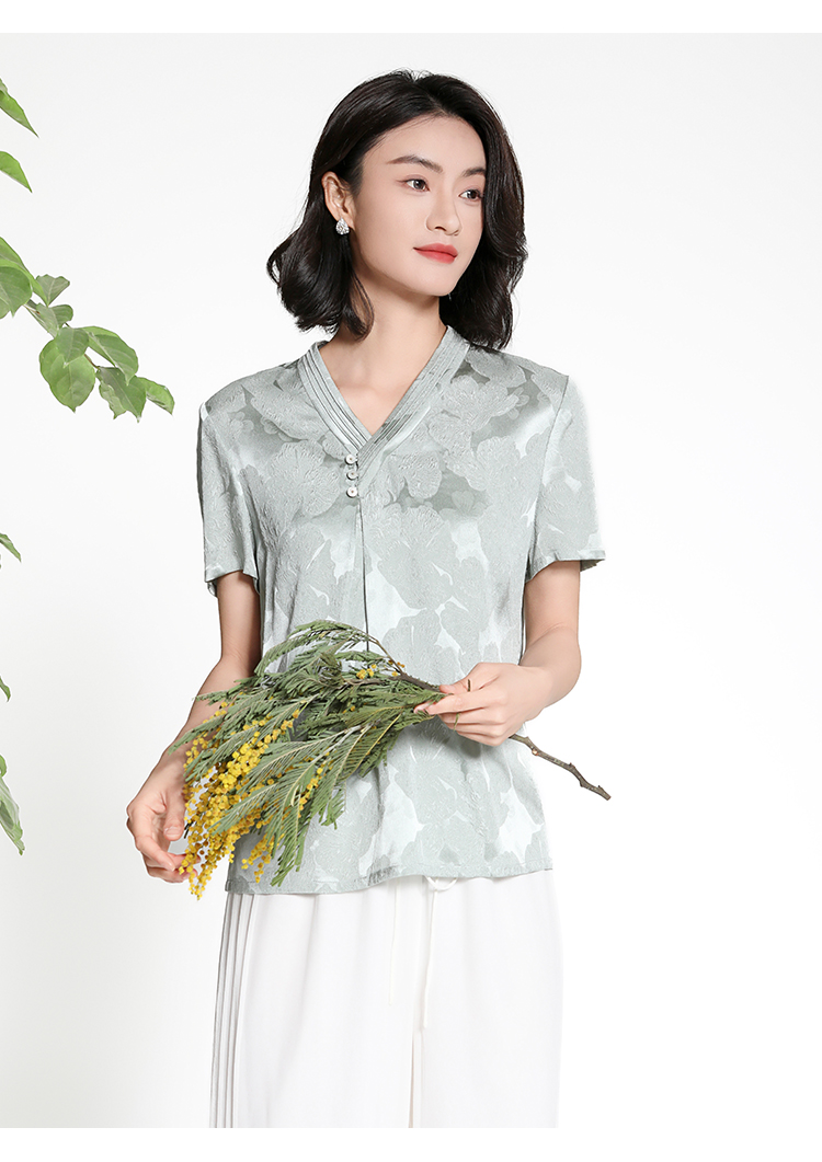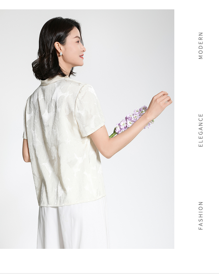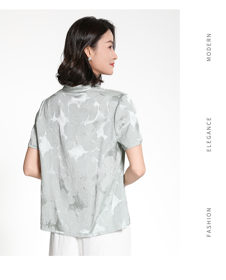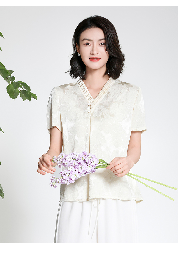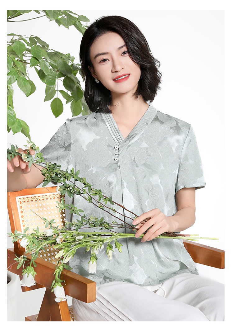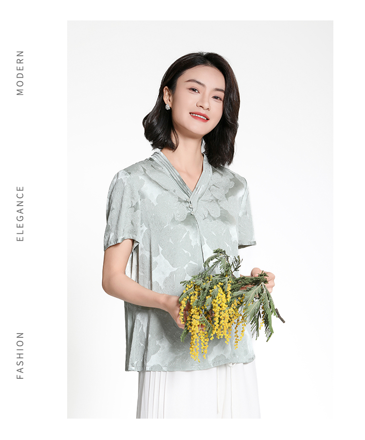 佐尔美夏季新款新中式国风时尚气质100%桑蚕丝短袖衬衣女M42CS97