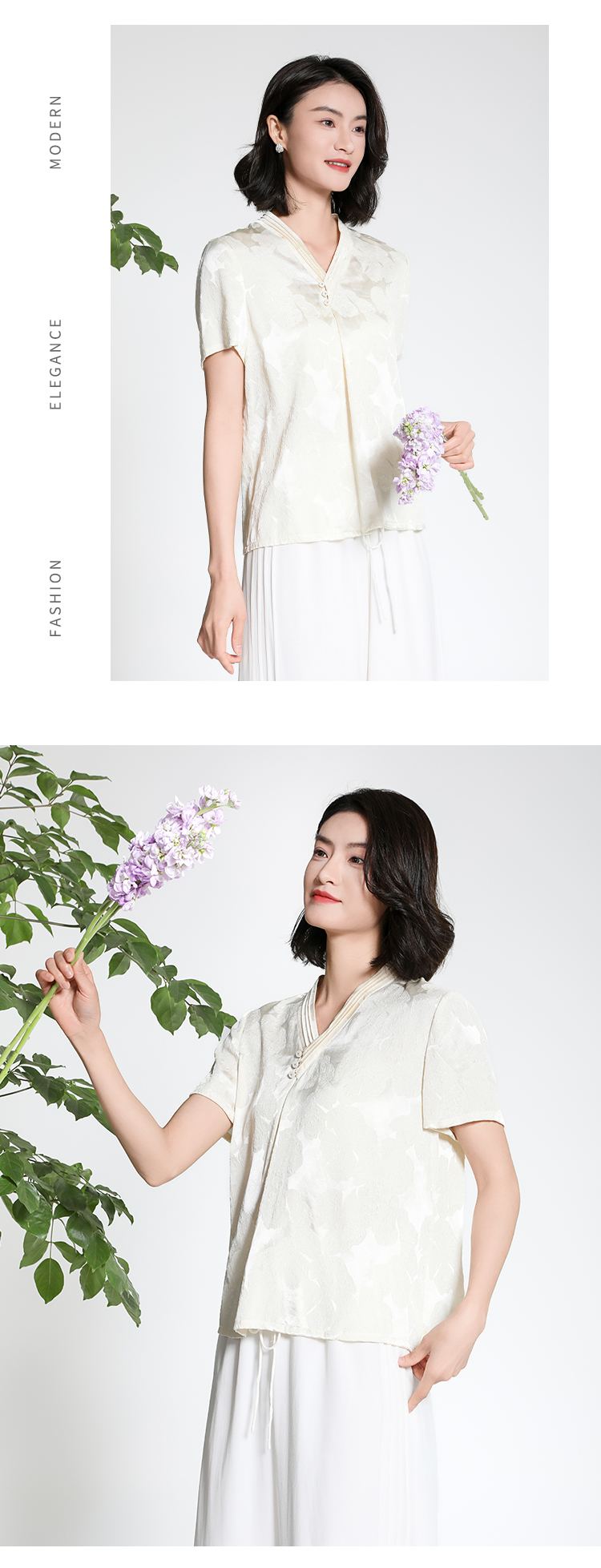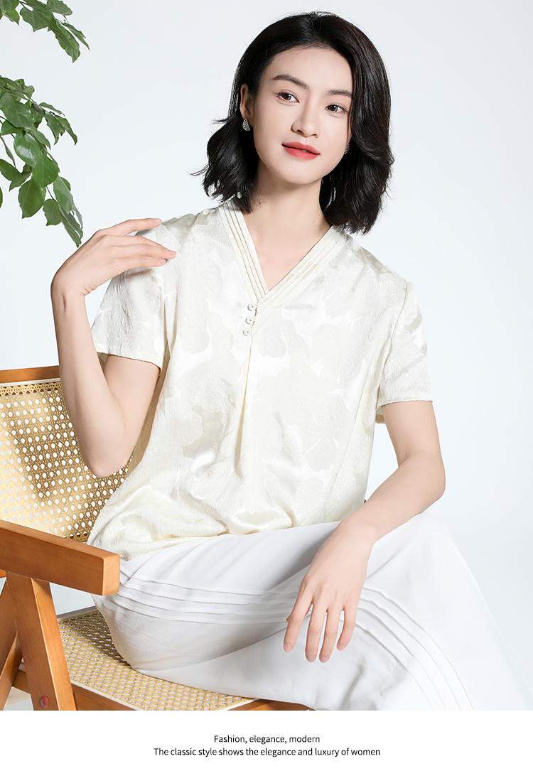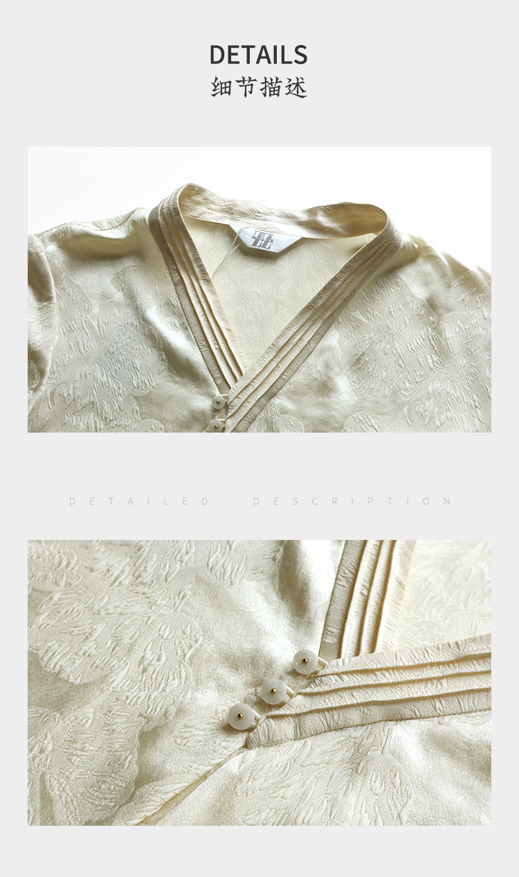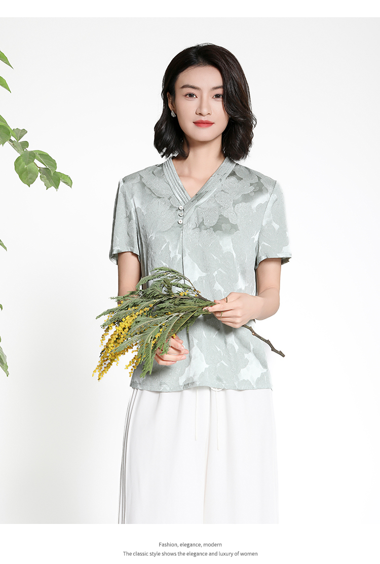 佐尔美夏季新款新中式国风时尚气质100%桑蚕丝短袖衬衣女M42CS97