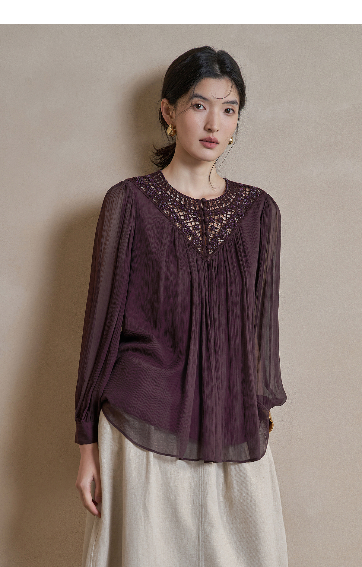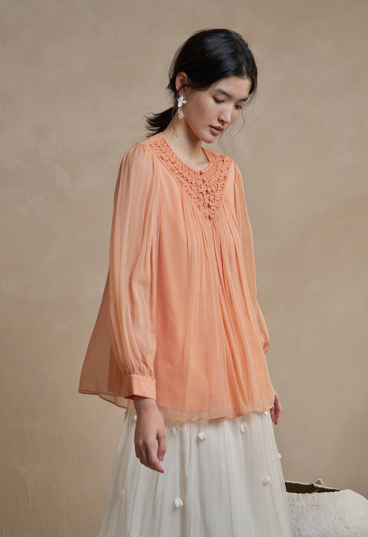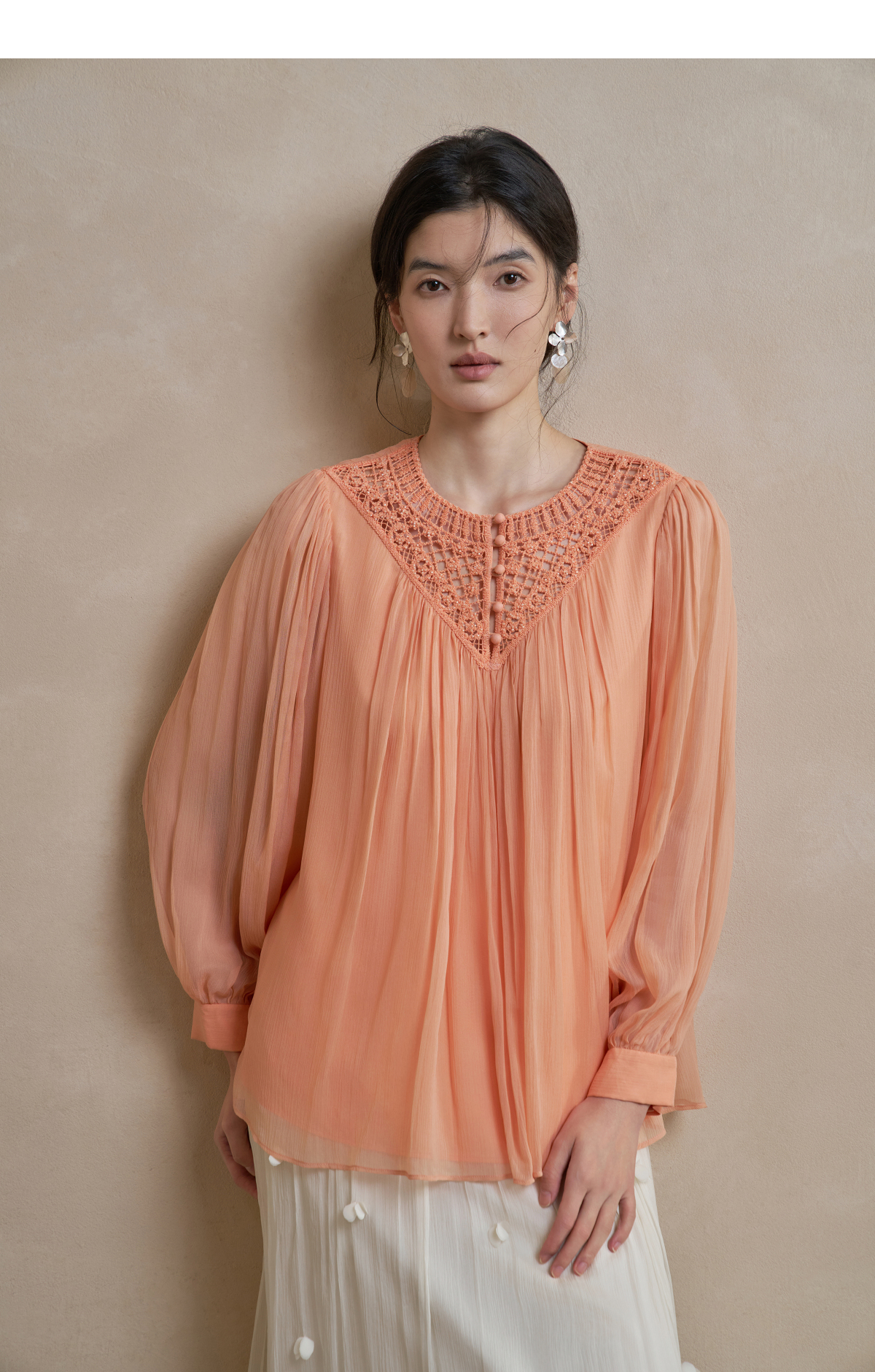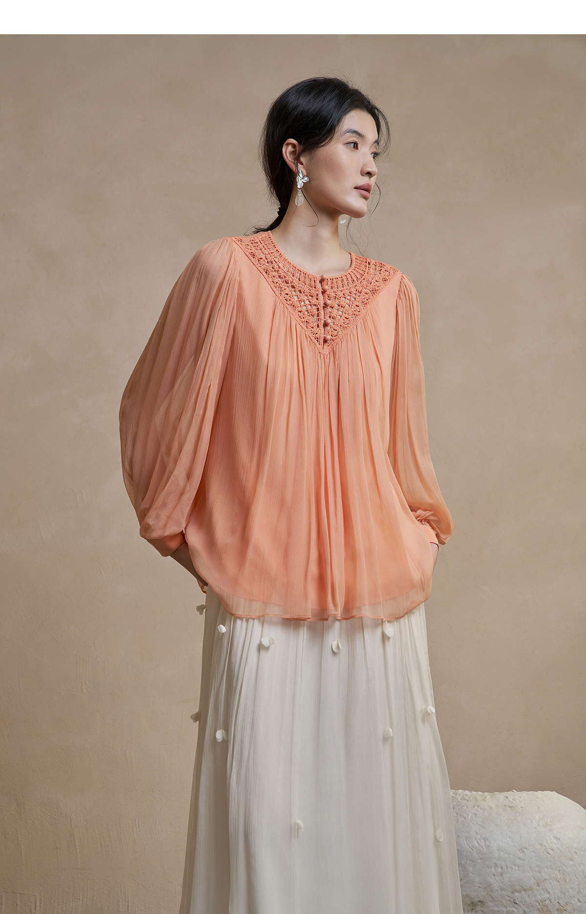 【林栖设计小店】手工钩花|桑蚕丝镂空肌理轻盈透气2026春新款多色真丝衫1961127