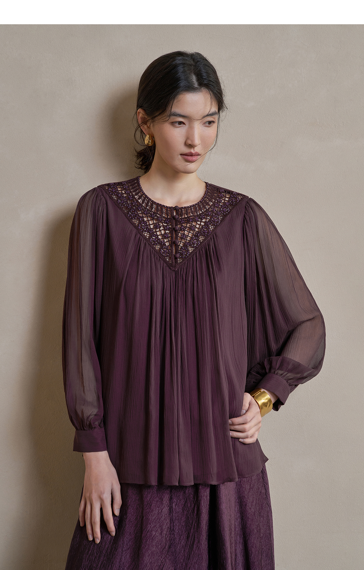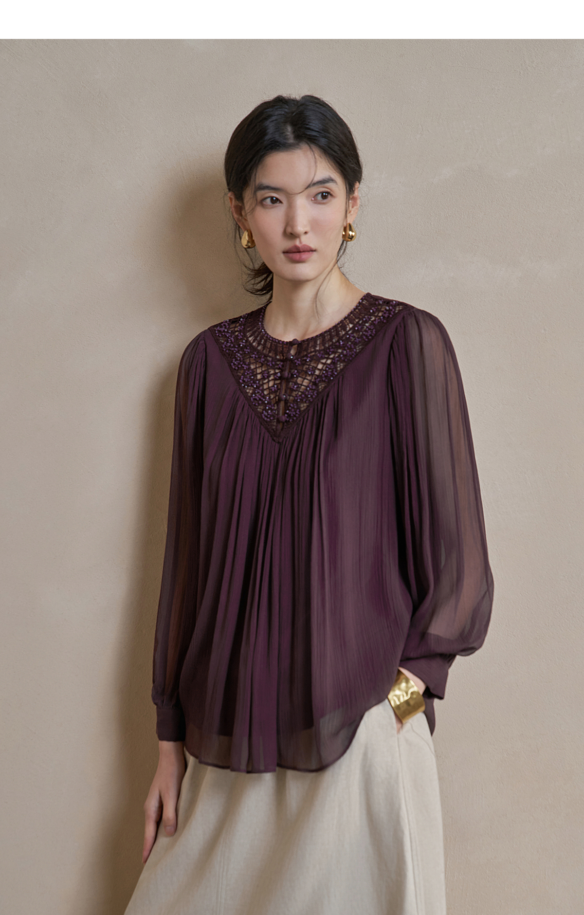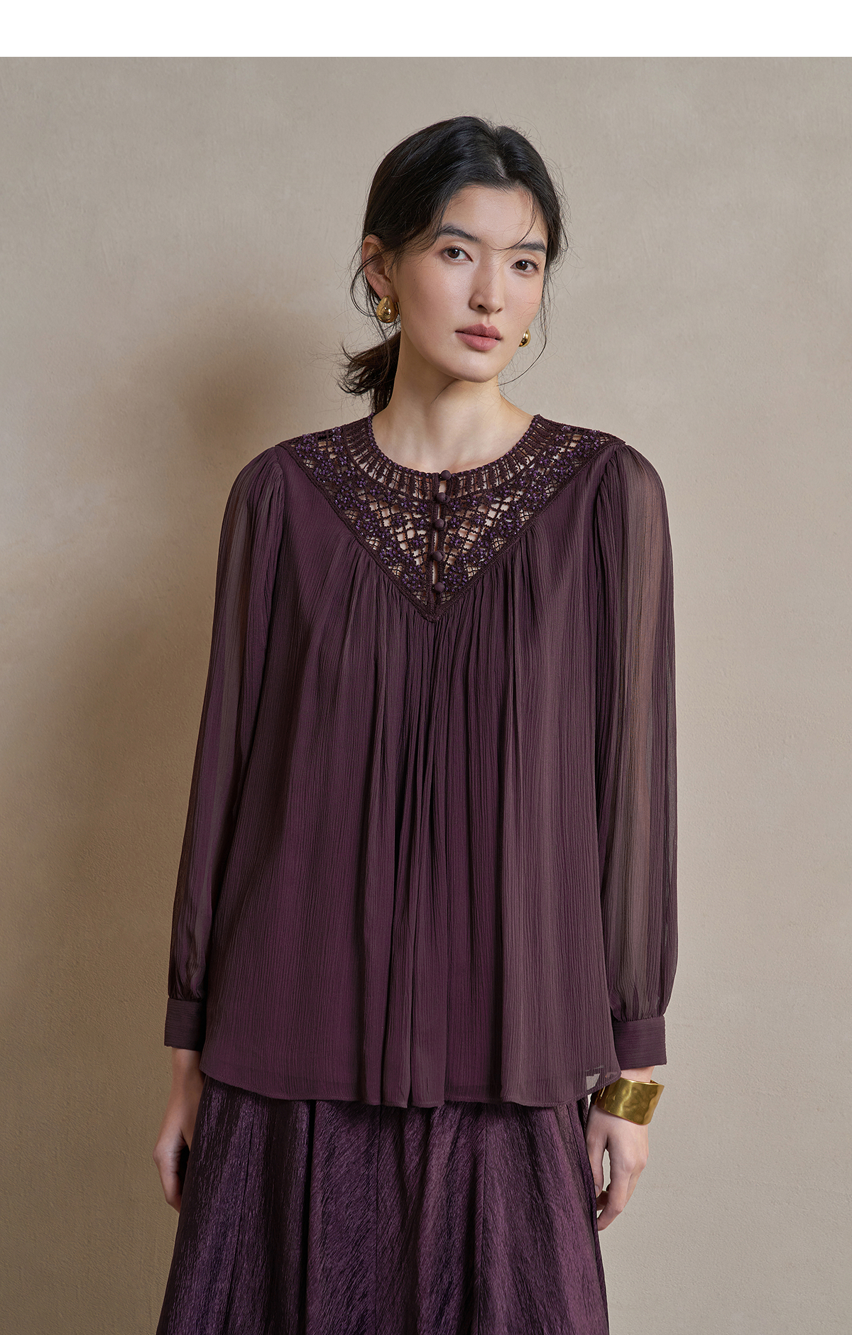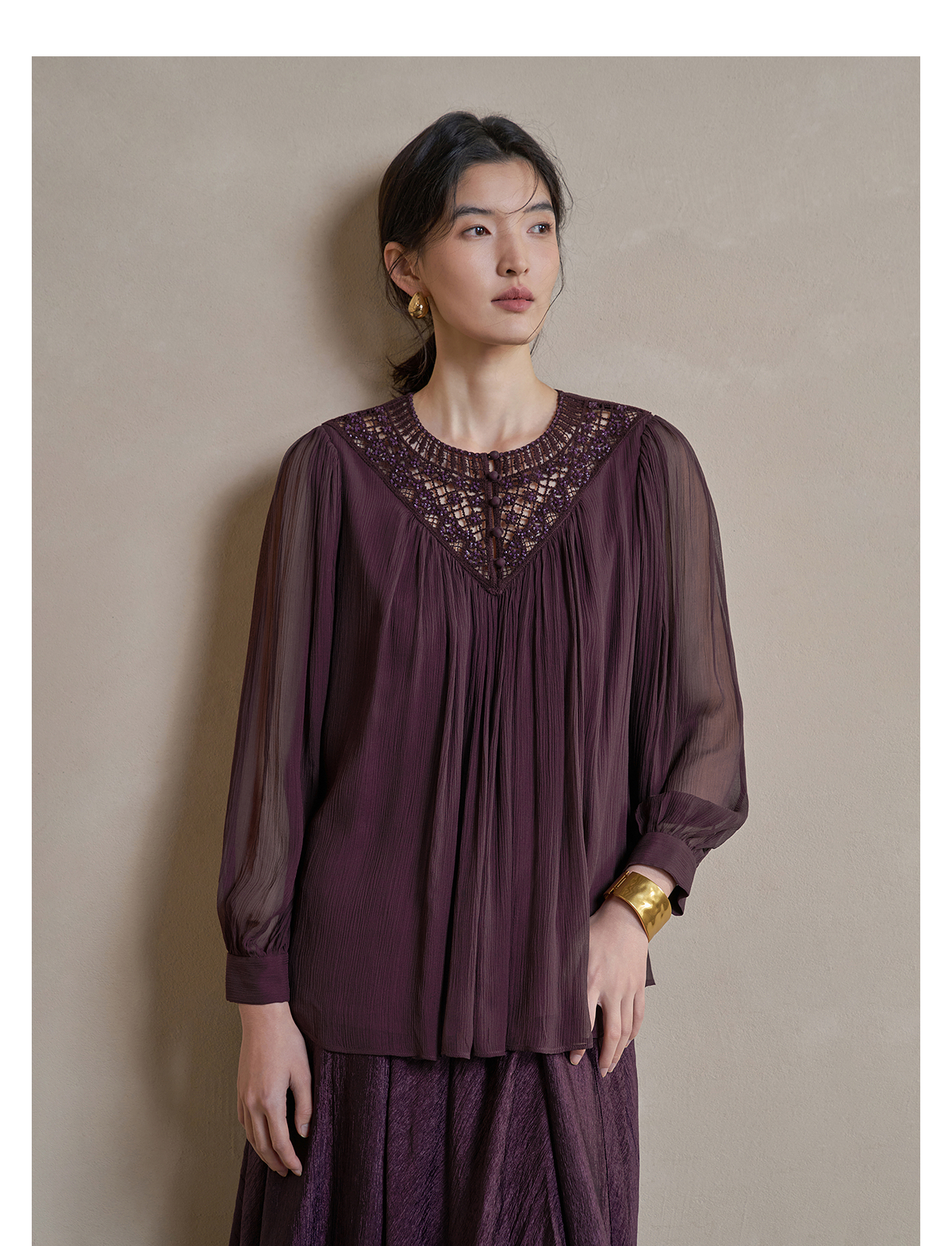 【林栖设计小店】手工钩花|桑蚕丝镂空肌理轻盈透气2026春新款多色真丝衫1961127