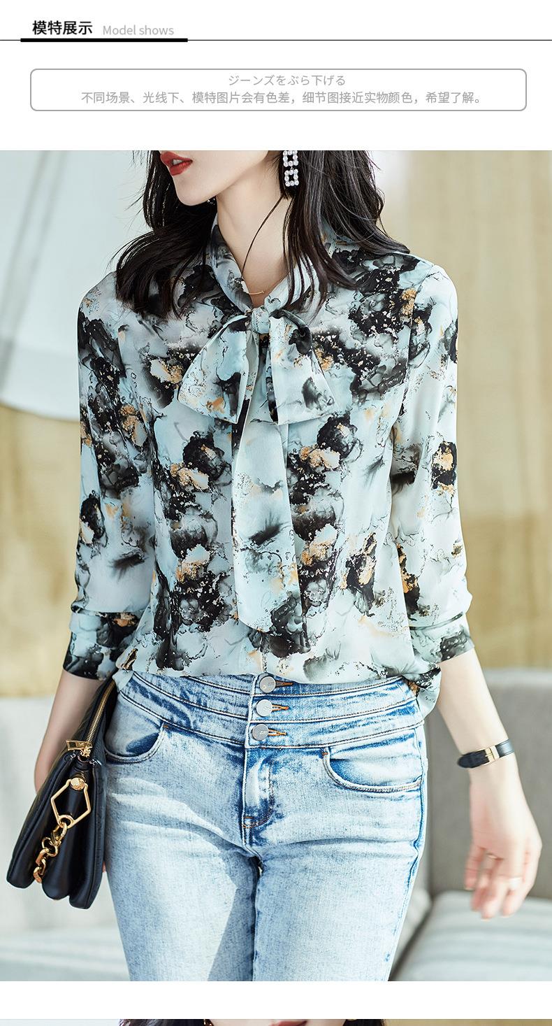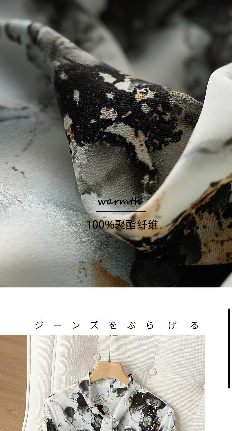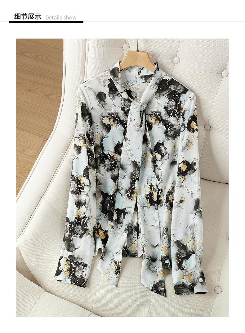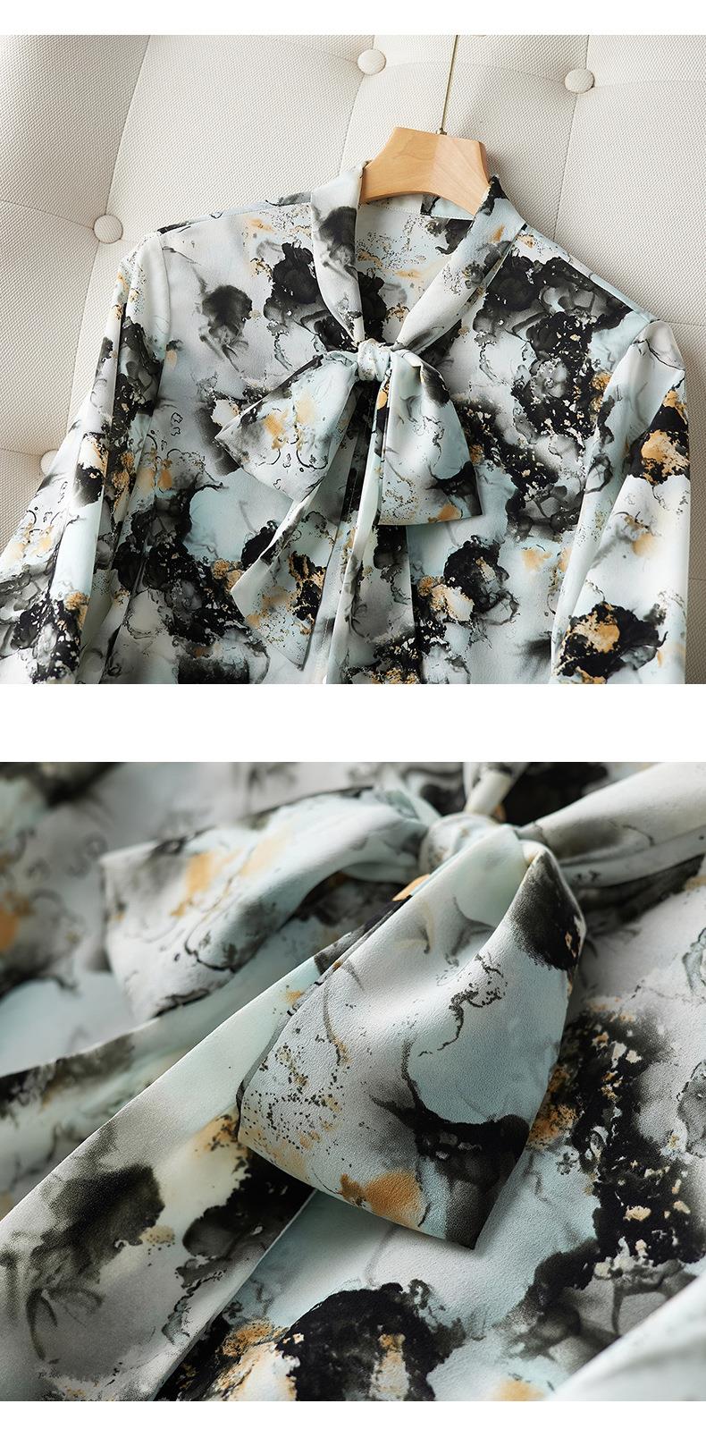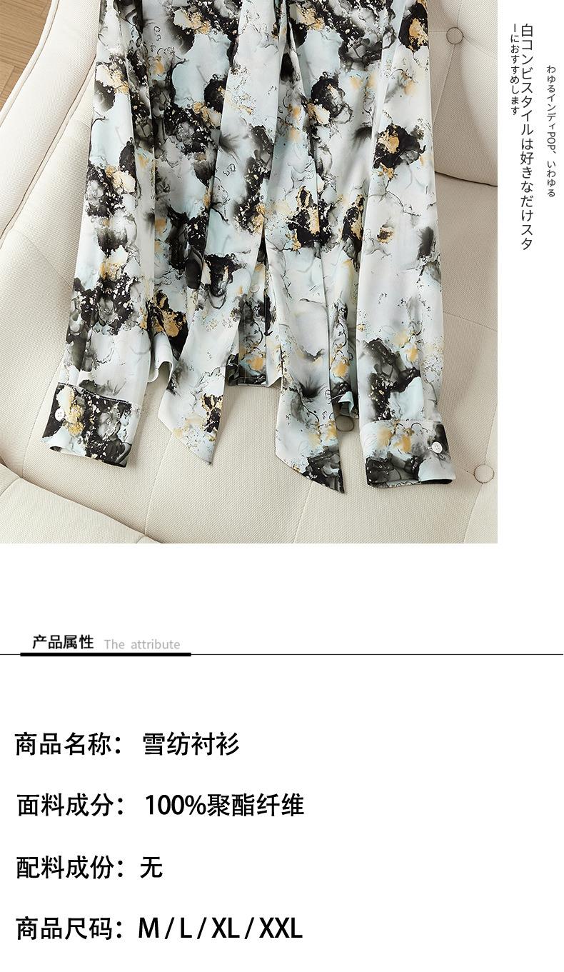 2023秋装新款衬衫女长袖雪纺衫水墨印花女士衬衣A2719