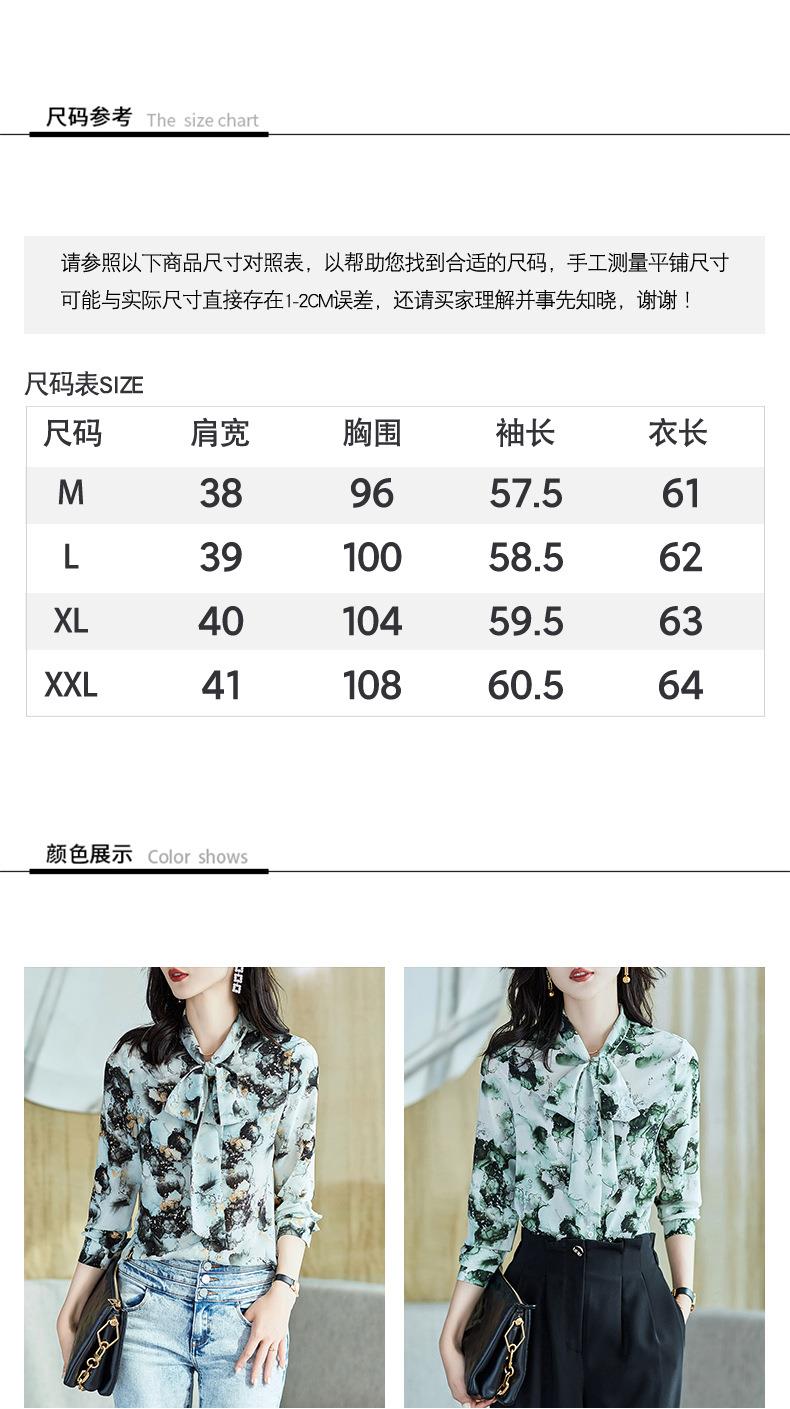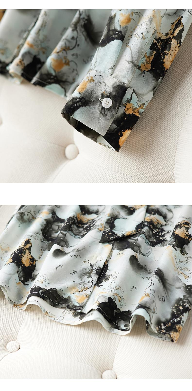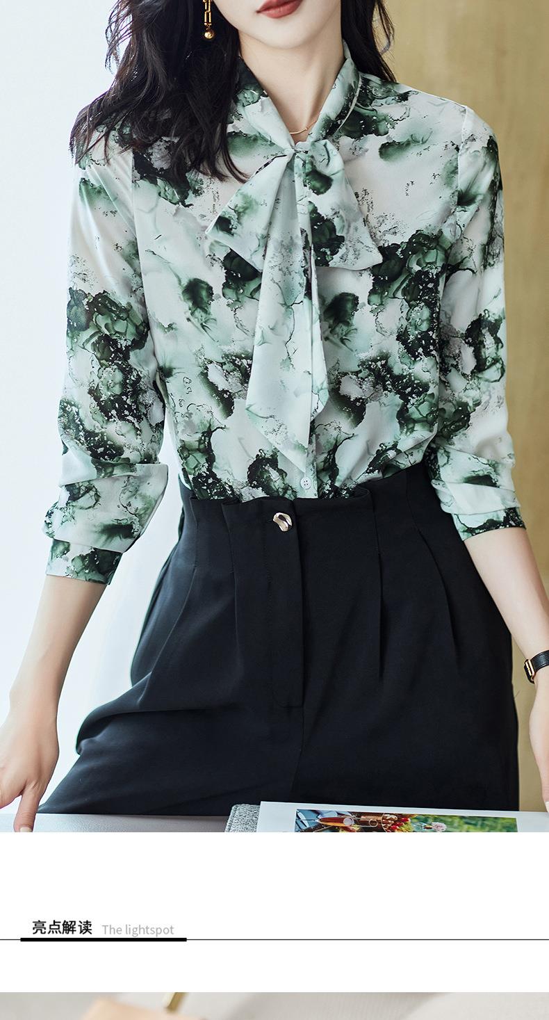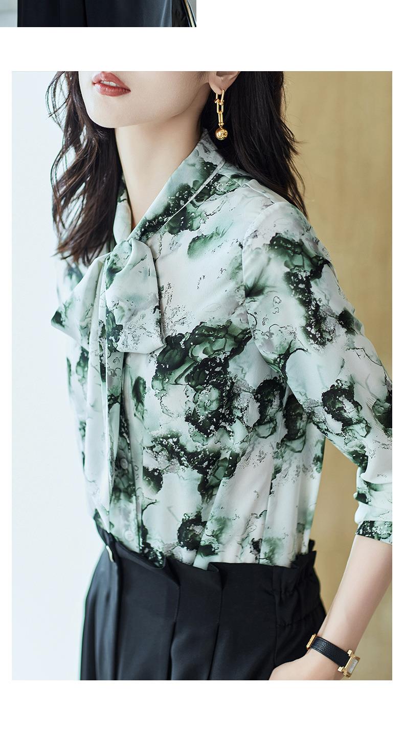2023秋装新款衬衫女长袖雪纺衫水墨印花女士衬衣A2719