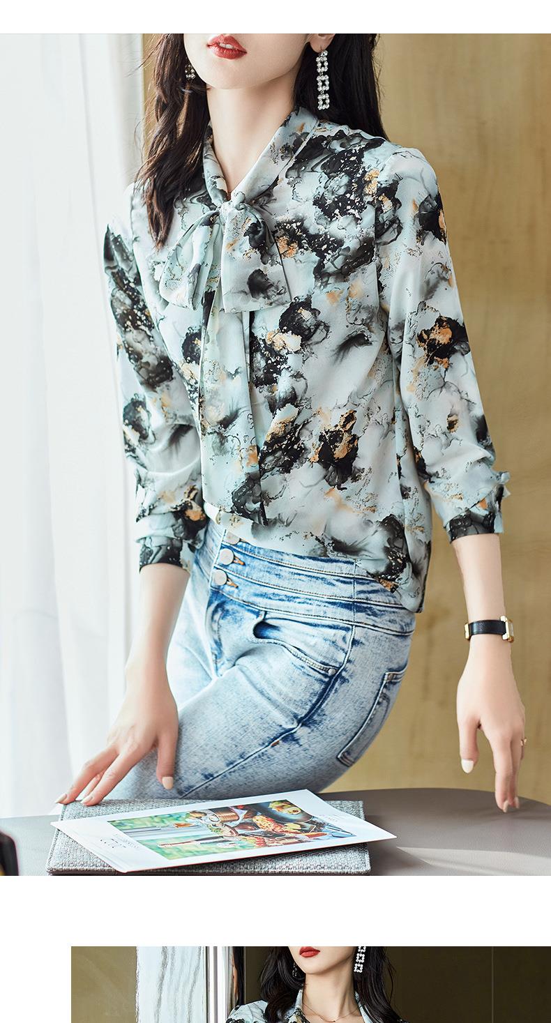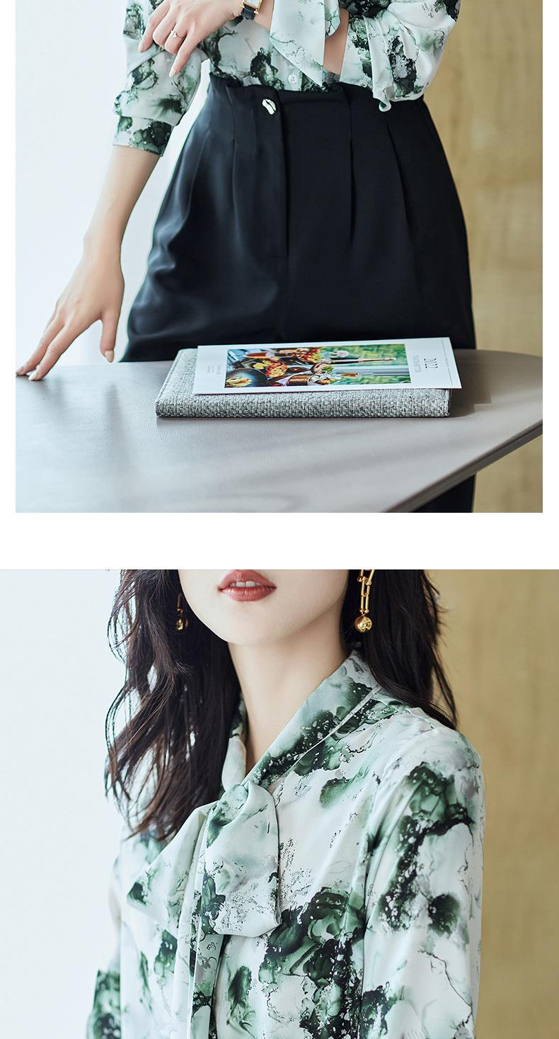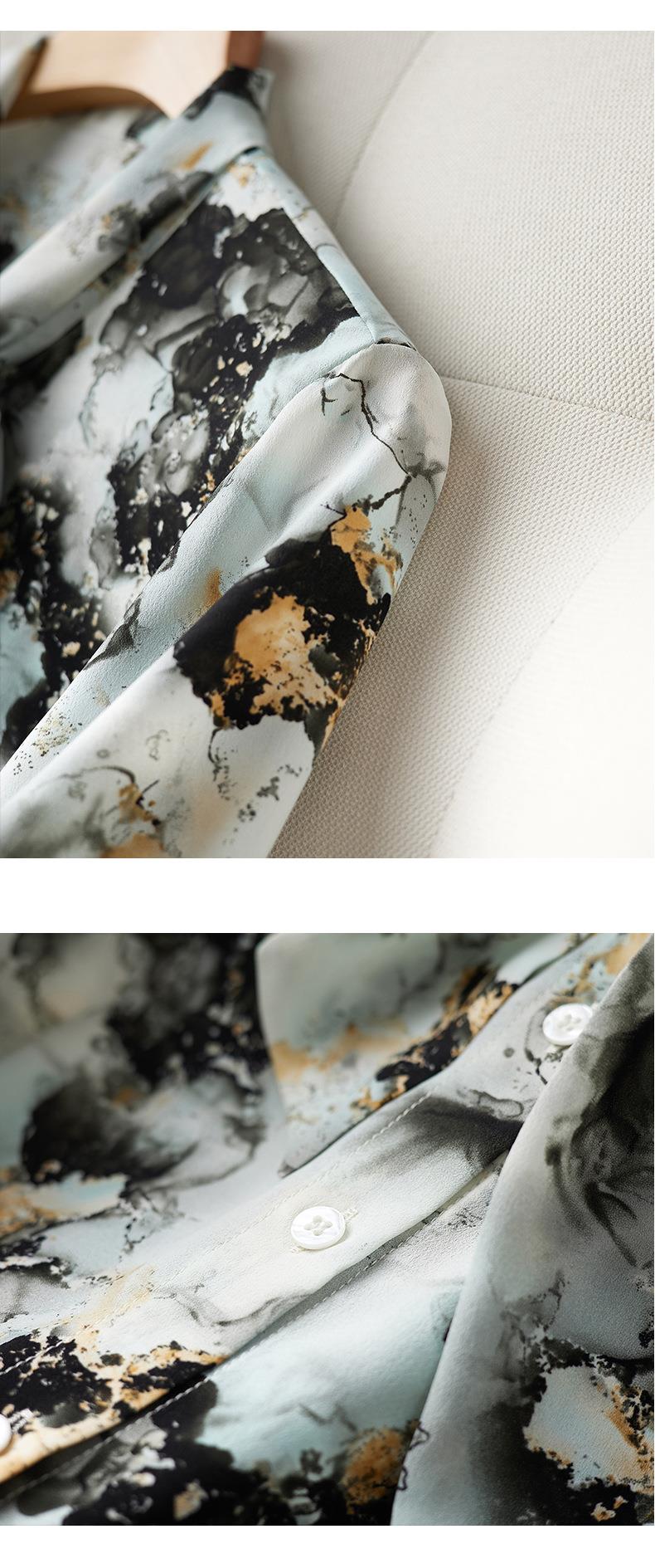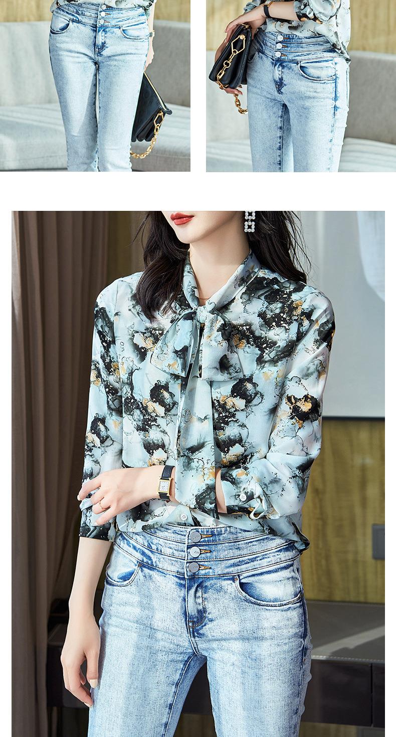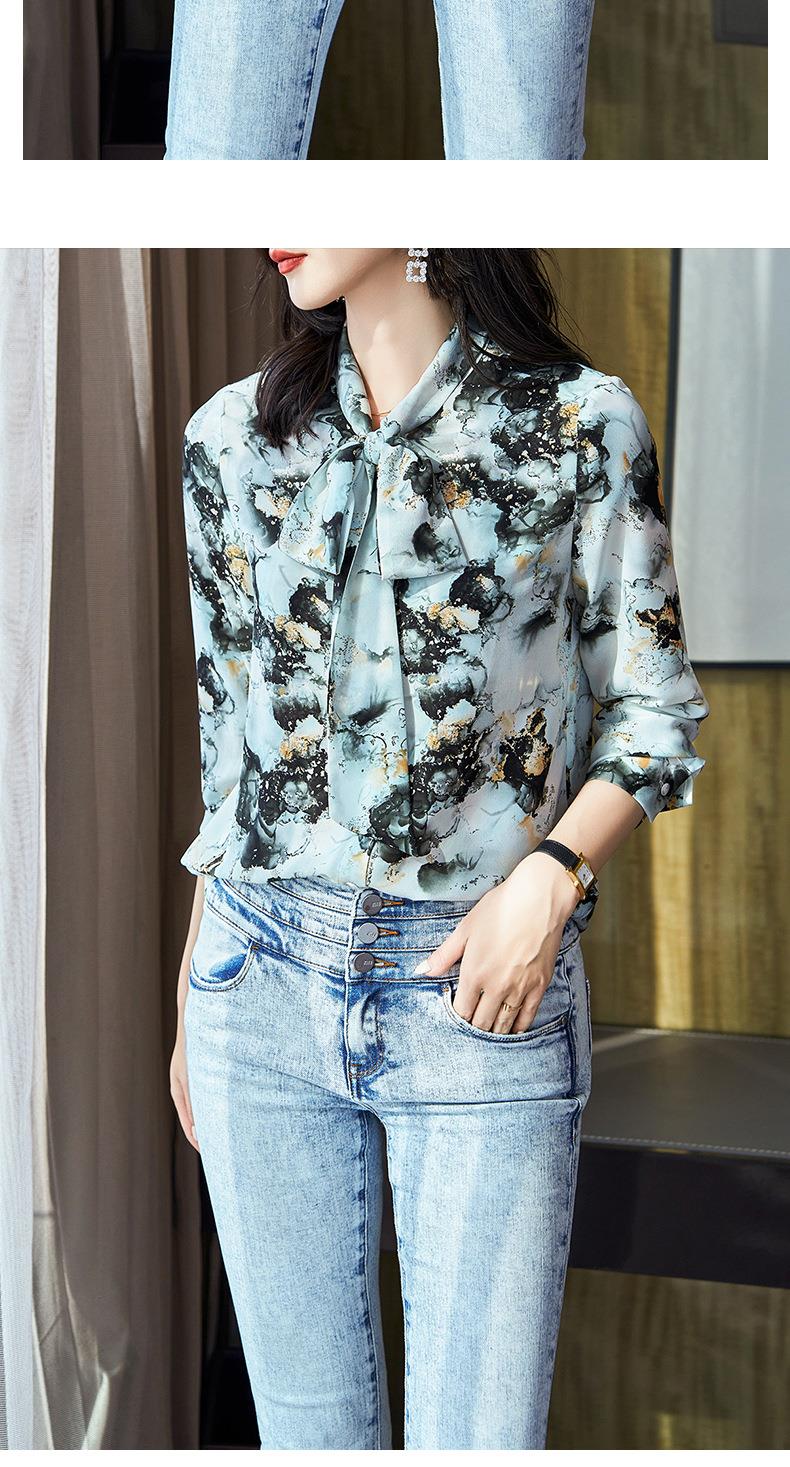 2023秋装新款衬衫女长袖雪纺衫水墨印花女士衬衣A2719