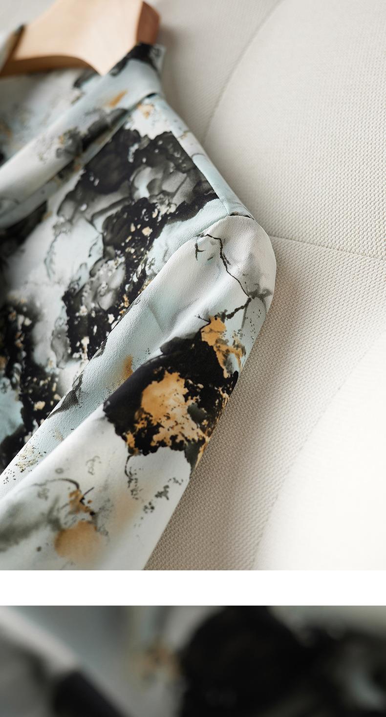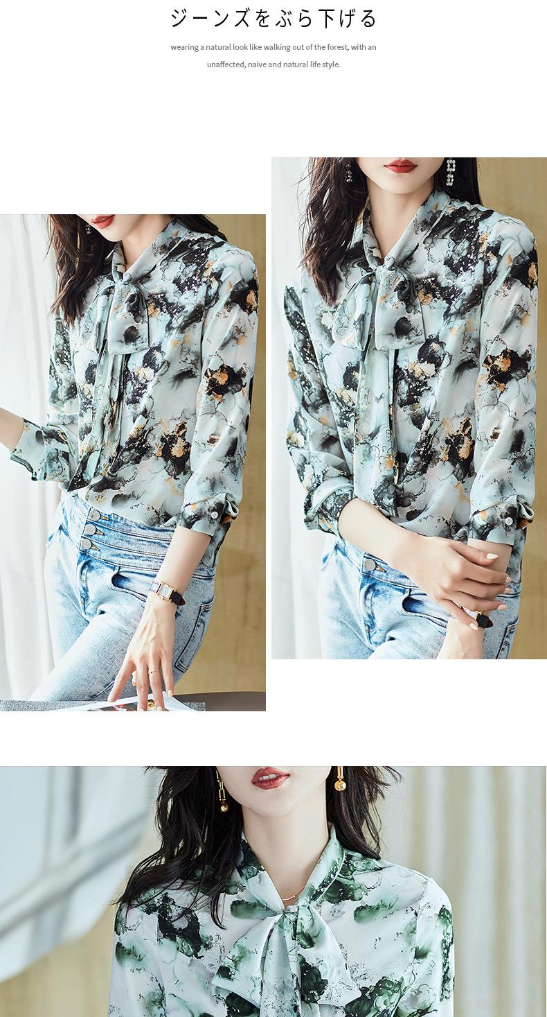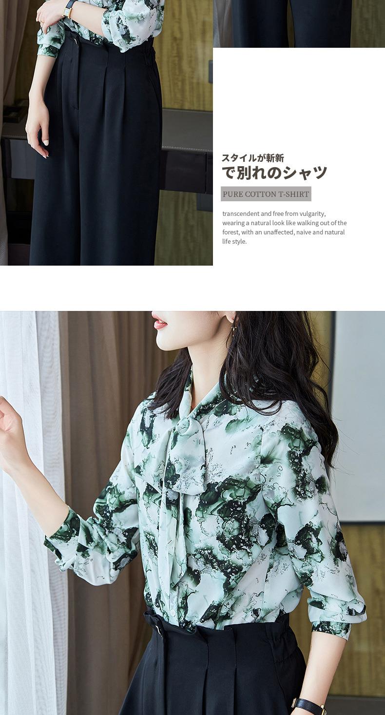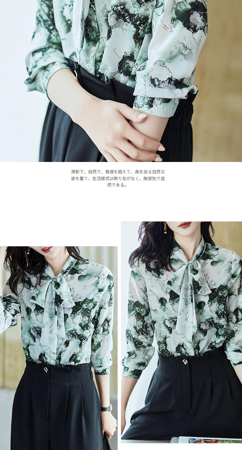 2023秋装新款衬衫女长袖雪纺衫水墨印花女士衬衣A2719