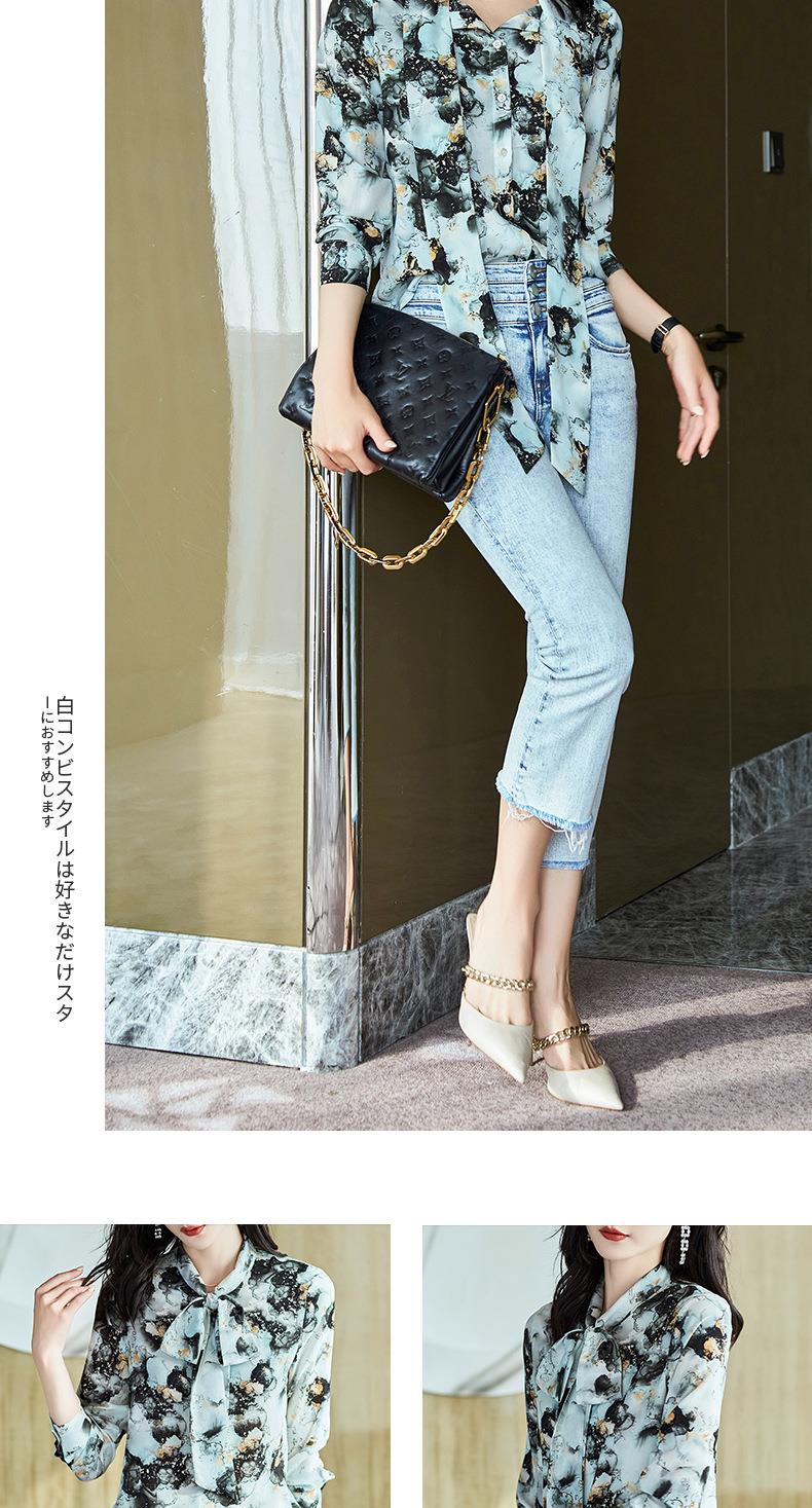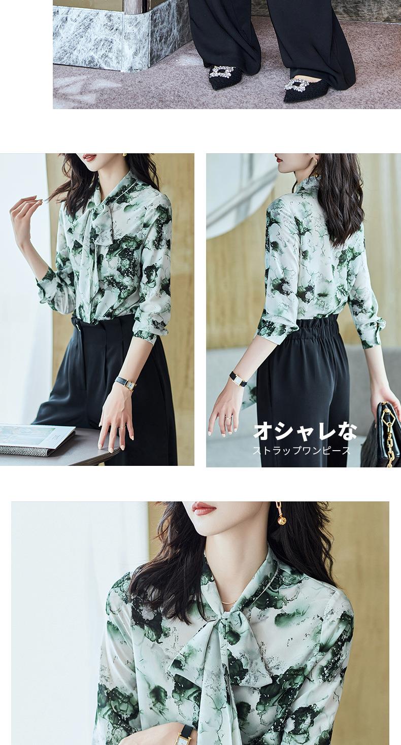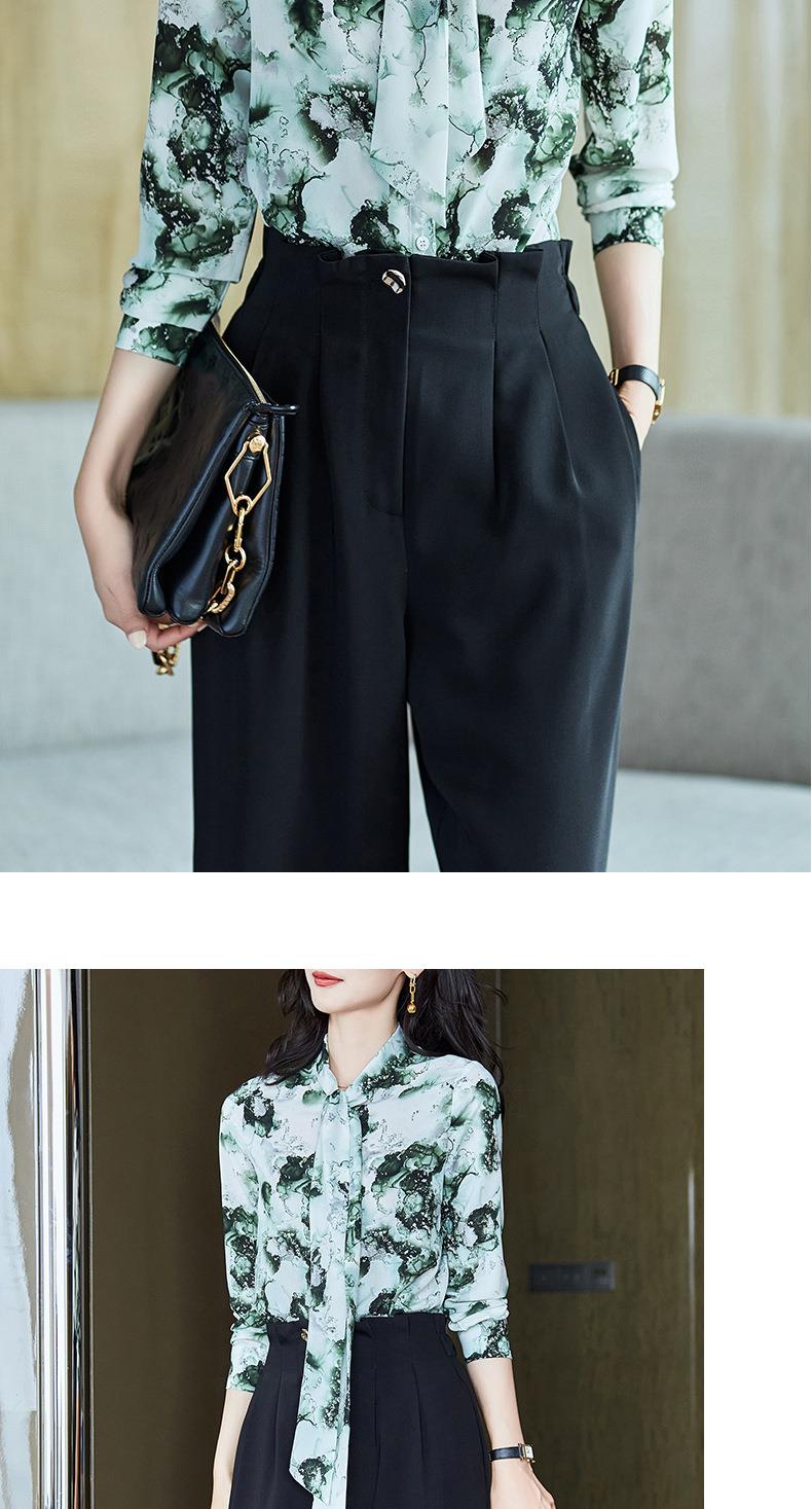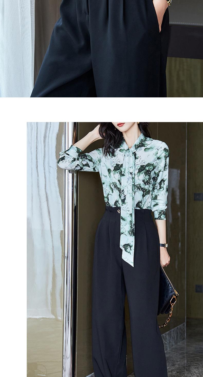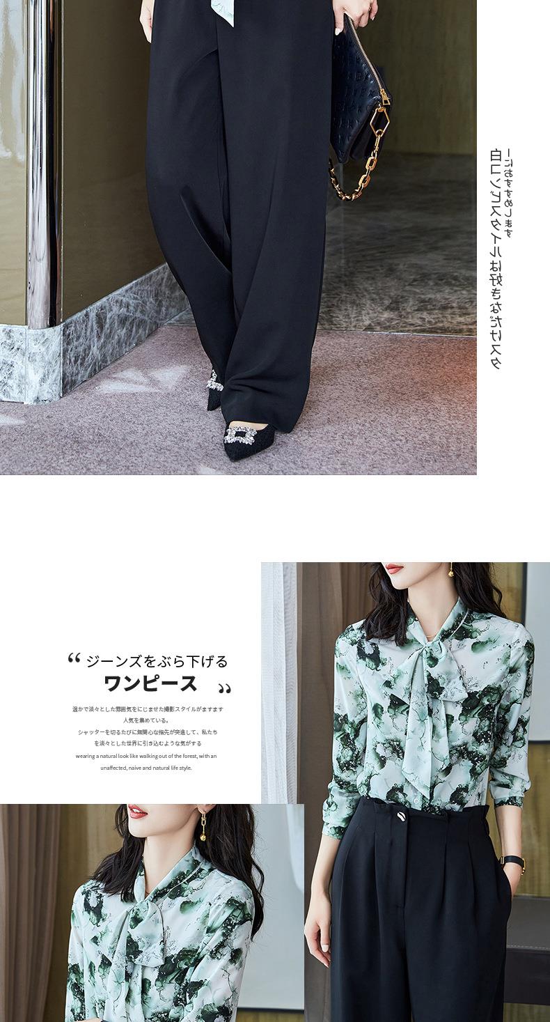 2023秋装新款衬衫女长袖雪纺衫水墨印花女士衬衣A2719