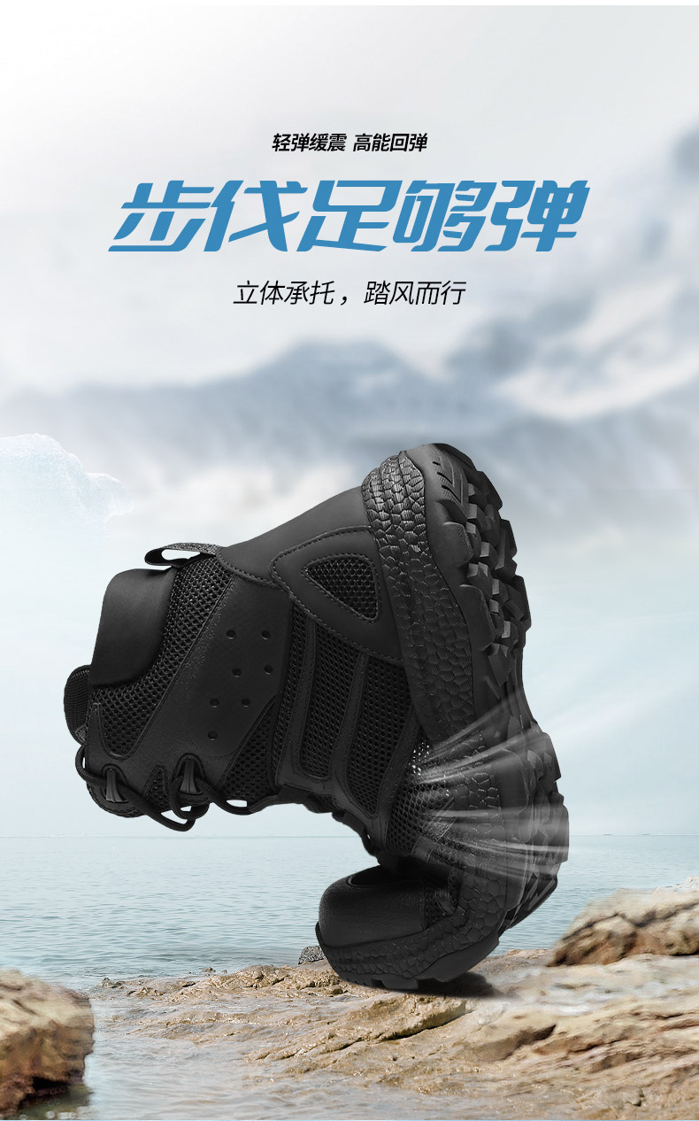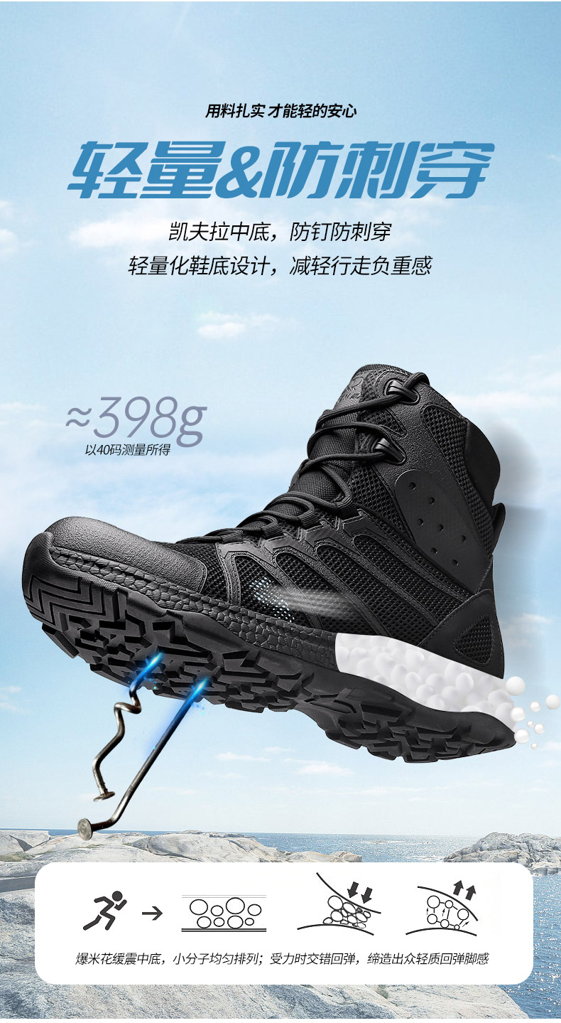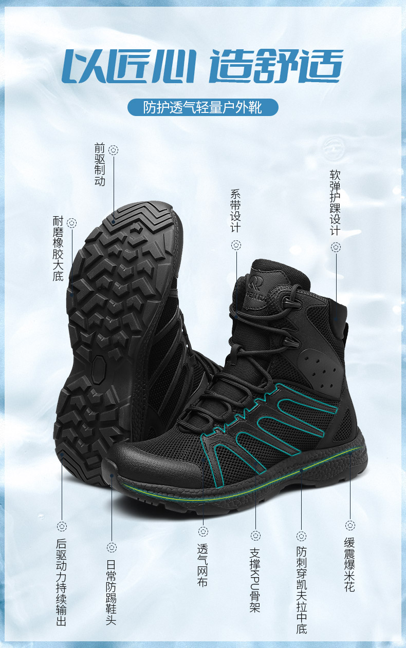 强人3515户外训练靴子男防水防刺穿轻便高帮靴男款防滑徒步登山靴