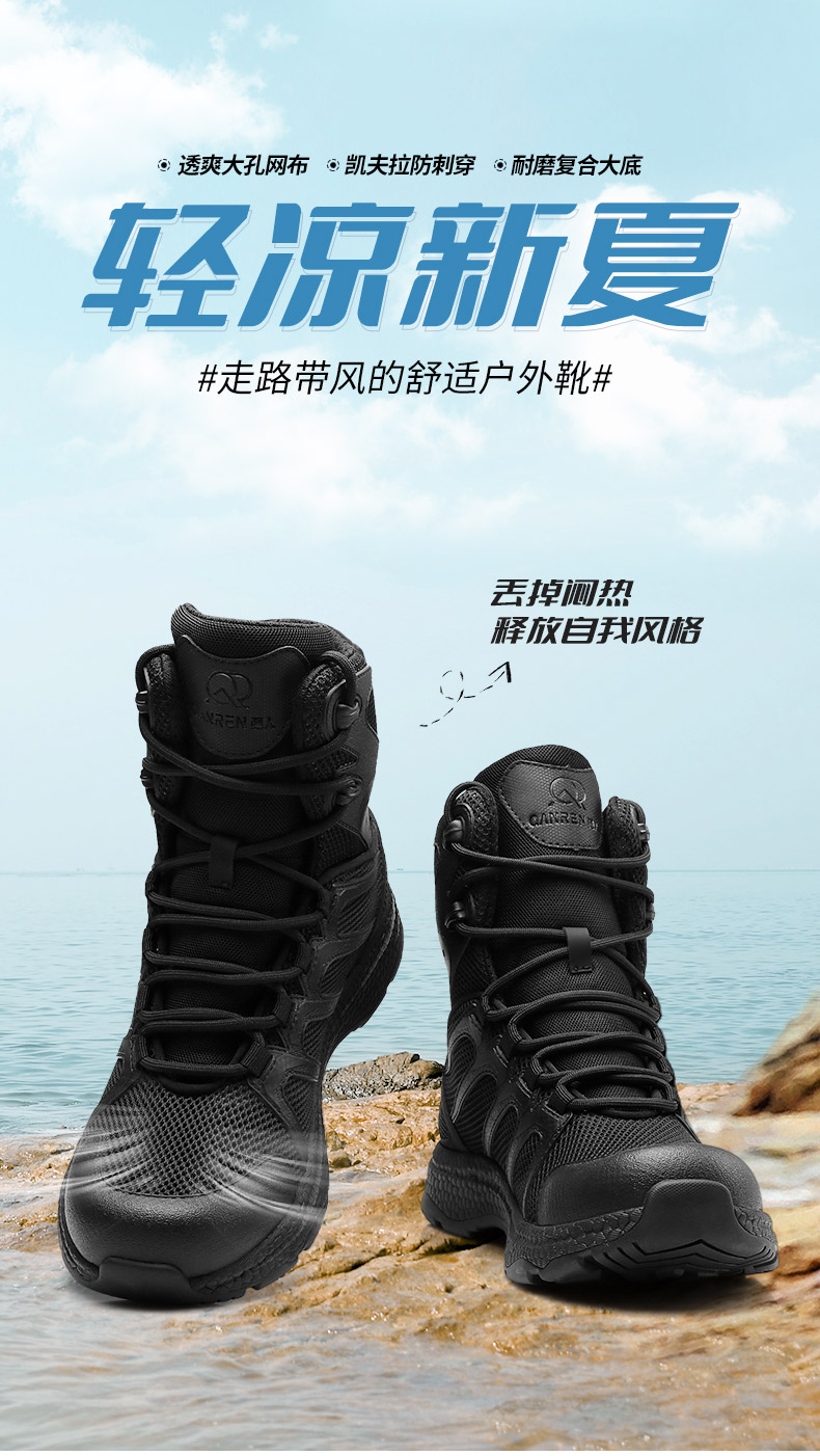 强人3515户外训练鞋男夏季薄款透气网面鞋徒步登山鞋战术鞋自动扣