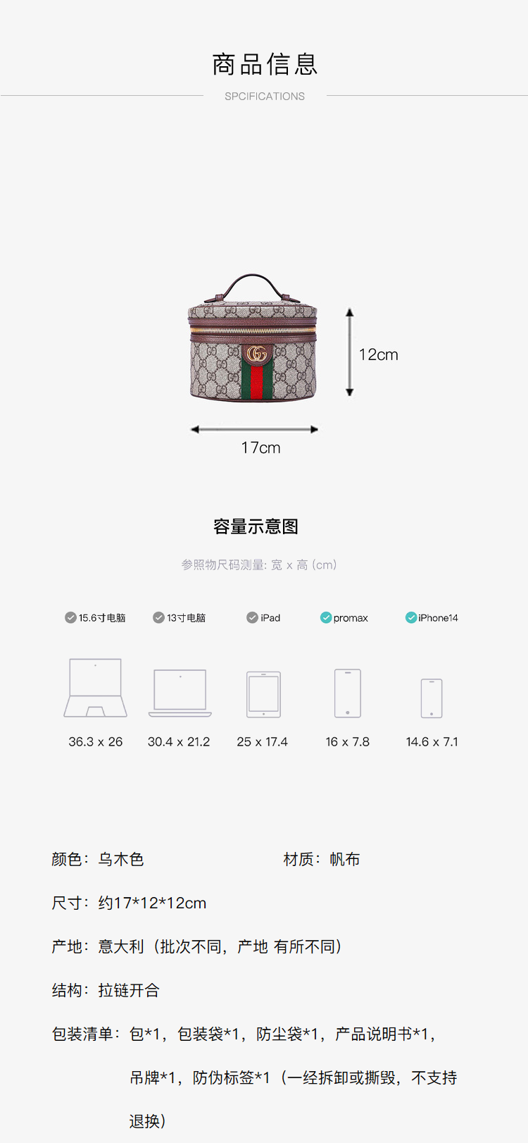 GUCCI 古驰 女包Ophidia系列乌木色大号化妆包 62746396IWG