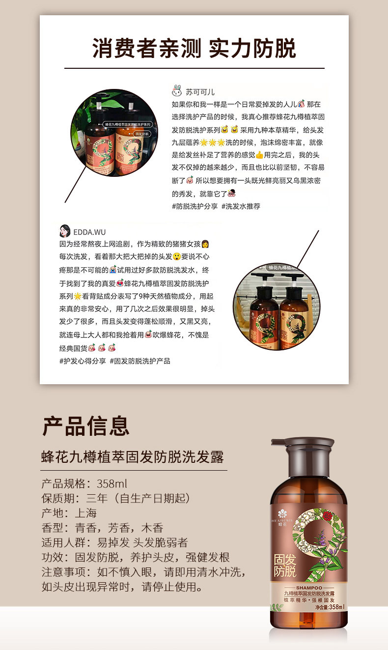 【品名】:蜂花防脱洗发水九樽固发丰盈蓬松强韧防断发舒缓精华素洗发露