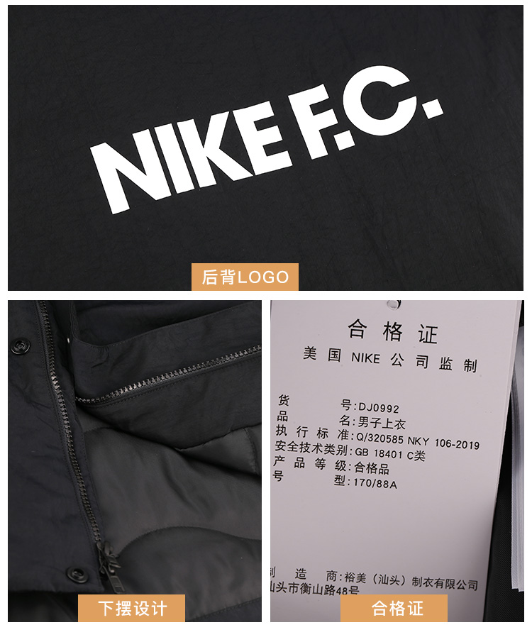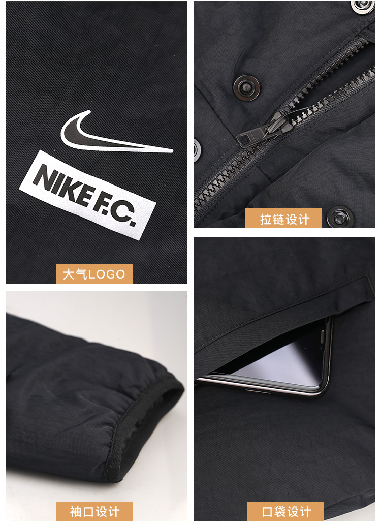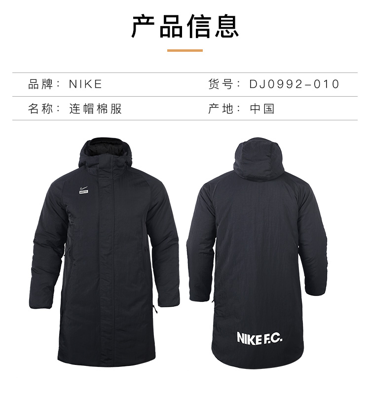 NIKE/耐克FC足球运动休闲保暖连帽成人中长棉服男DJ0992010