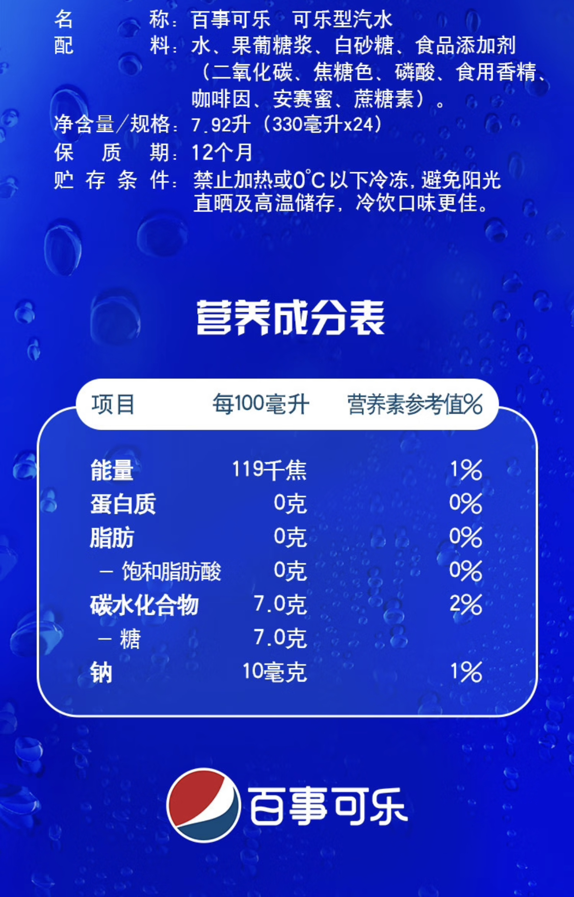 百事可乐 Pepsi 百事可乐汽水 碳酸饮料 330ml*24听 百事出品