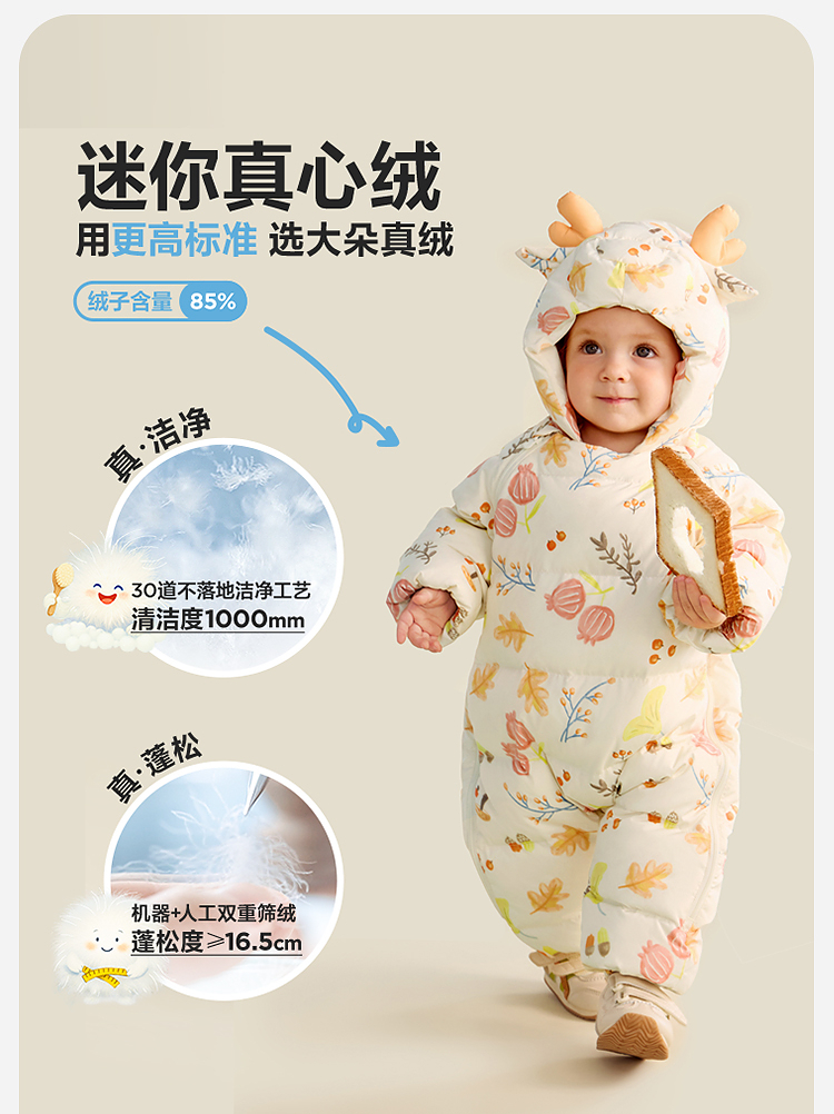 【三防】迷你巴拉羽绒连体衣婴儿衣服宝宝萌趣爬服加厚新款