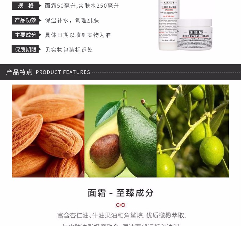 KIEHL'S/科颜氏 高保湿面霜 50ML + 高保湿精华爽肤水 250ML 组合装