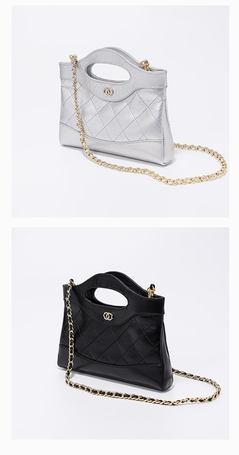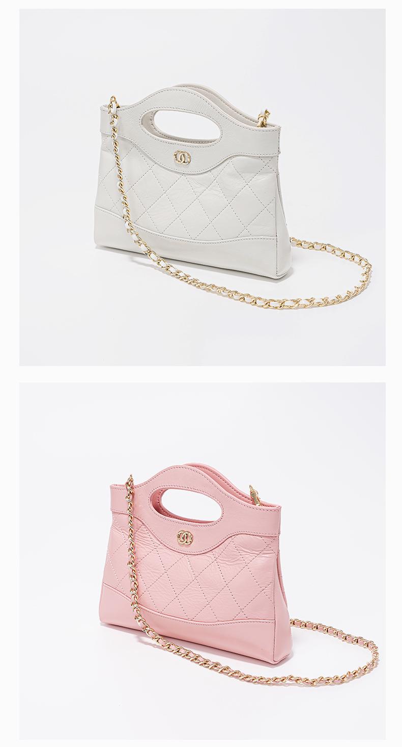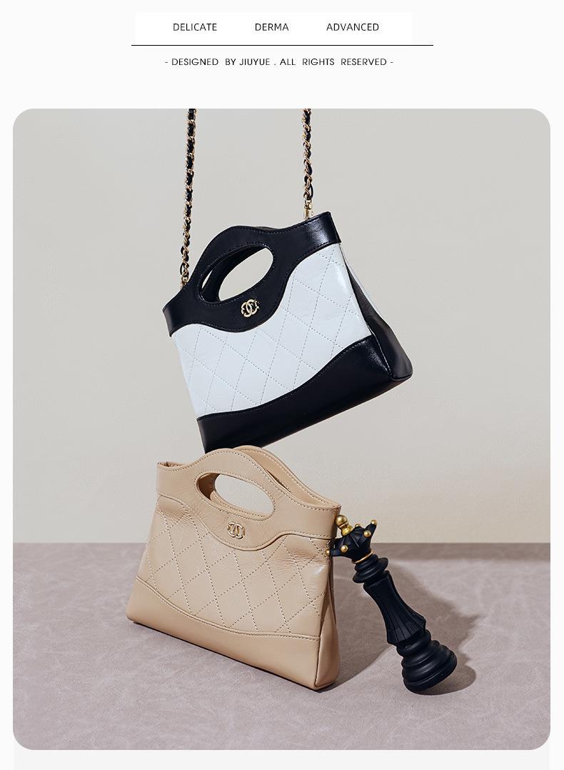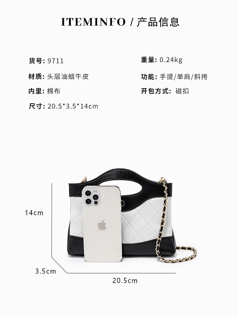 头层油蜡皮手提包2024新款化妆包轻奢感时尚百搭小香风菱格单肩包