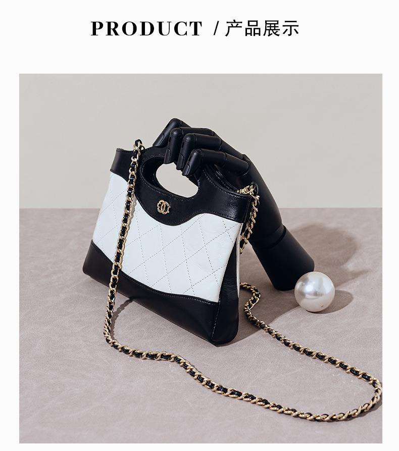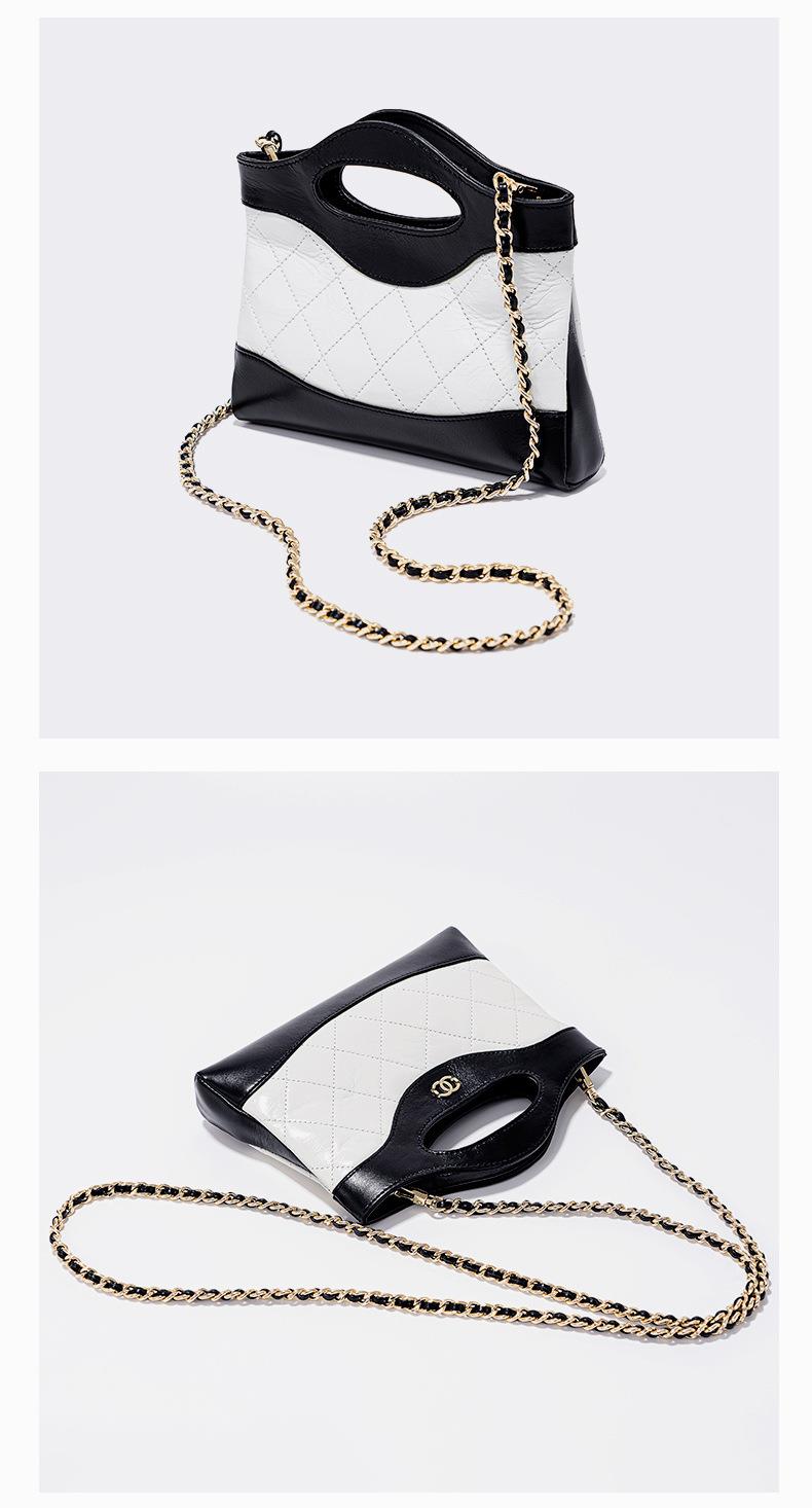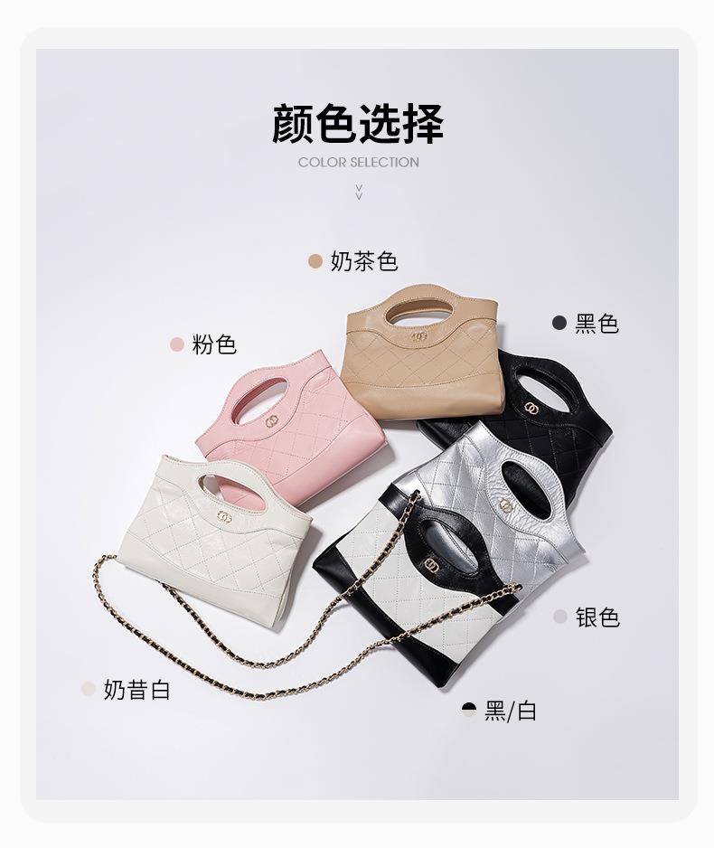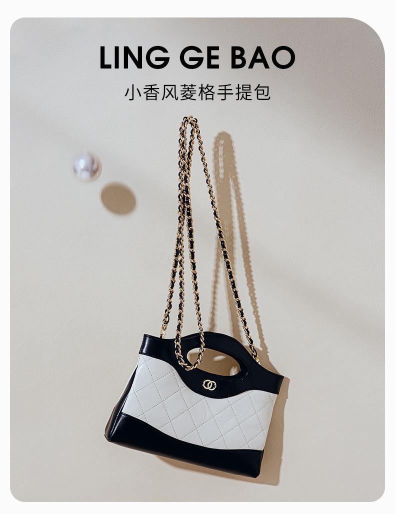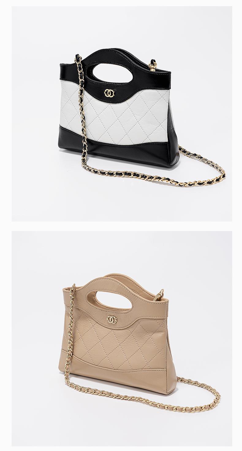 头层油蜡皮手提包2024新款化妆包轻奢感时尚百搭小香风菱格单肩包