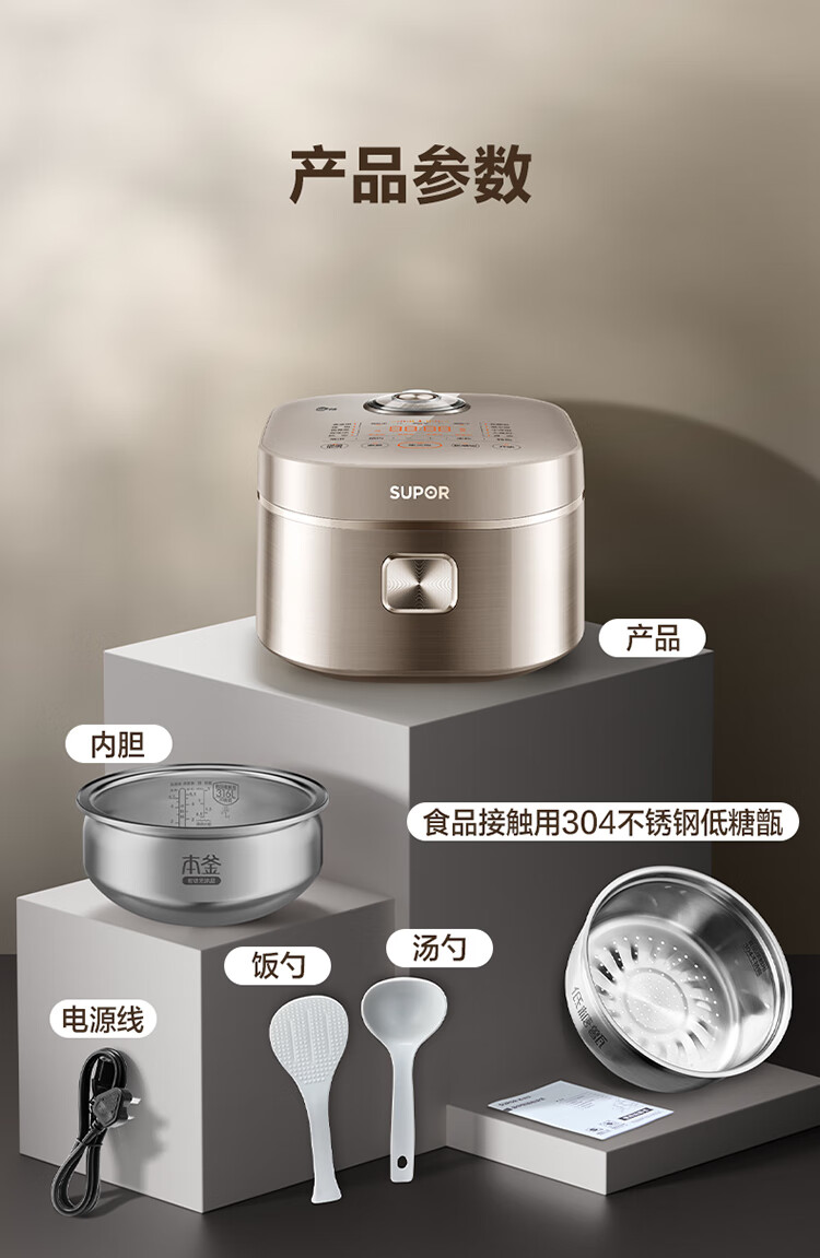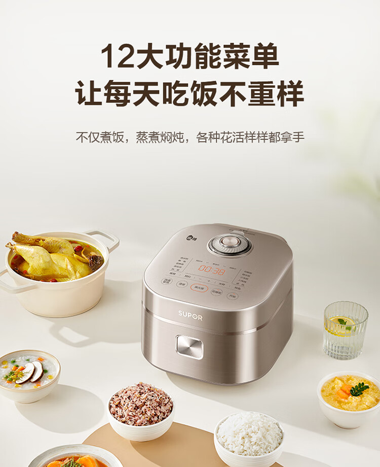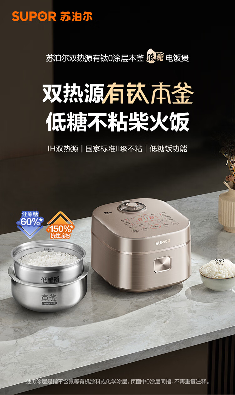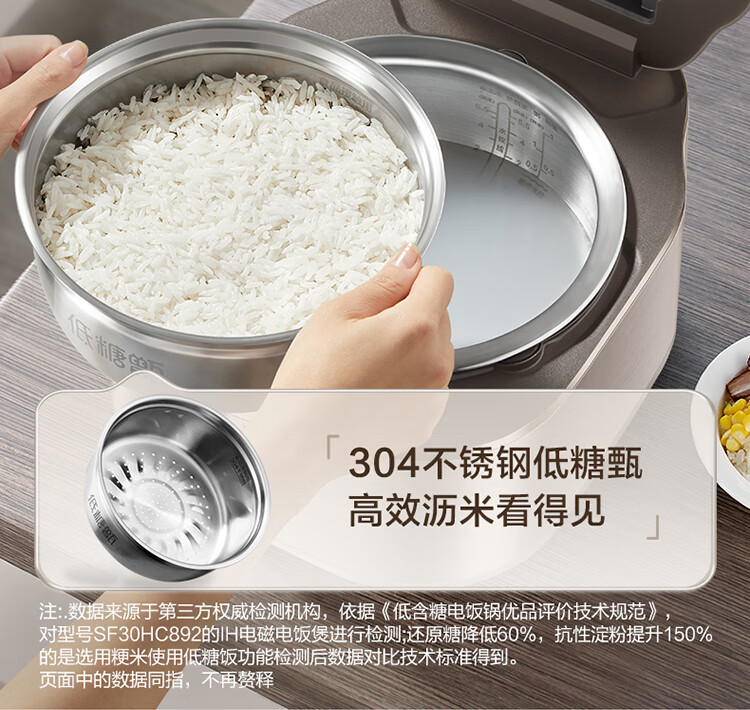 苏泊尔(SUPOR)低糖电饭煲3L家用IH电磁加热柴火饭本釜内胆电饭锅智能预约沥米饭米汤分离 SF30HC92